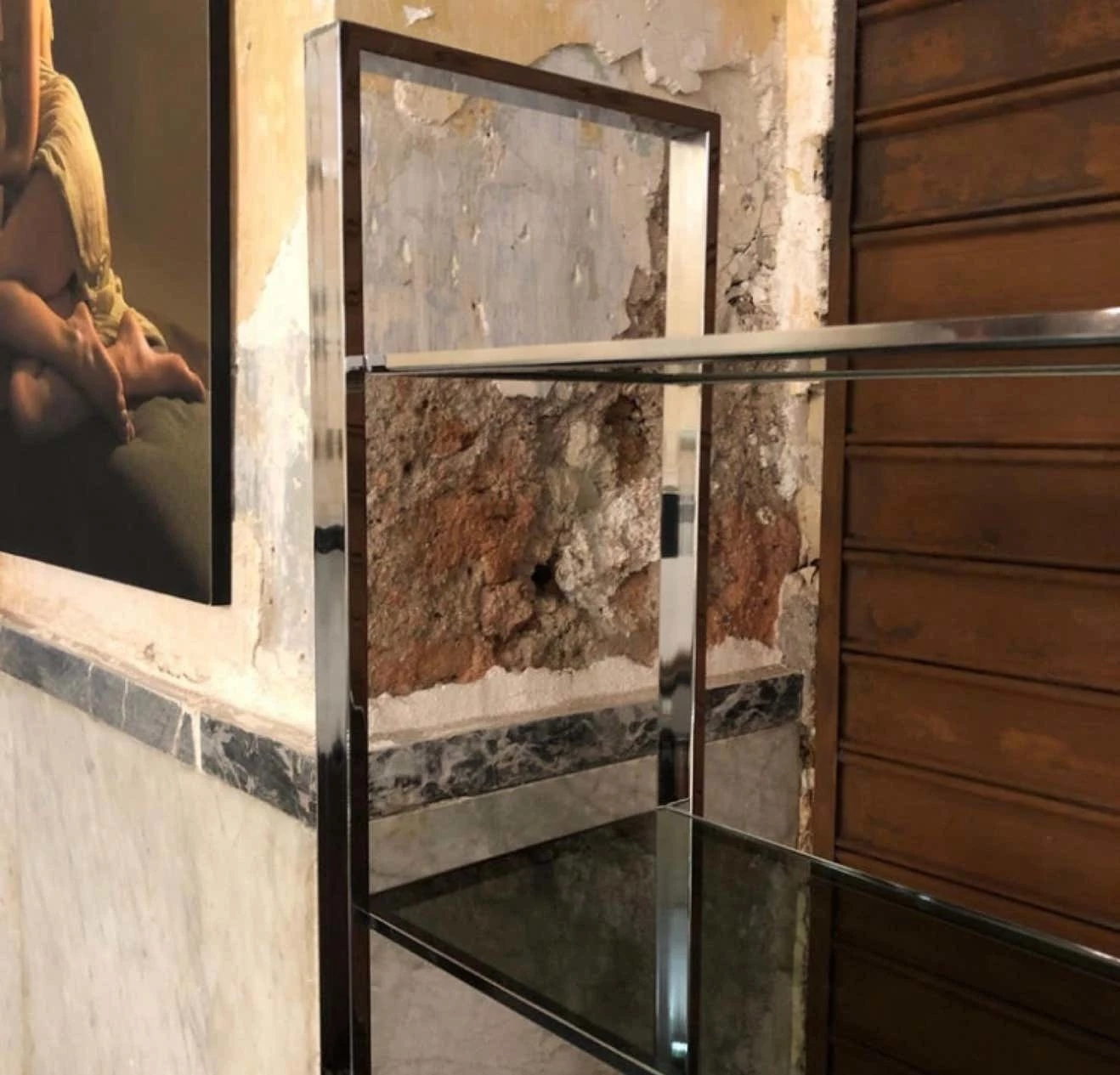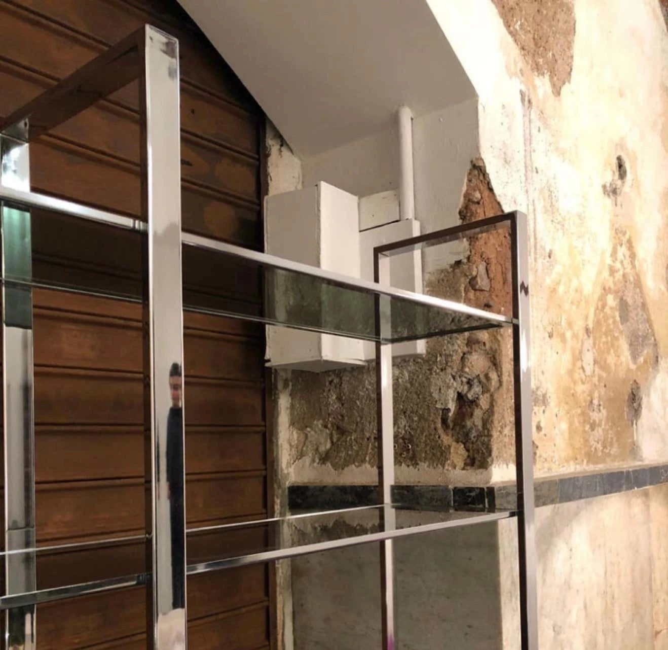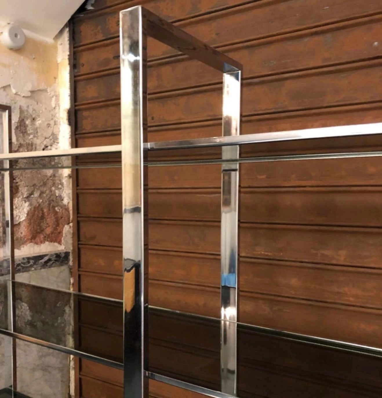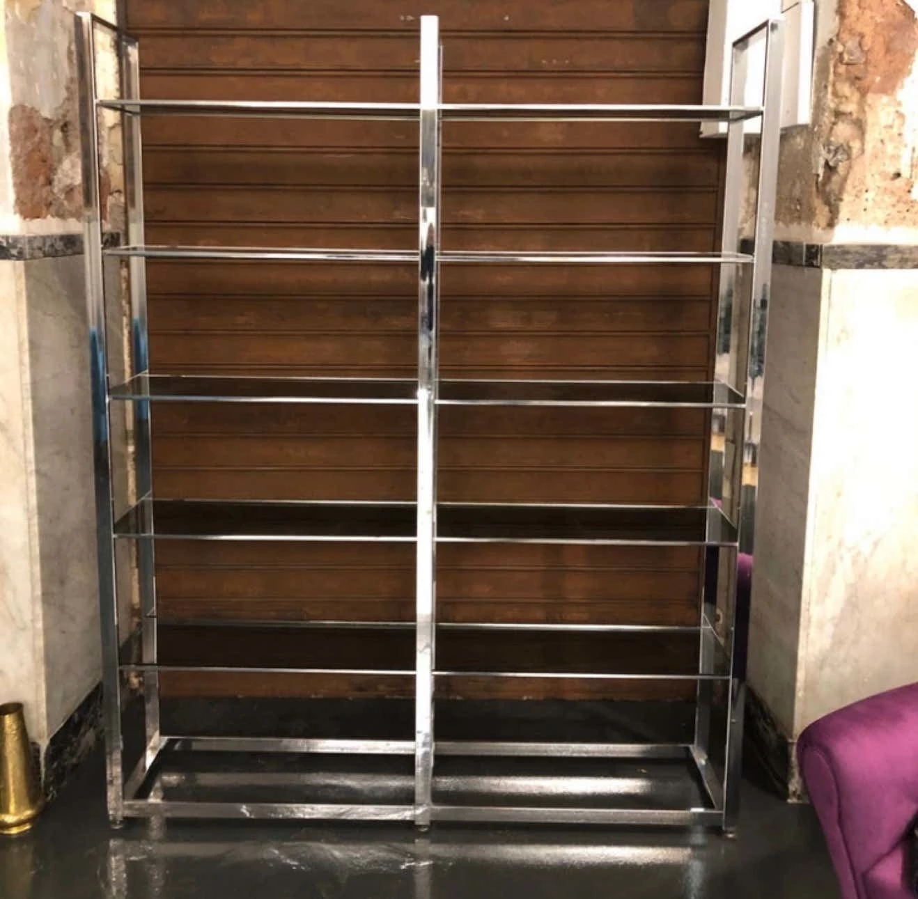 A five-shelf bookcase made in Italy in the 1970s, steel and smoked glass. The simplicity and essentiality of its line makes it very elegant.