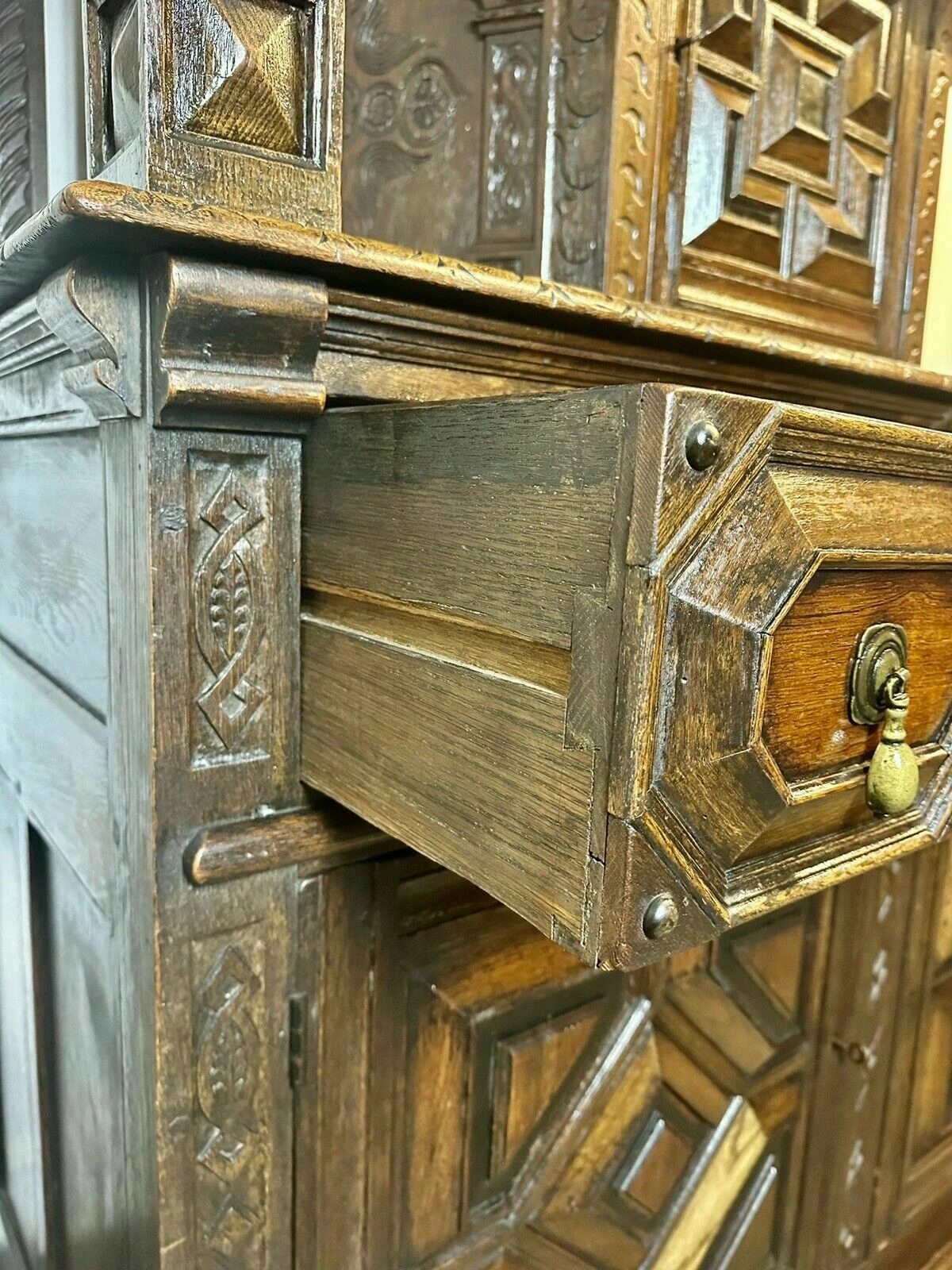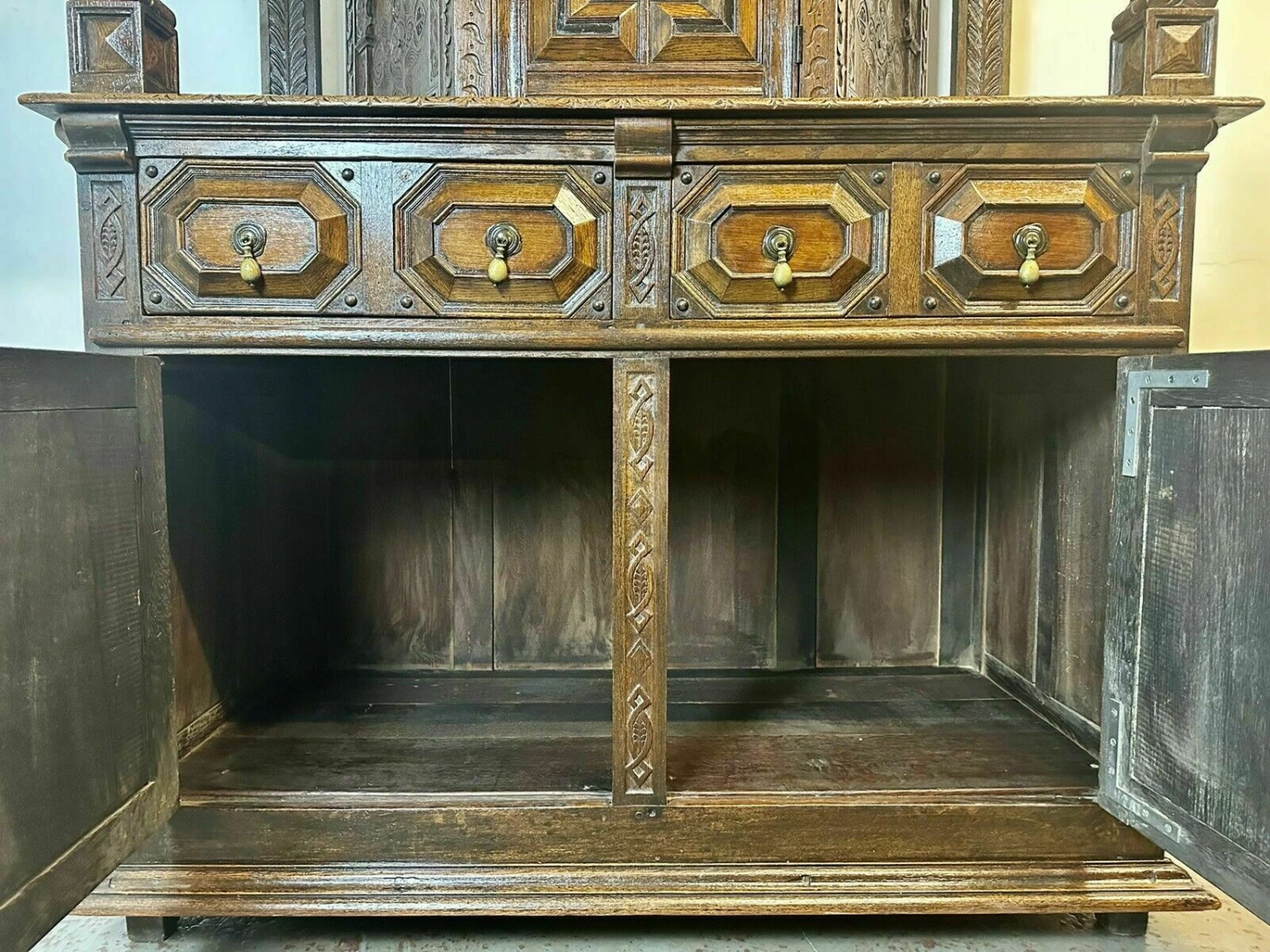 Worth buying even just as an investment or store of wealth. Although completed in the late 19th this piece incorporates older oak from the 17th and 18th. A wealthy owner likely employed the services of cabinet make during the Victorian period to create a more impressive piece of furniture from a more simplistic 17th century court cupboard.