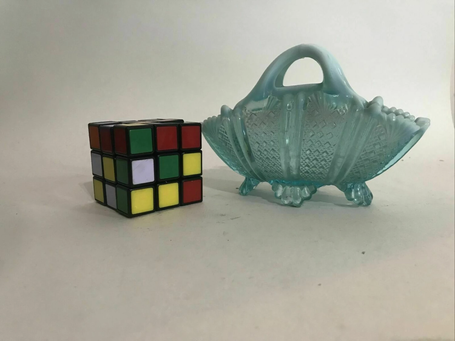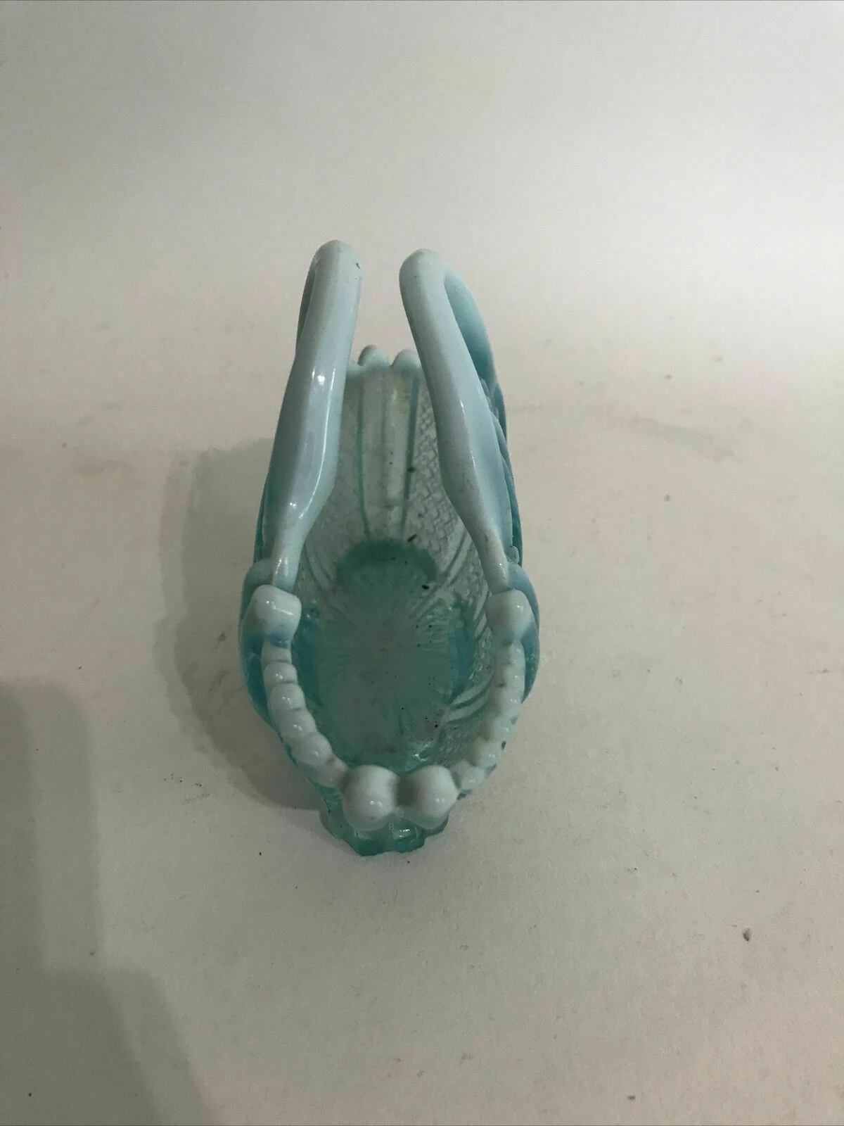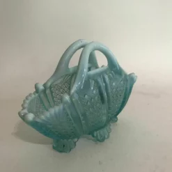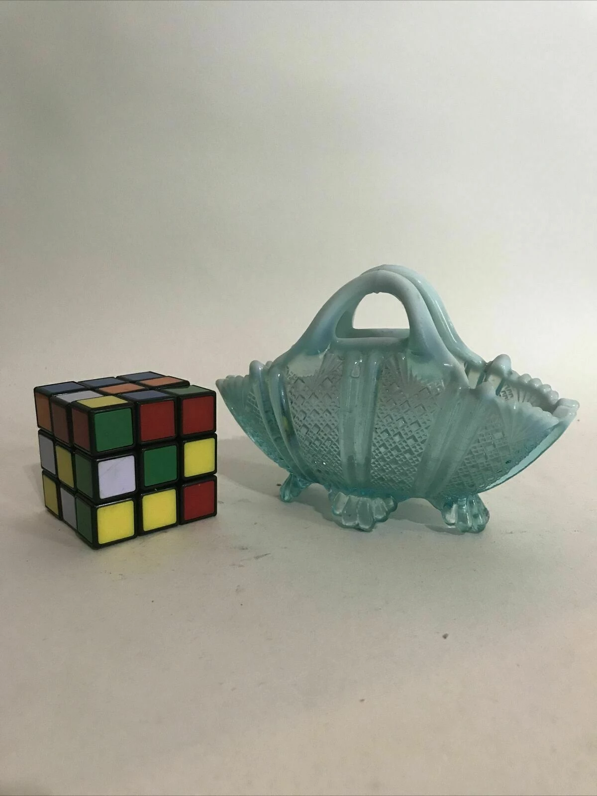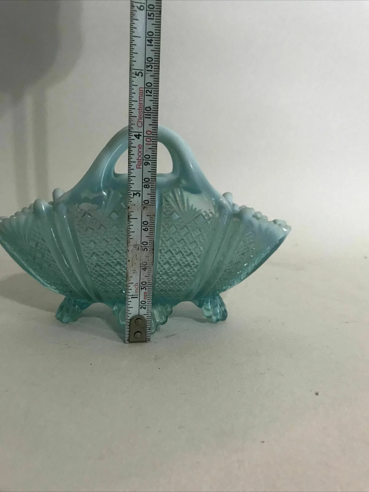 Antique Victorian Davidson Pressed Glass Blue Pearline Posy Basket.