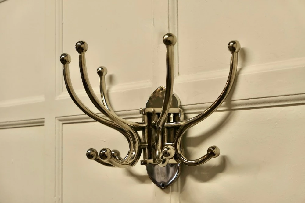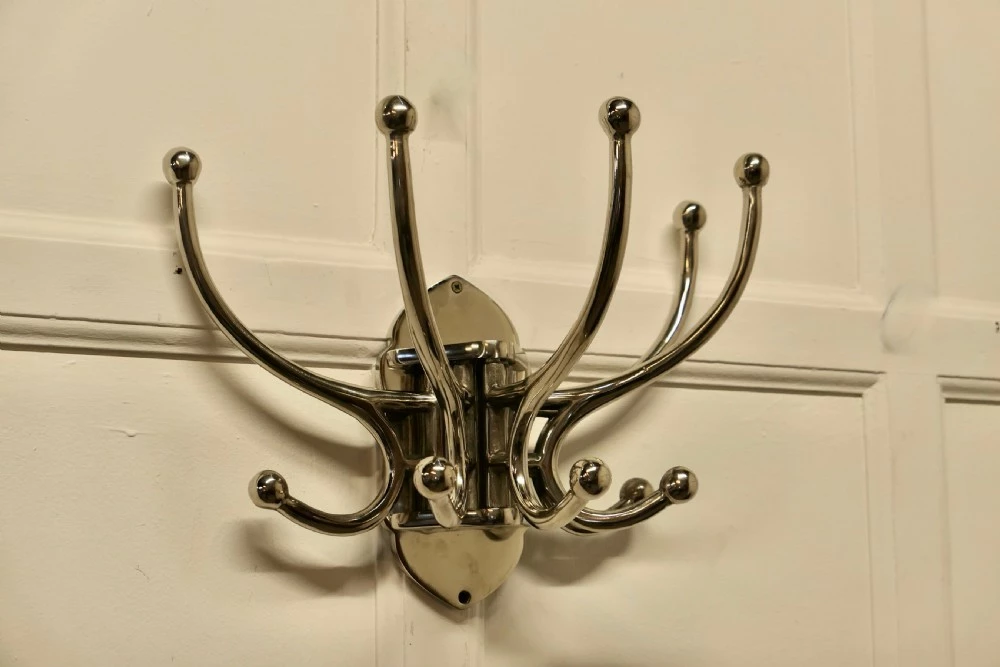 Art Deco Style French Chrome Coat Rack, Hat and Coat Hooks