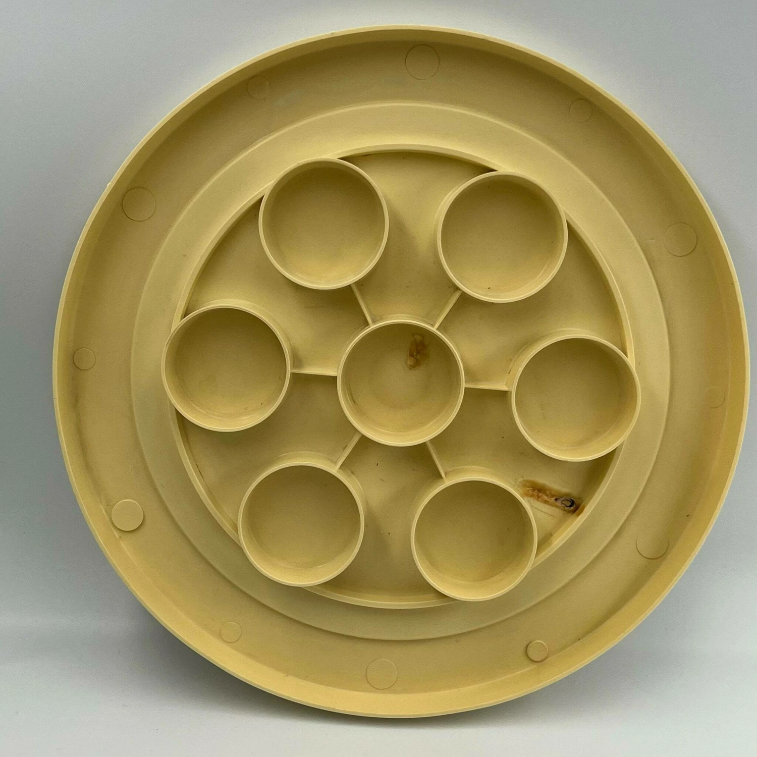It was made of the best heavy duty plastic material of its age. The bottom of the stand is detachable so that it can be cleaned. The maker’s mark is visible on the bottom (see photos).