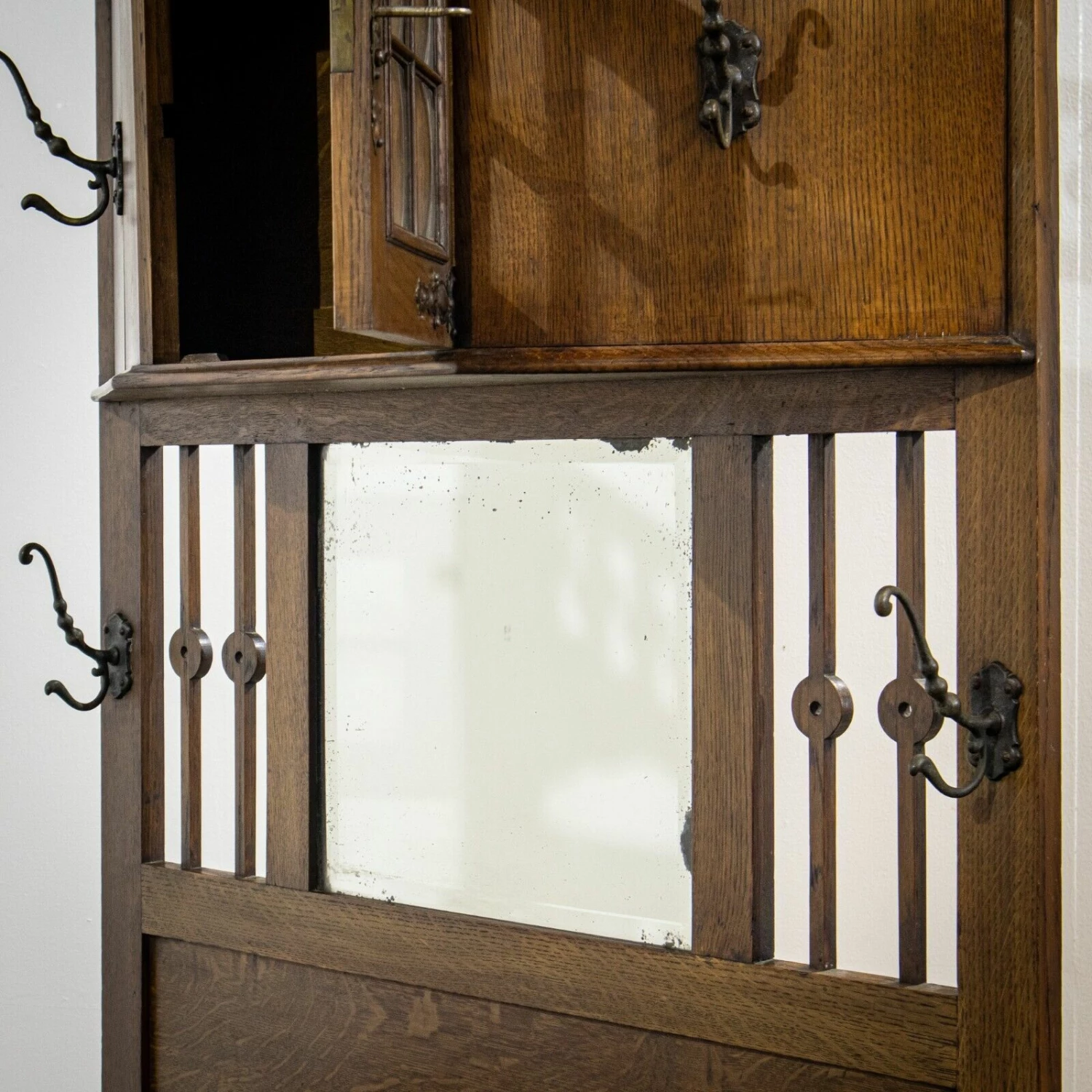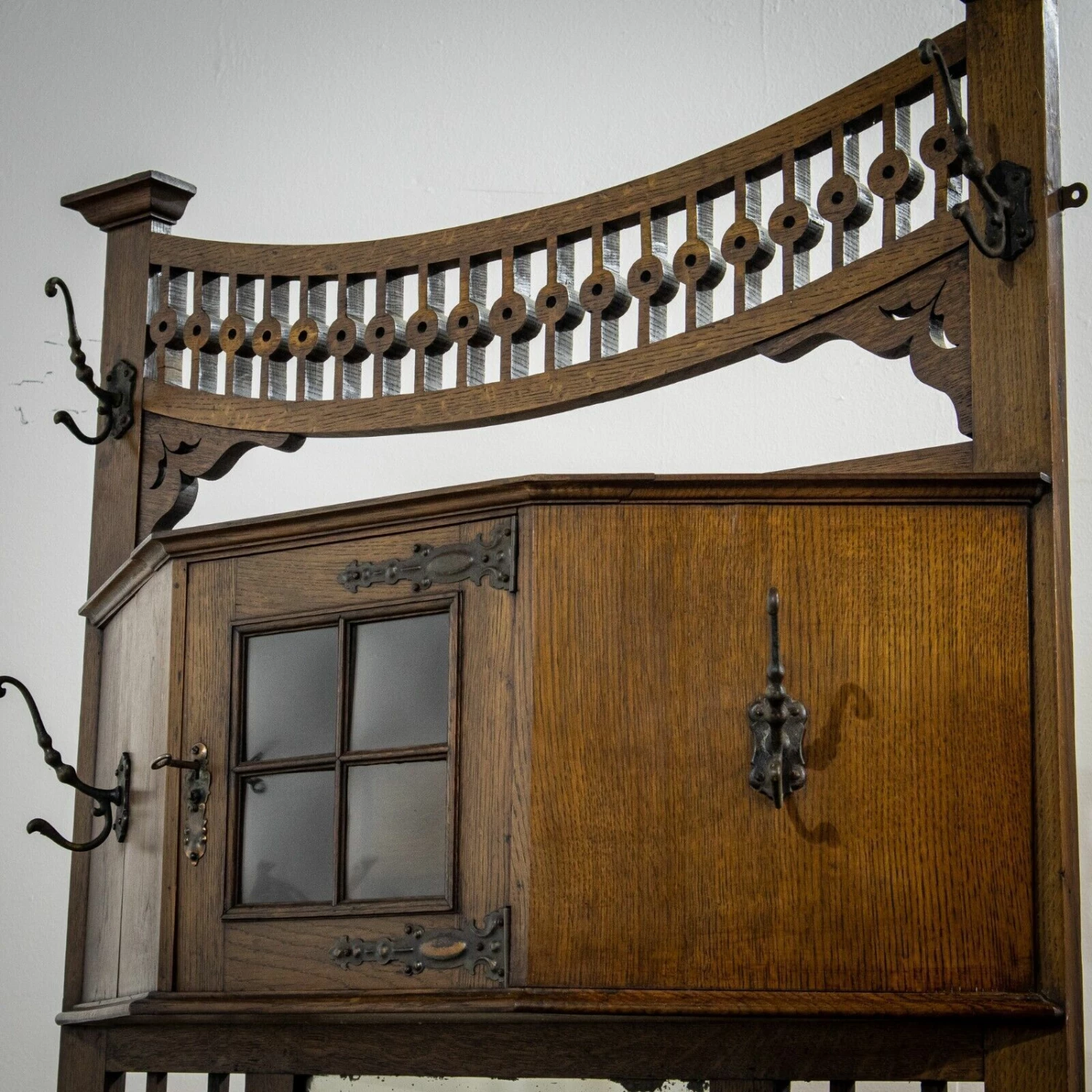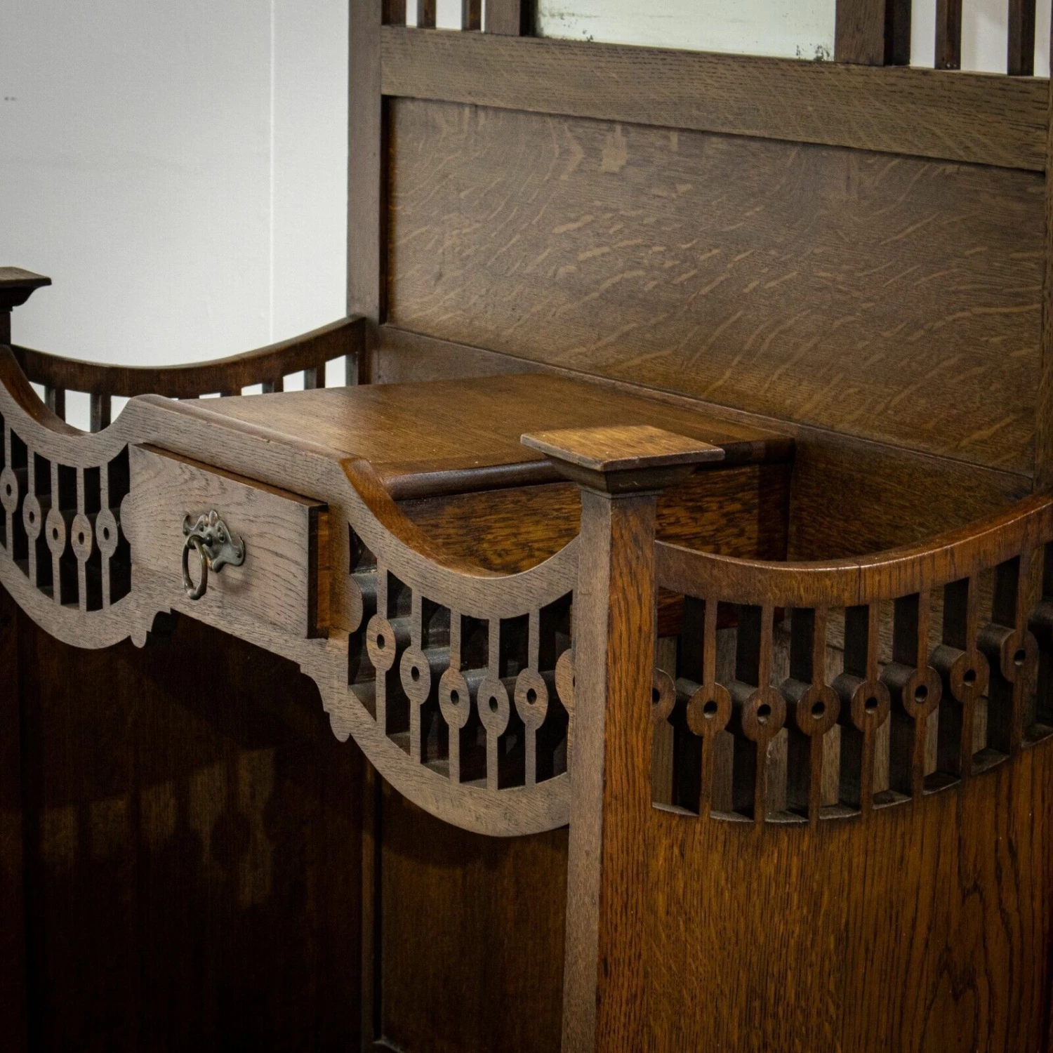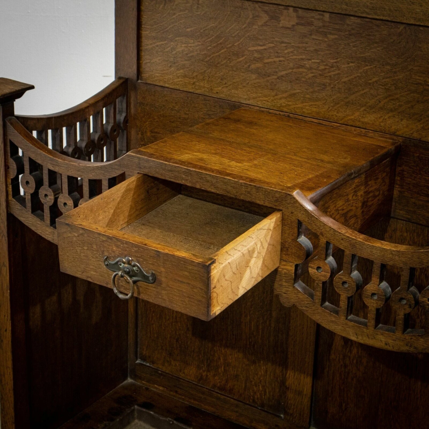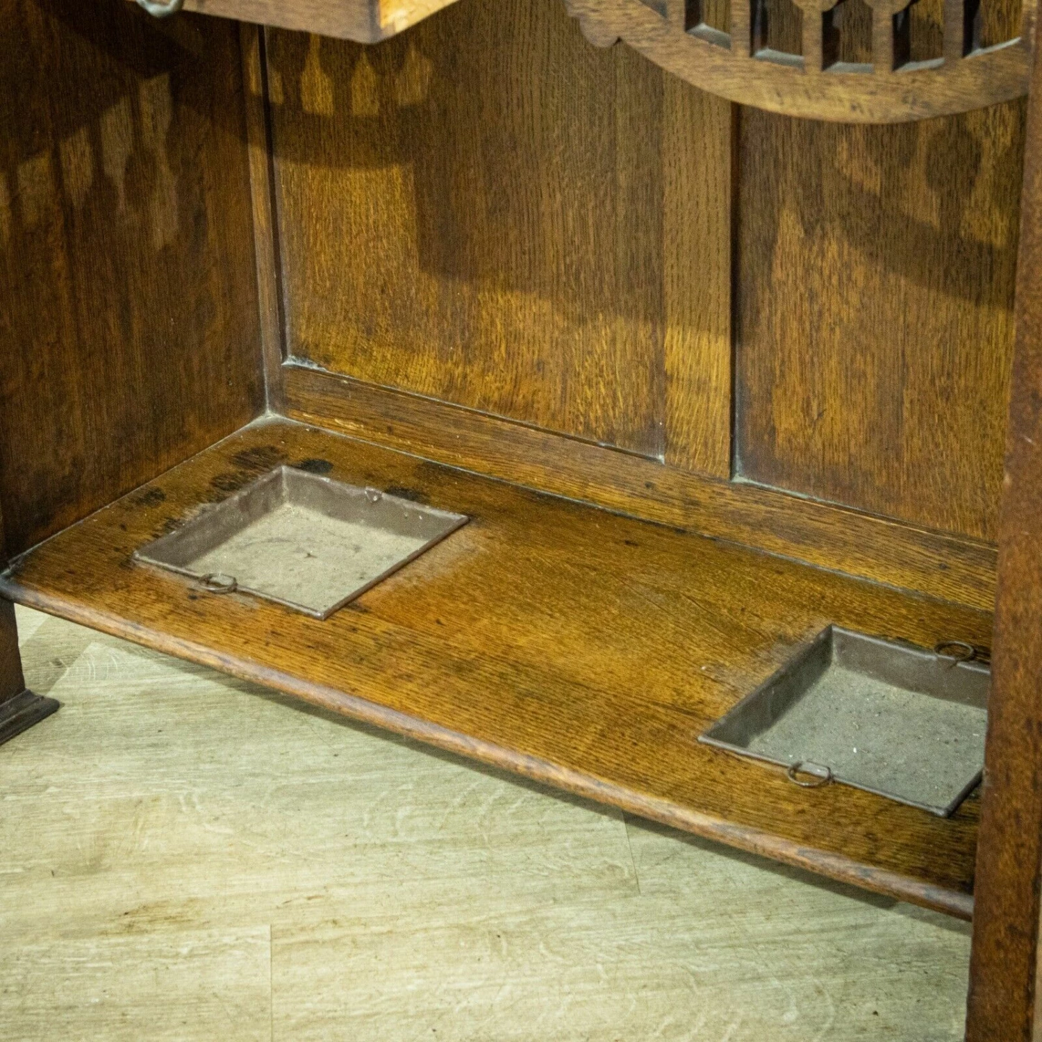 With all the requirements of the modern family home present, this piece of furniture is an ideal piece for the hallway of a period house. It has plenty of space for umbrellas, coats, hats, sticks, boots and shoes, along with the quality and style associated with the Arts & Crafts movement.