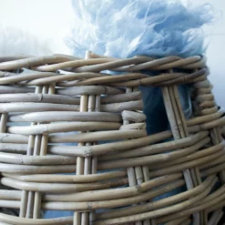 Unknown Vintage French Small Market Basket, Natural Woven Rattan Panier, French Round Basket