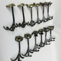 Black Brass Animal Cloakroom Hook By Walter Bosse, 1950s, Set Of 12