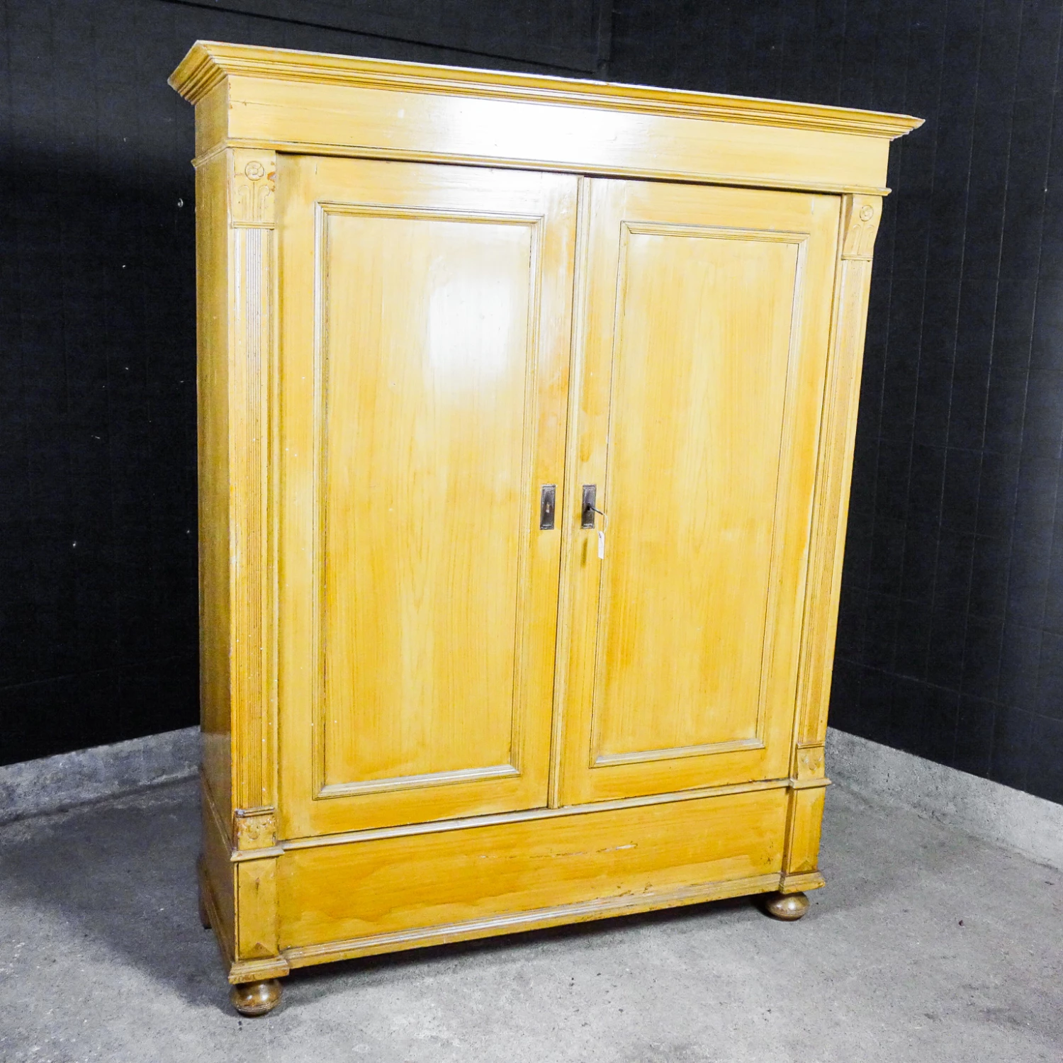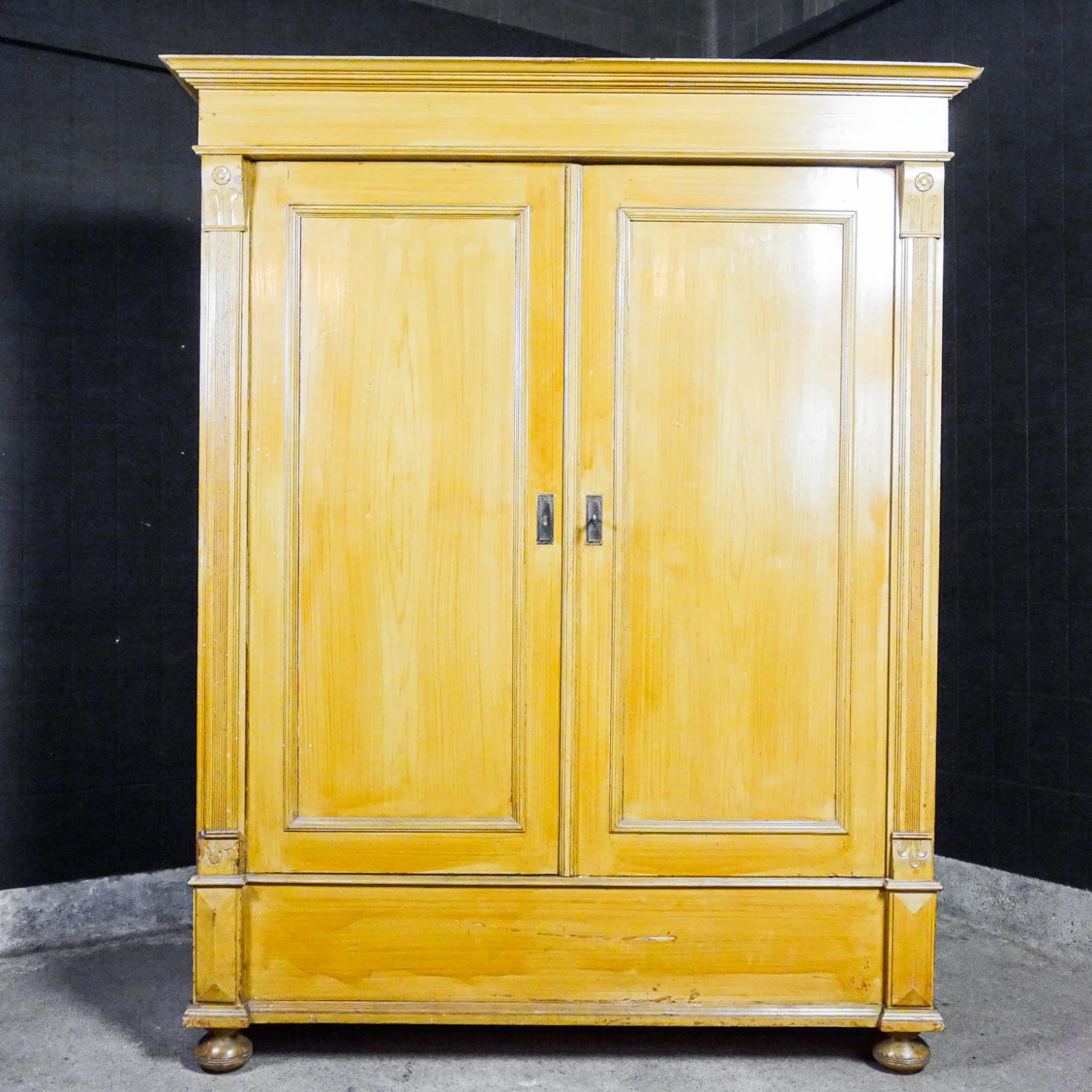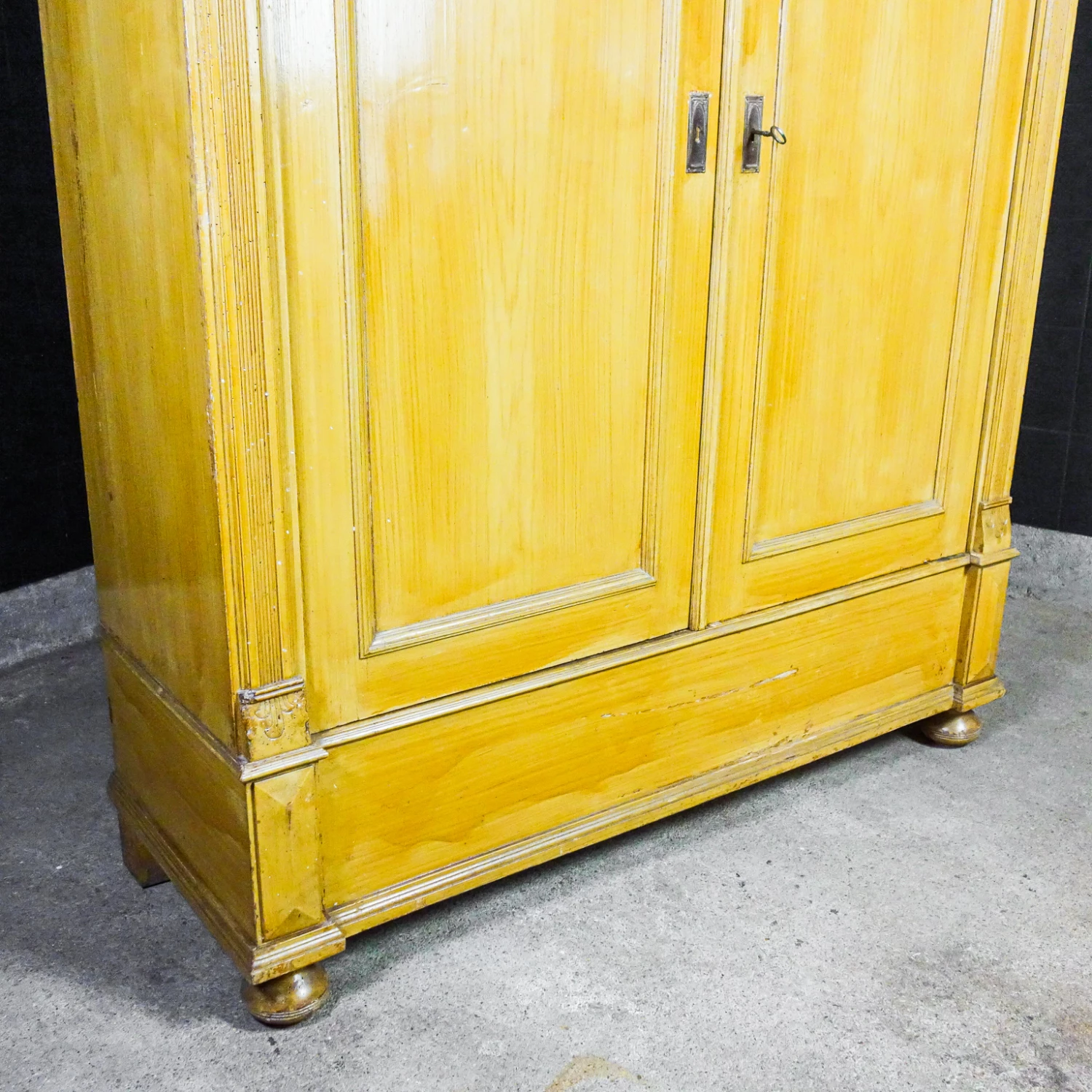 This brocante 2-door cabinet dates from the early 1900s. What makes the cabinet extra special is the fact that it is “wooded” entirely by hand, which means that it has been painted in such a way that it looks like it has all wood grains! The cabinet has a wooden rod on which clothes can be hung, it is also possible to provide the cabinet with shelves!