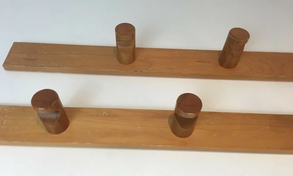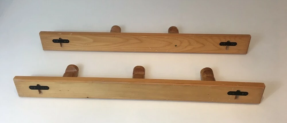 Charlotte Perriand. Pair of pine wall coat-hangers. French. Circa 1970