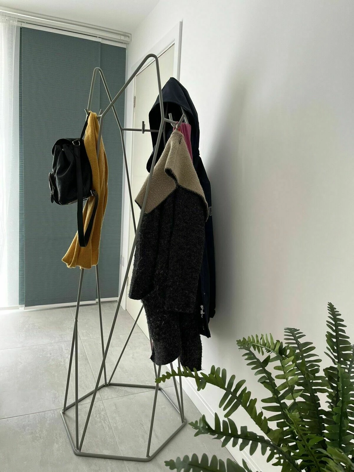 Note – the last 2 photos are illustrative, showing a white version of the coat rack. The item for sale is a light grey colour