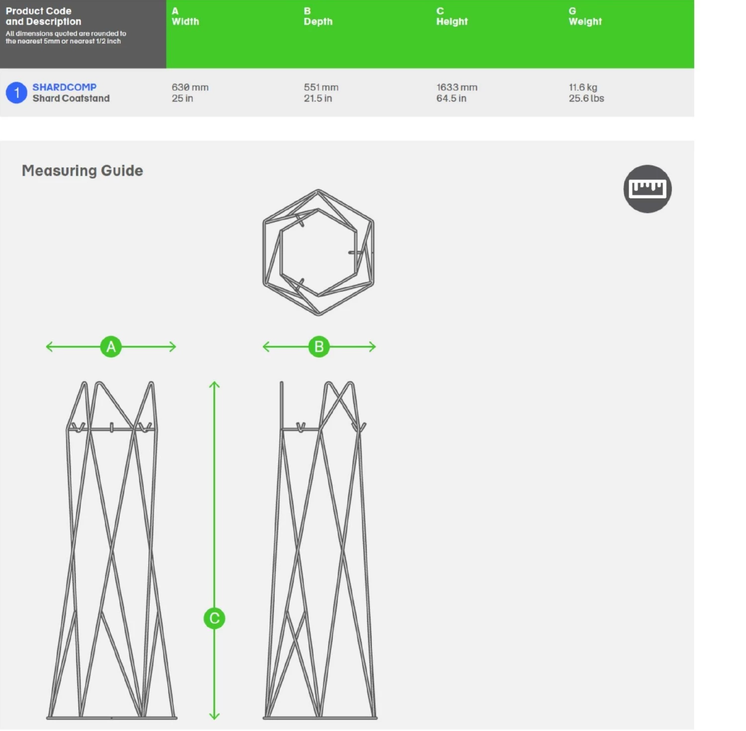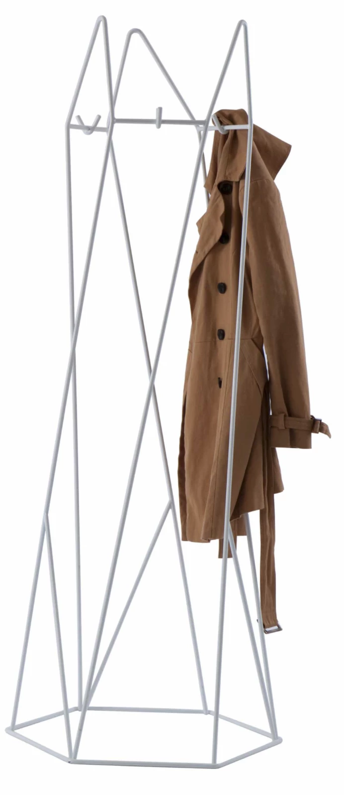 Made from bent steel, which is weld jointed together and polished by hand to a smooth surface. The base is then finished with durable polyester powder coat. The Shard coat stand is made as a single piece and has no fixings.