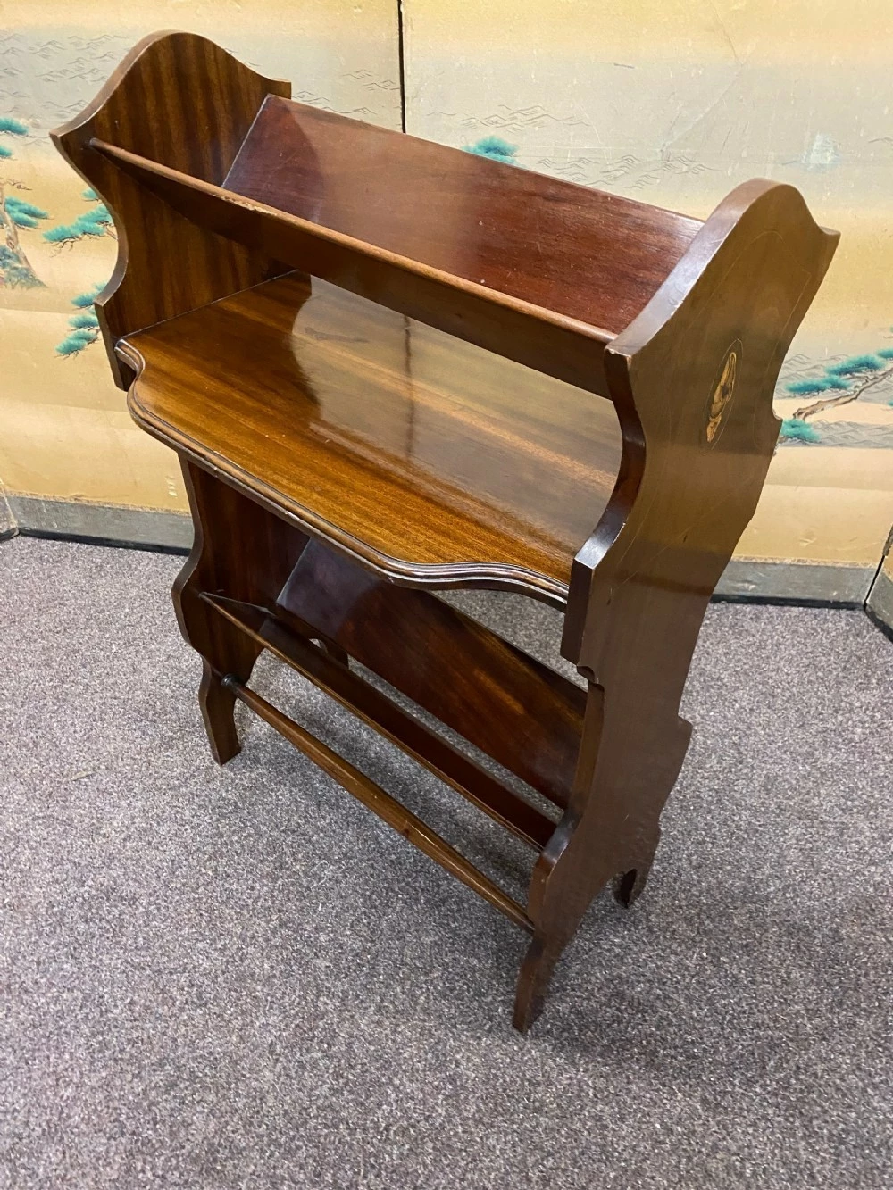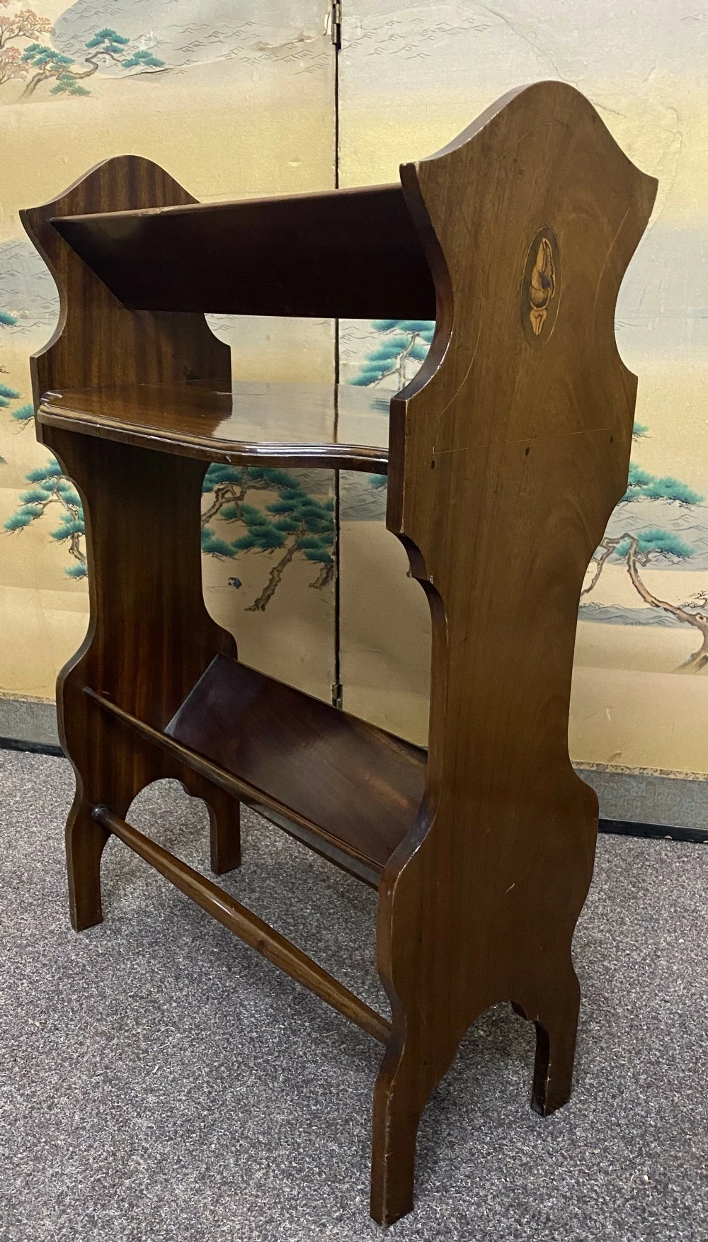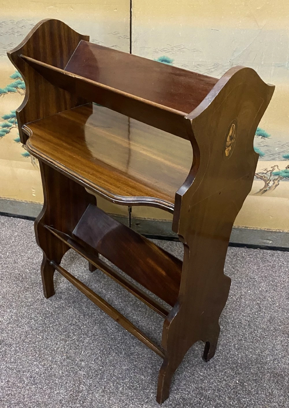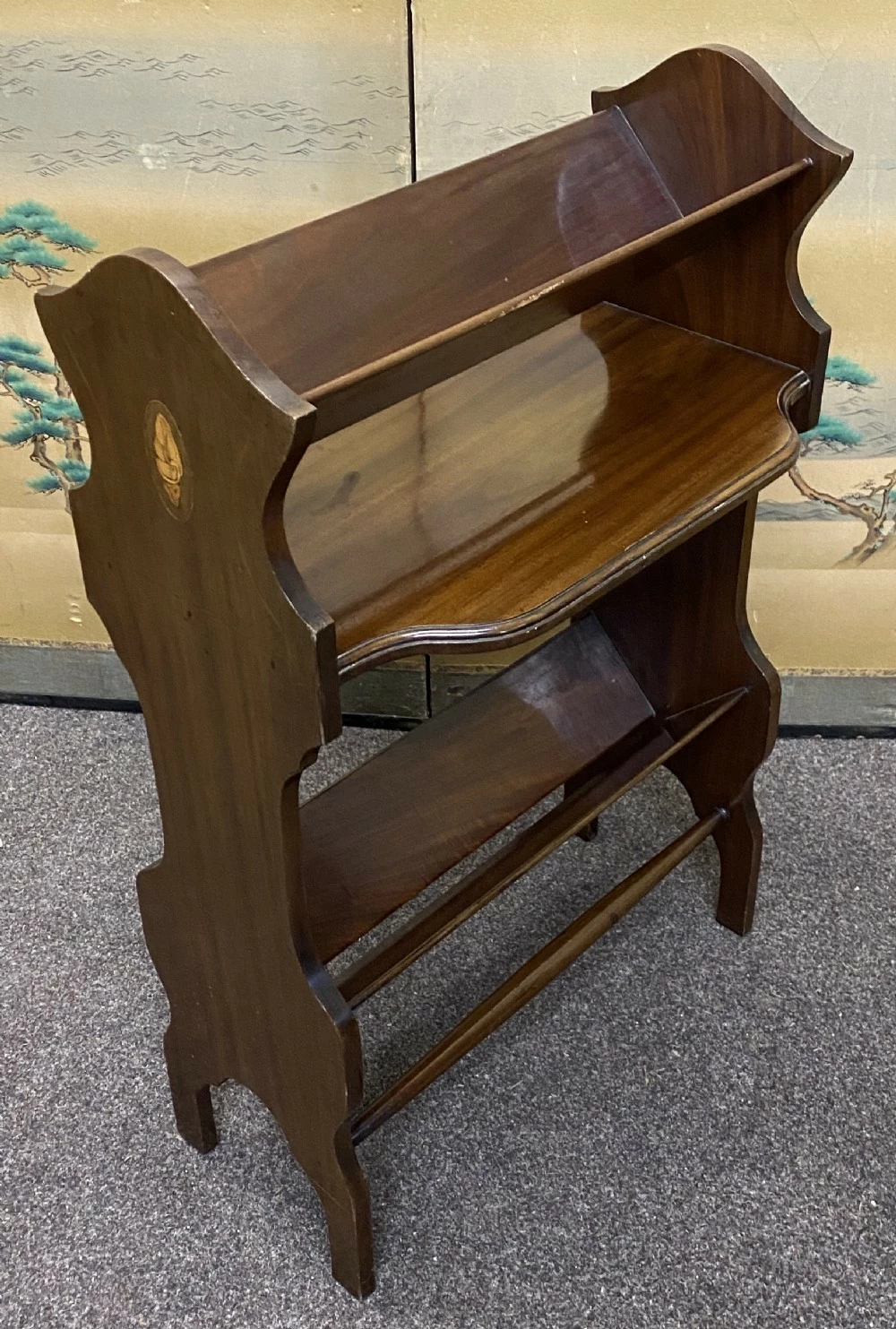 Edwardian Mahogany and Shell inlaid Book and Paper Shelves