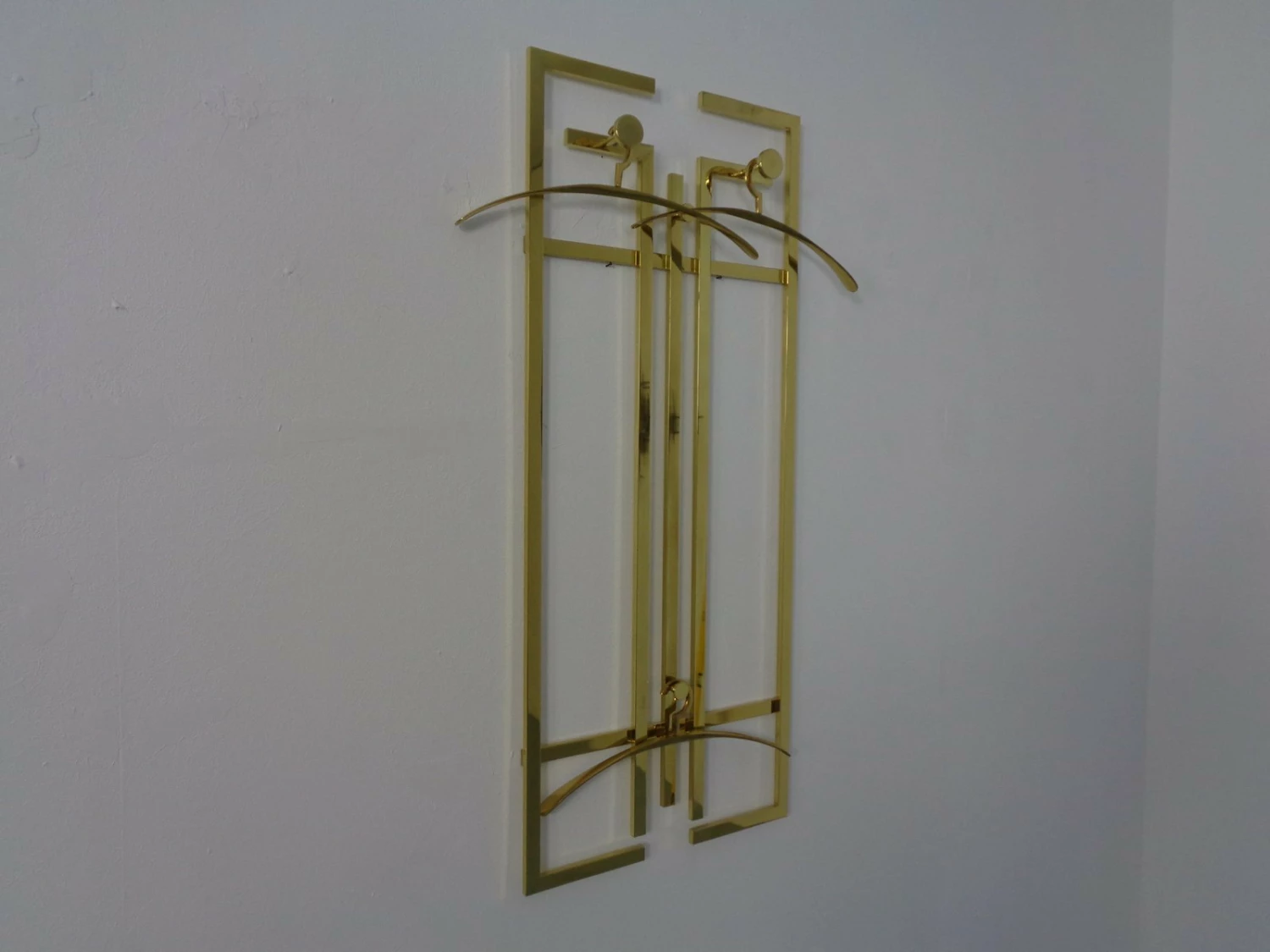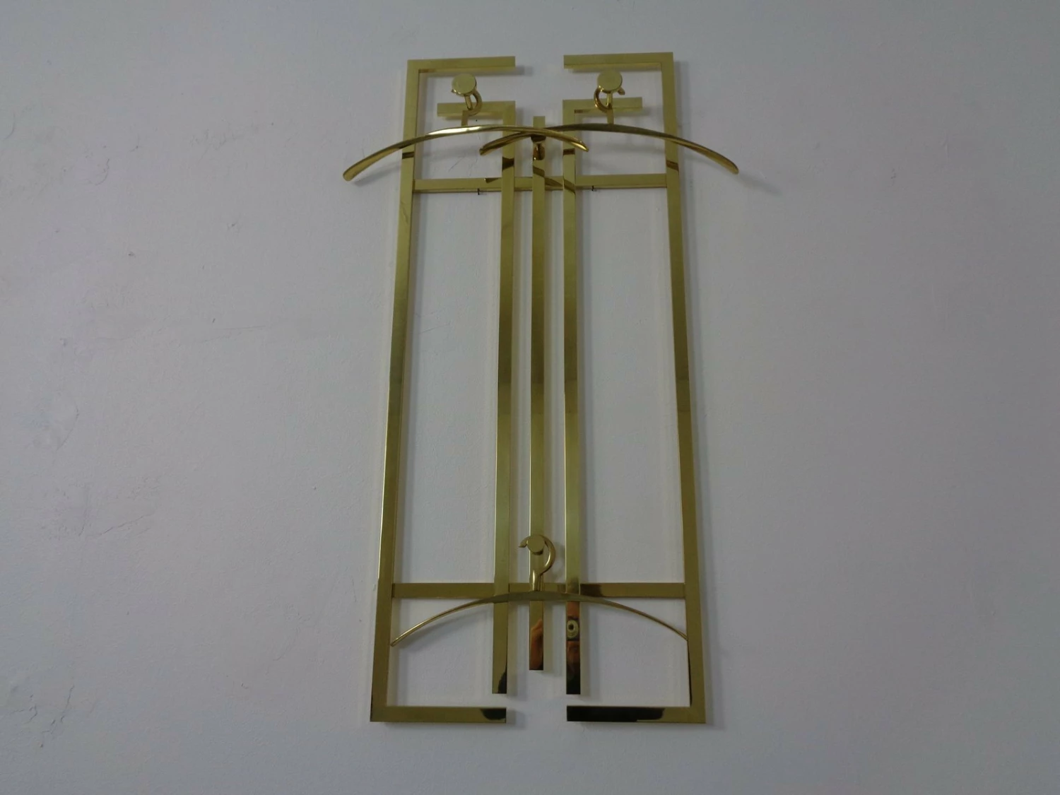 Wall coat rack with 3 hangers from the 1970s.