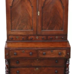 Georgian (George III, C1800) mahogany housekeeper’s cupboard secretaire bookcase chest. Sometimes known as an estate cupboard. A wonderful rare quality period piece.
