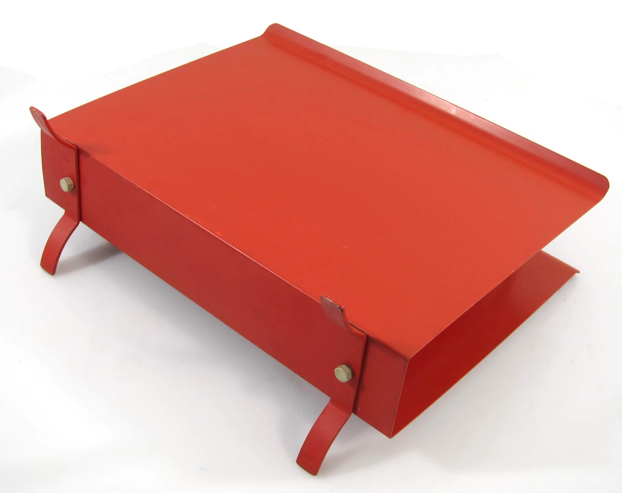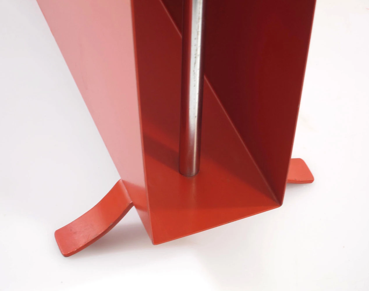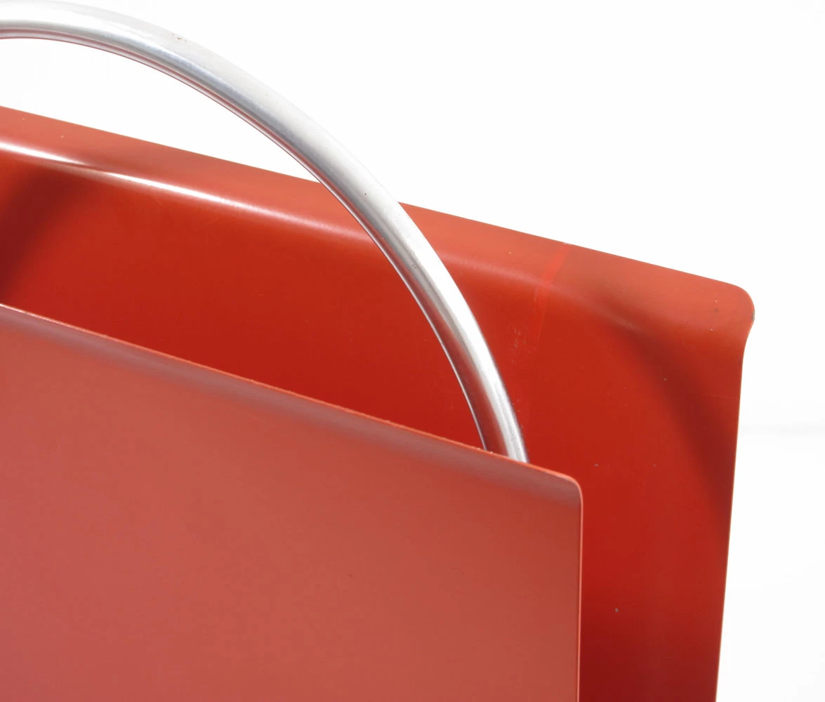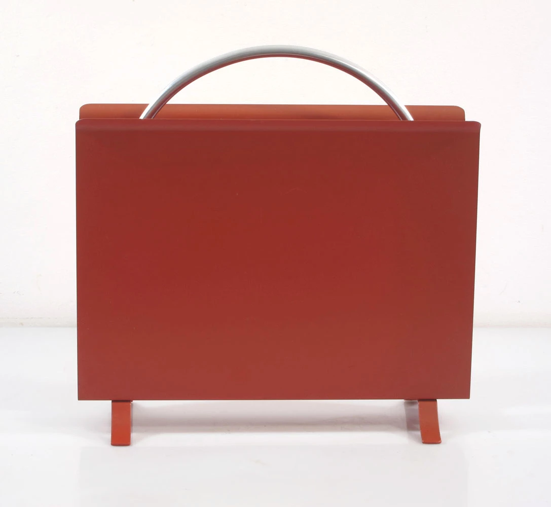 Designed by W.H. Gispen in 1932. Gispen 1022 orange metal magazine & newspaper rack. Has some signs of use.