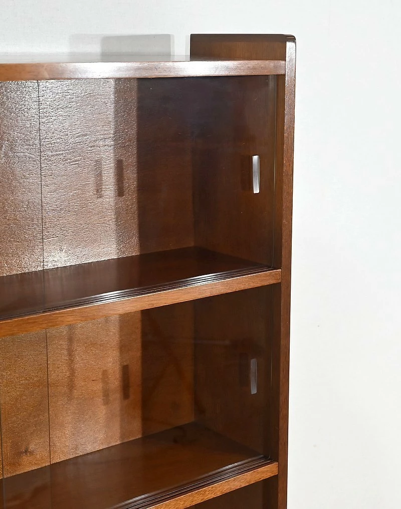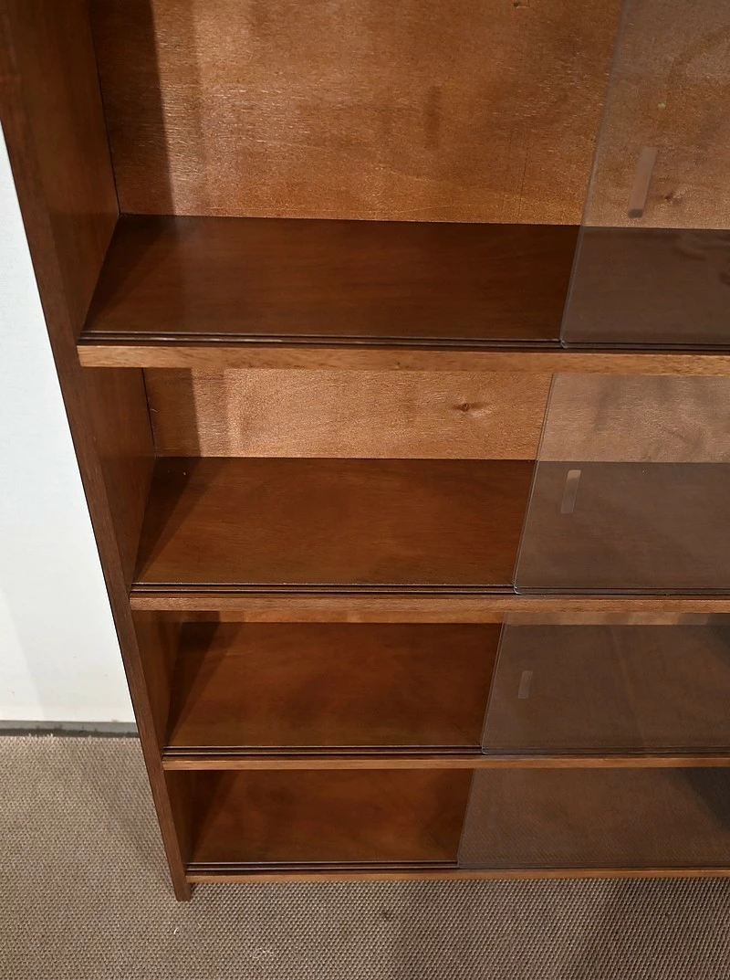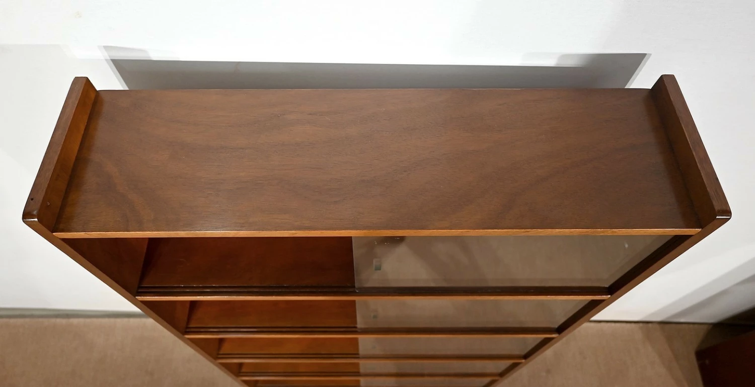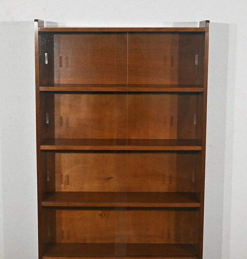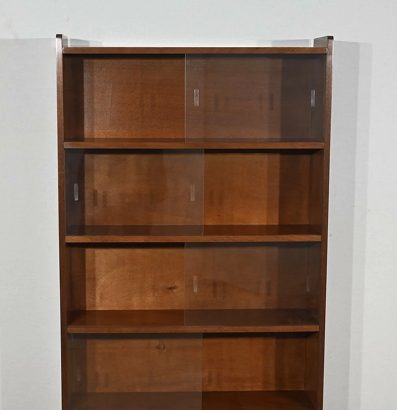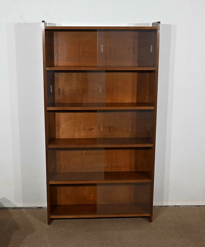 Created by the French designer Didier Rozaffy, this glass bookcase, in mahogany veneer, has five shelves.