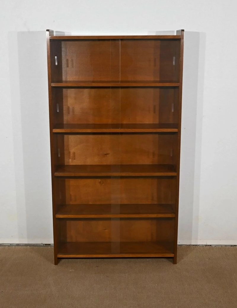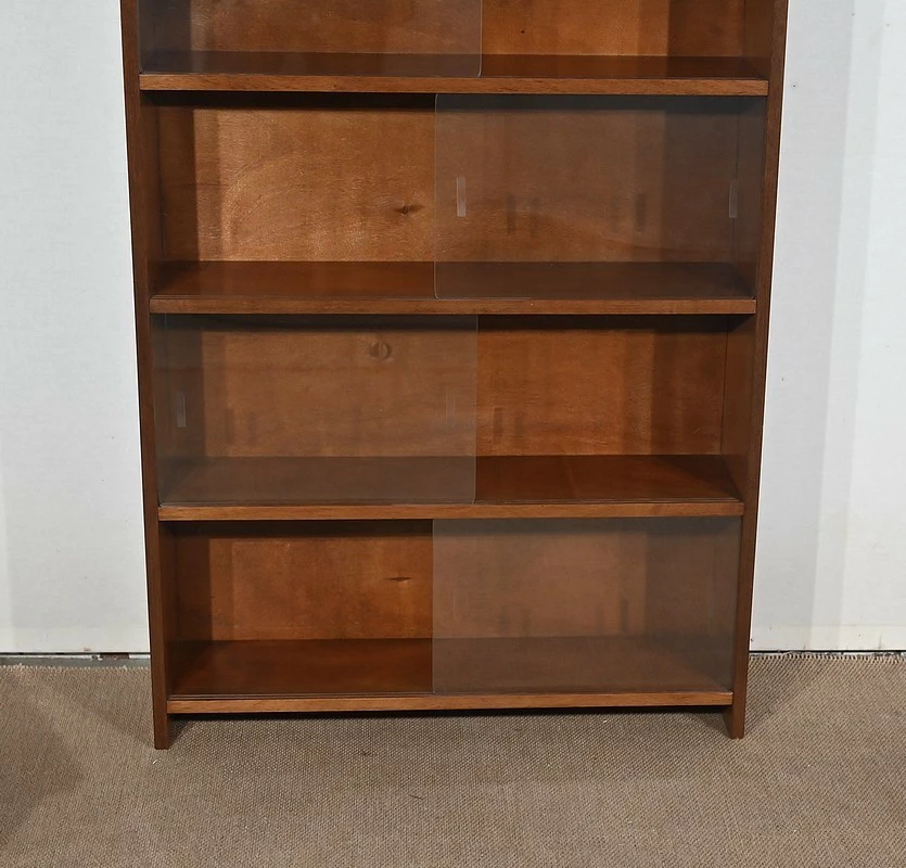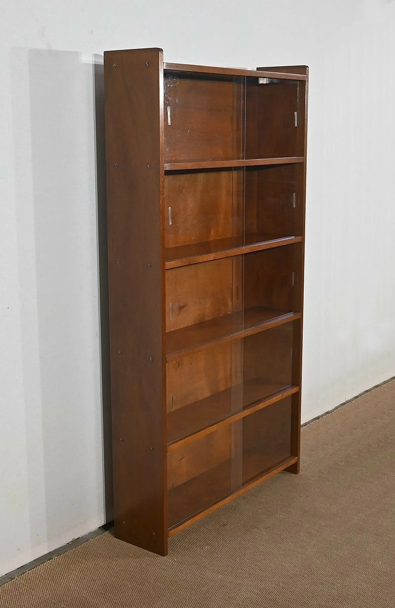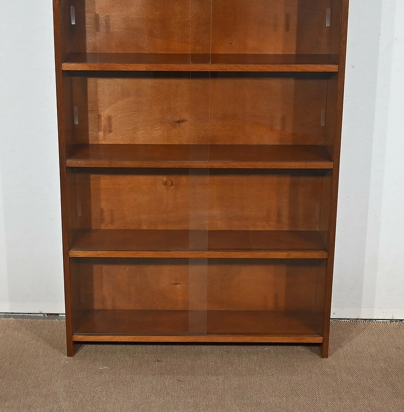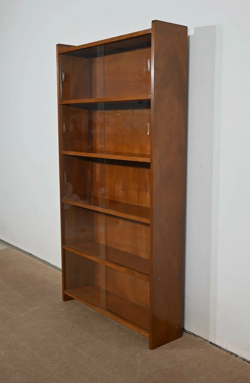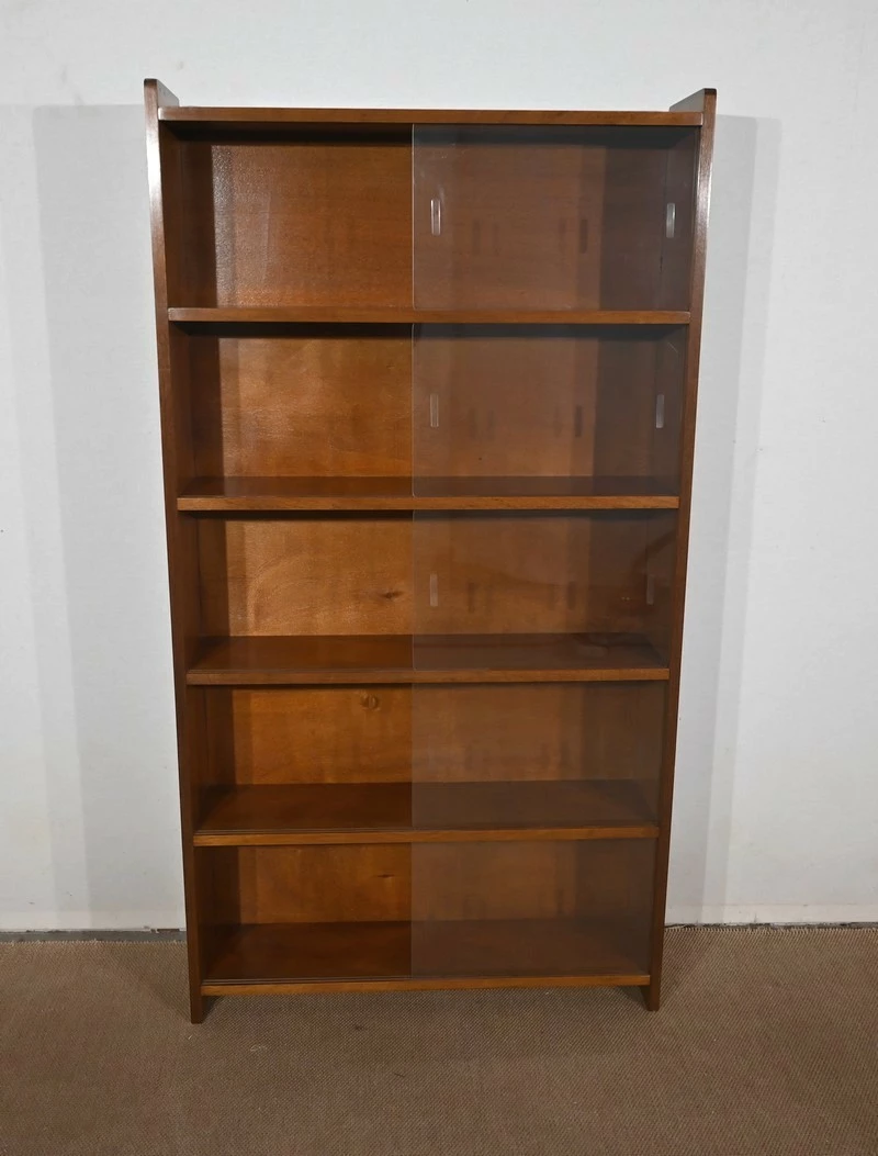Created by the French designer Didier Rozaffy, this glass bookcase, in mahogany veneer, has five shelves.