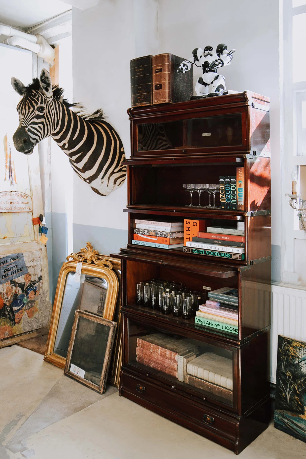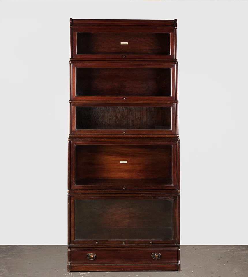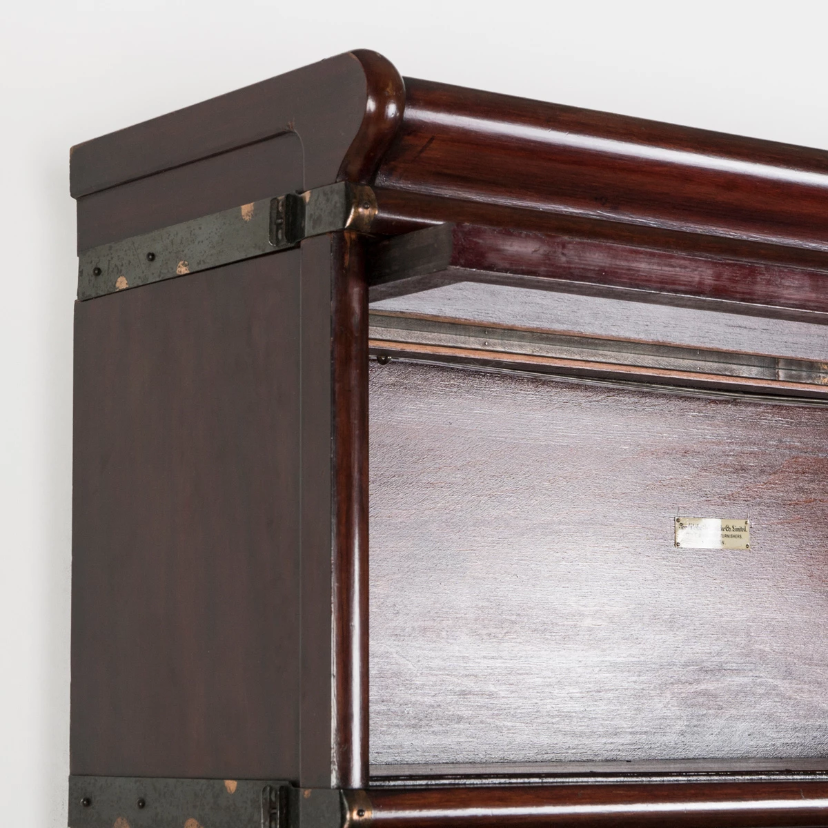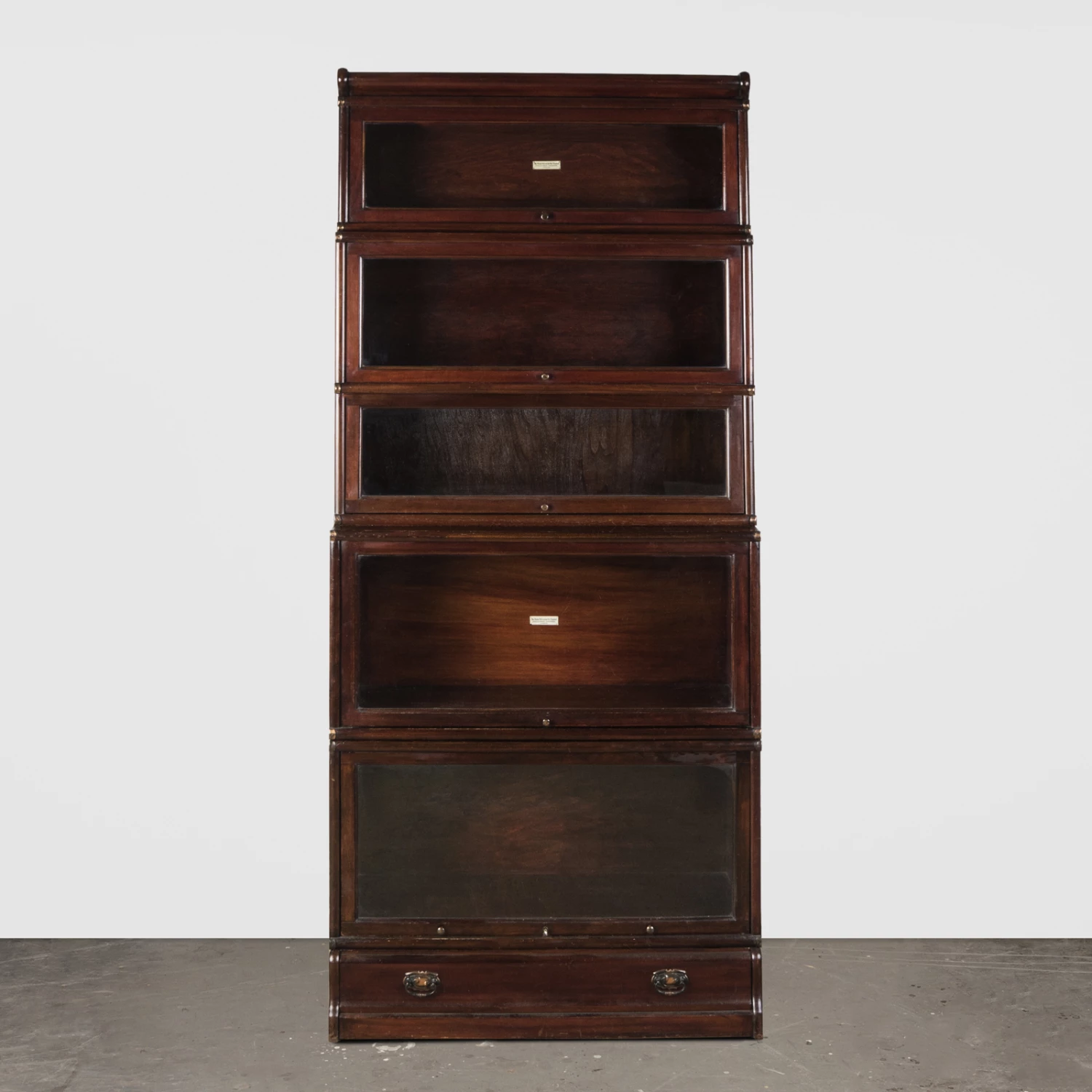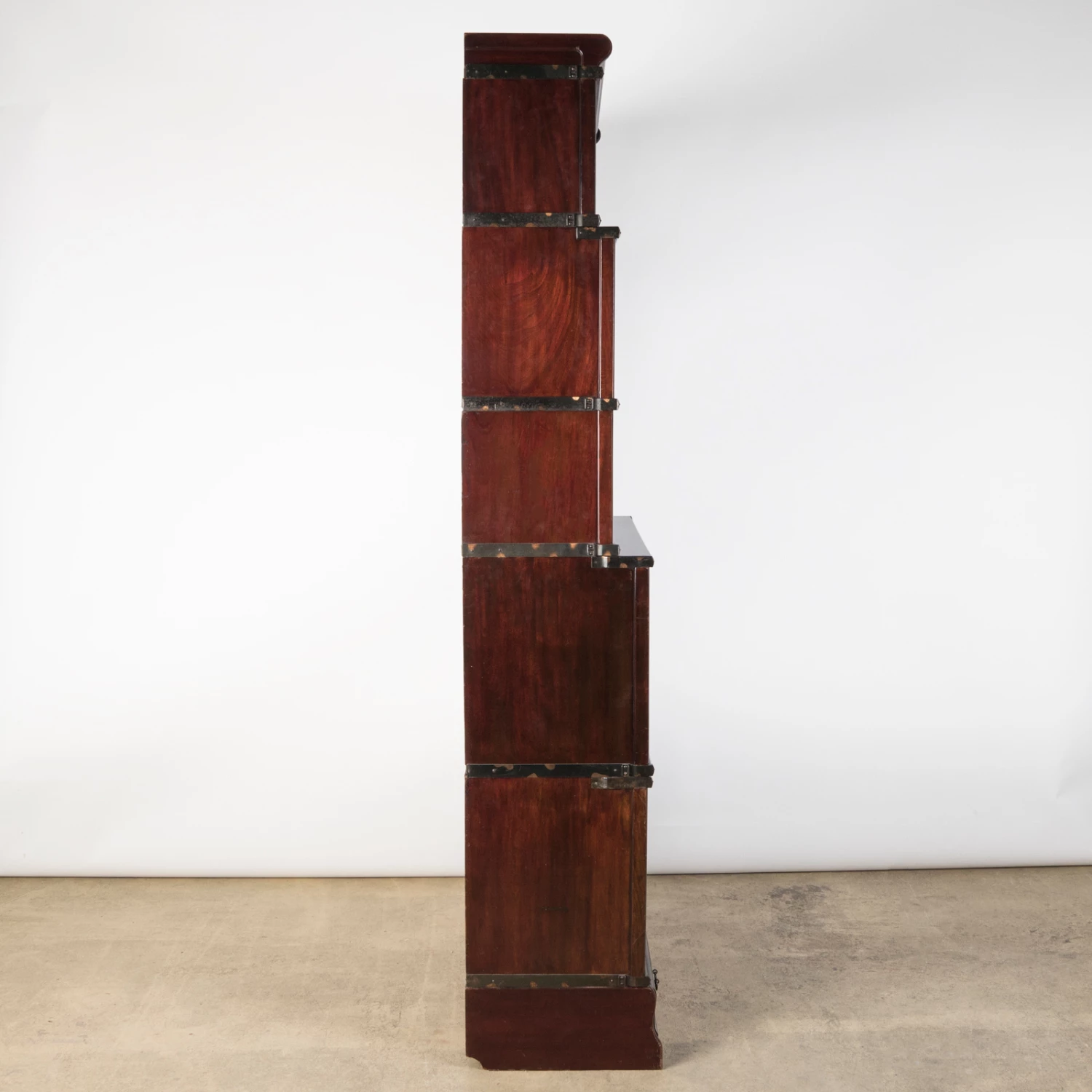 An antique barrister bookcase by Globe Wernicke. Mahogany construction with five stacks, each having slide out glass doors.