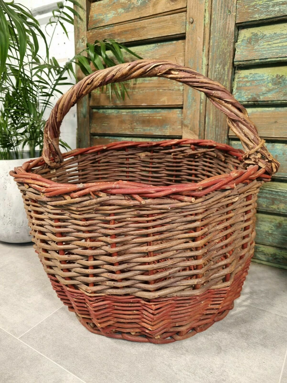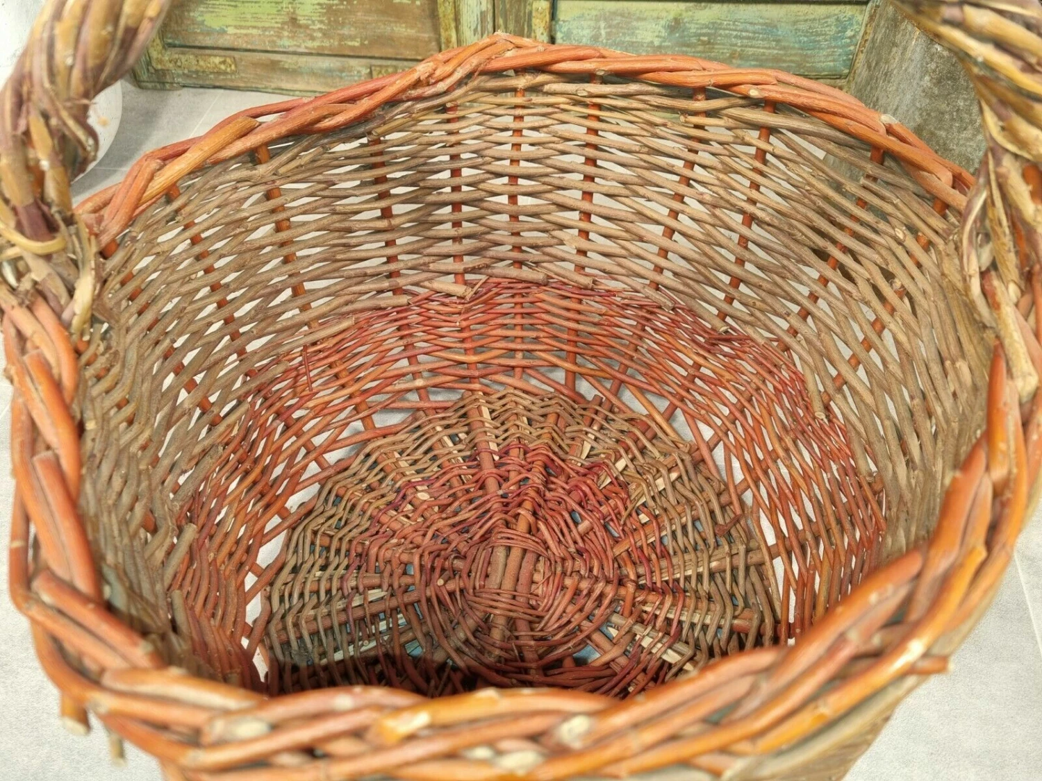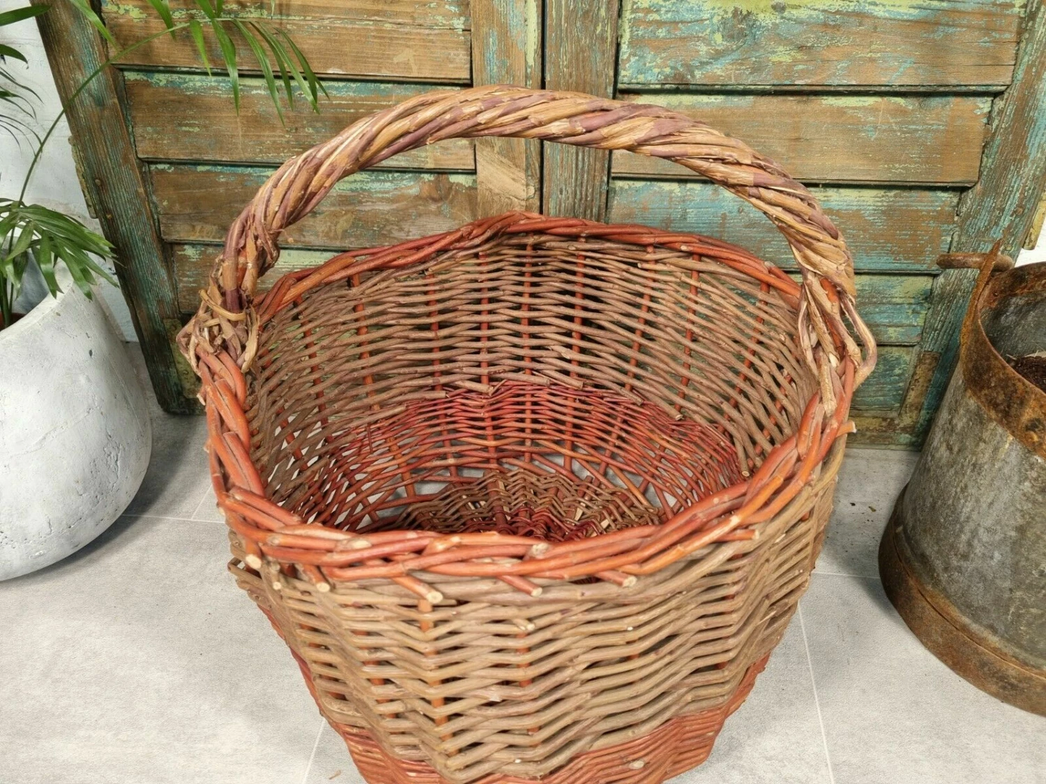 Lovely old large vintage hand made willow basket. This basket originates from Europe and would have originally been used for fruit picking. It has a lovely shape and design combined with a patina which shows its age and history ideal for use as a hamper