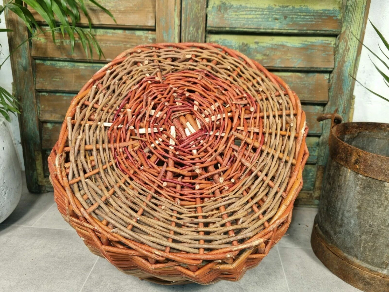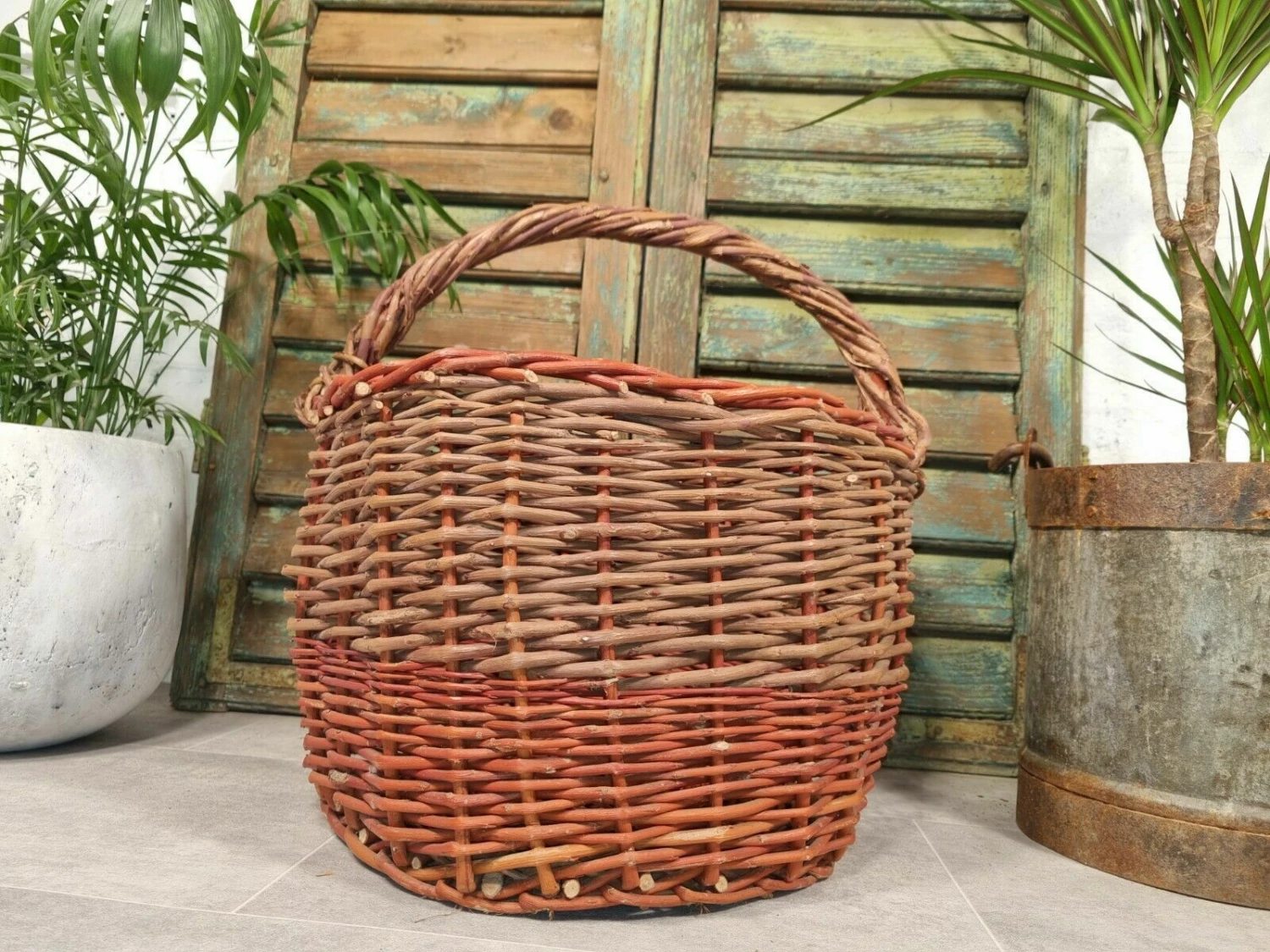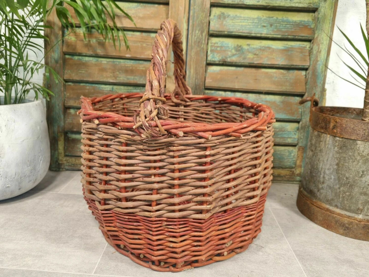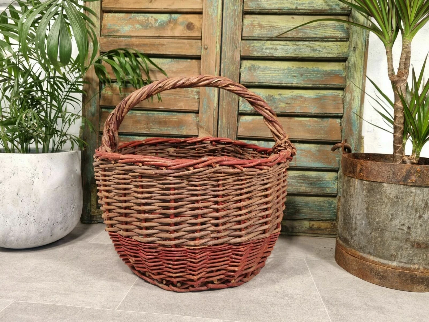 Lovely old large vintage hand made willow basket. This basket originates from Europe and would have originally been used for fruit picking. It has a lovely shape and design combined with a patina which shows its age and history ideal for use as a hamper