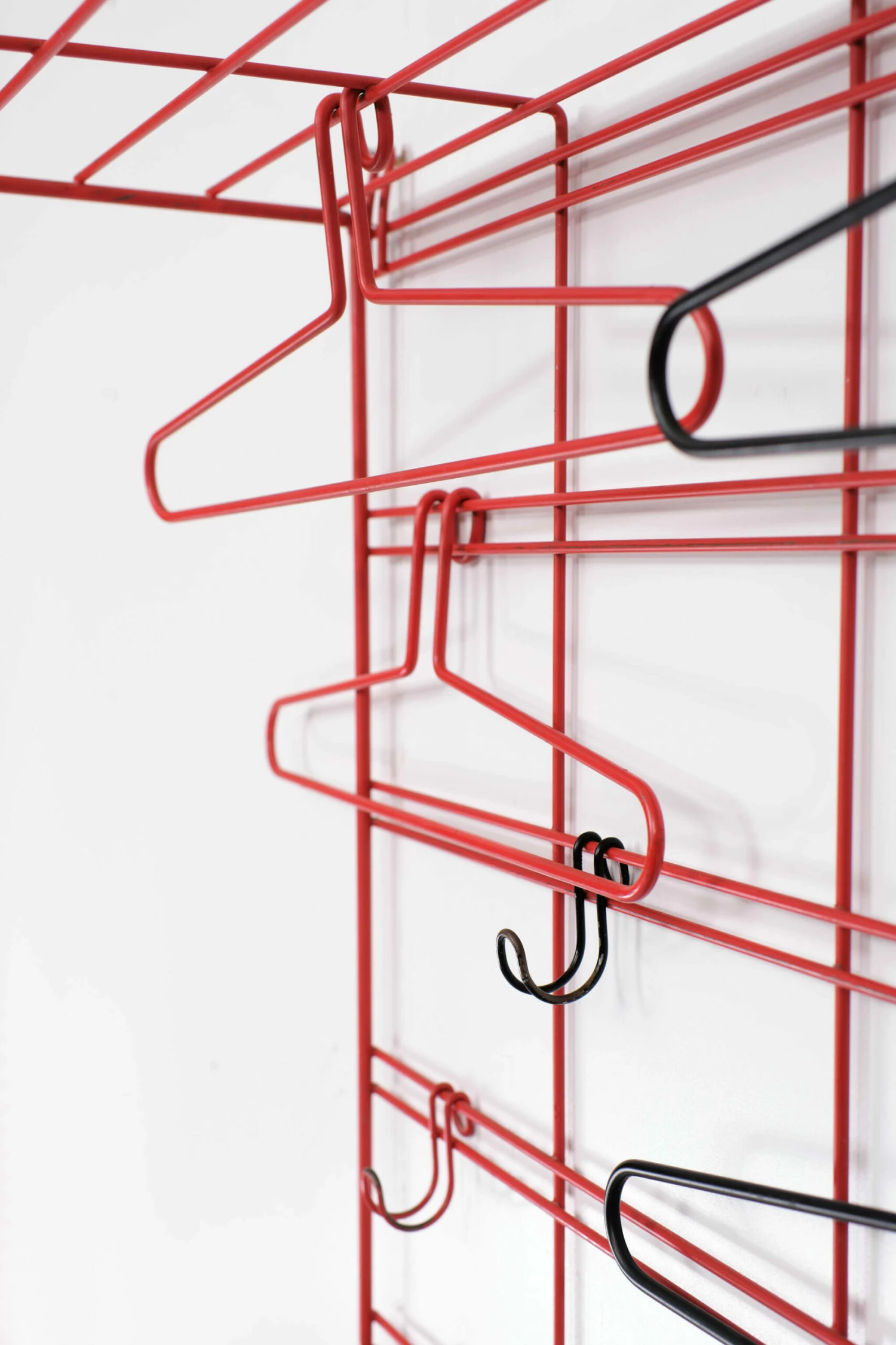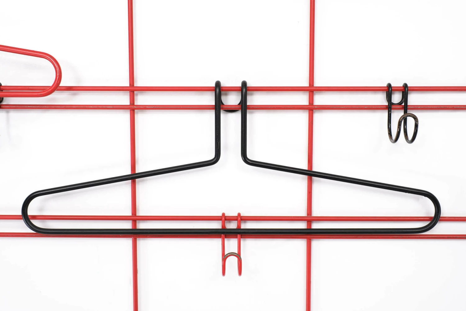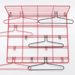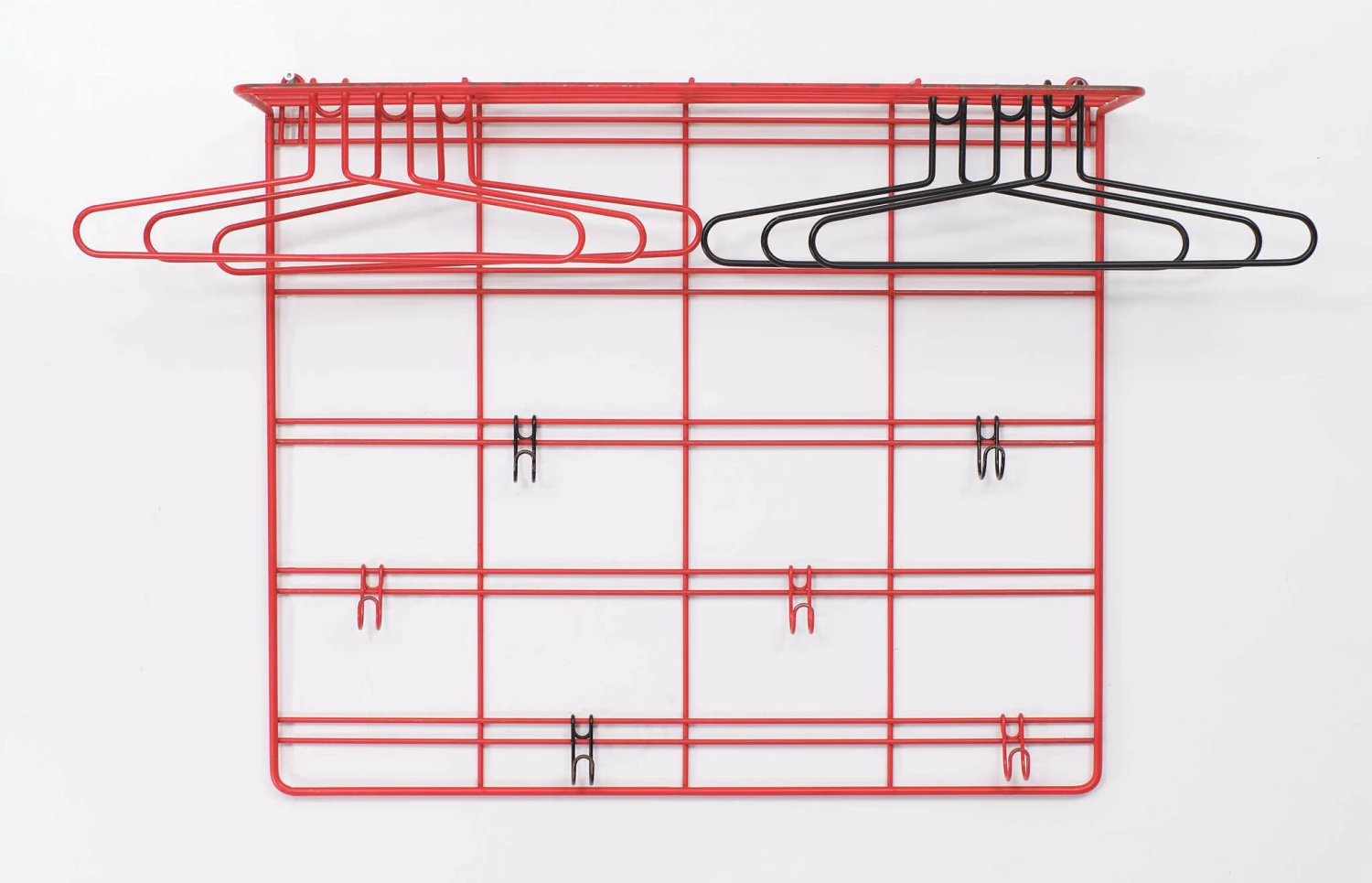 Remarkably this set is still complete comes with the 6 hooks and the 6 hangers .In Black and Red color . Made of Iron . Great looking piece . Normal wear and tear .