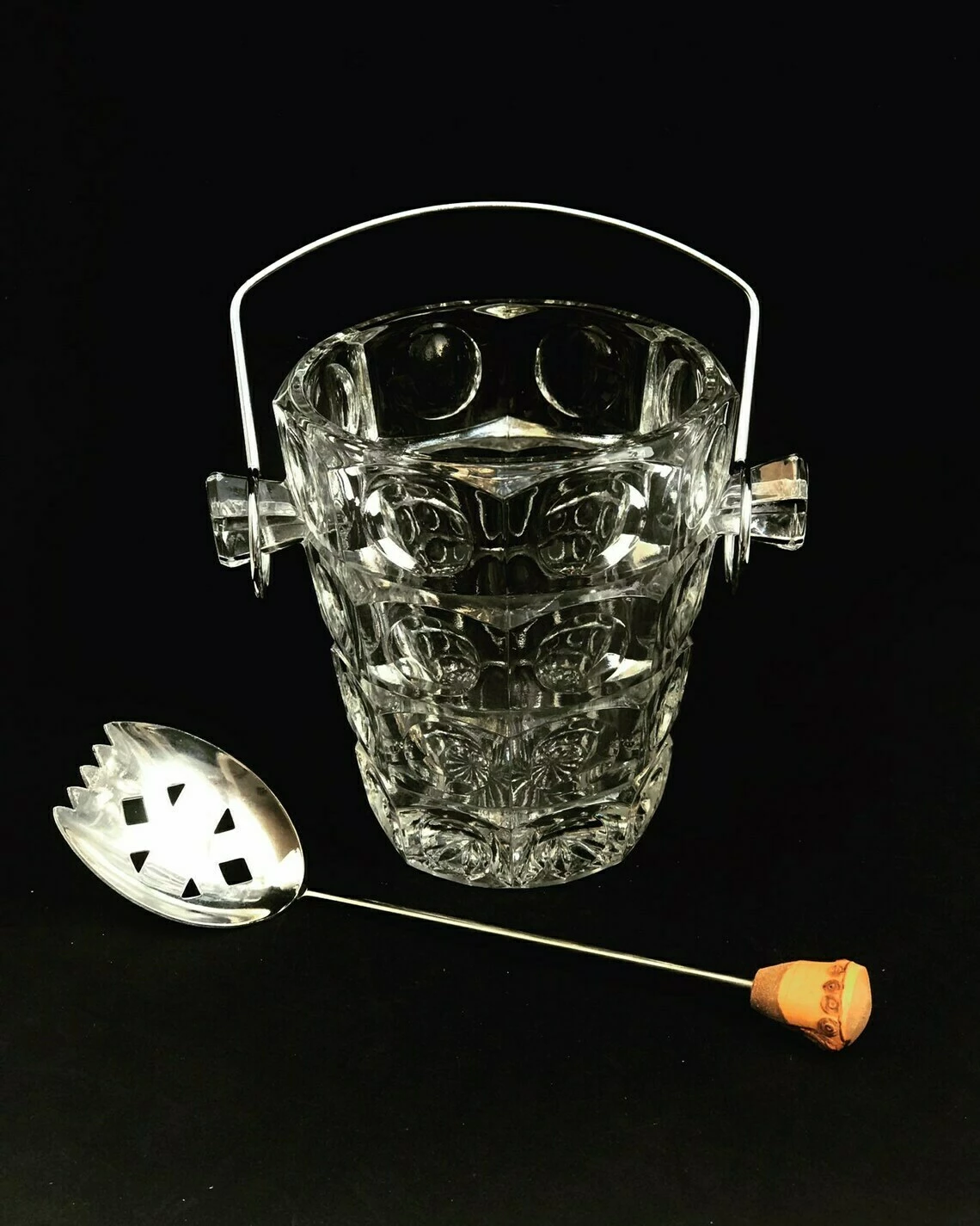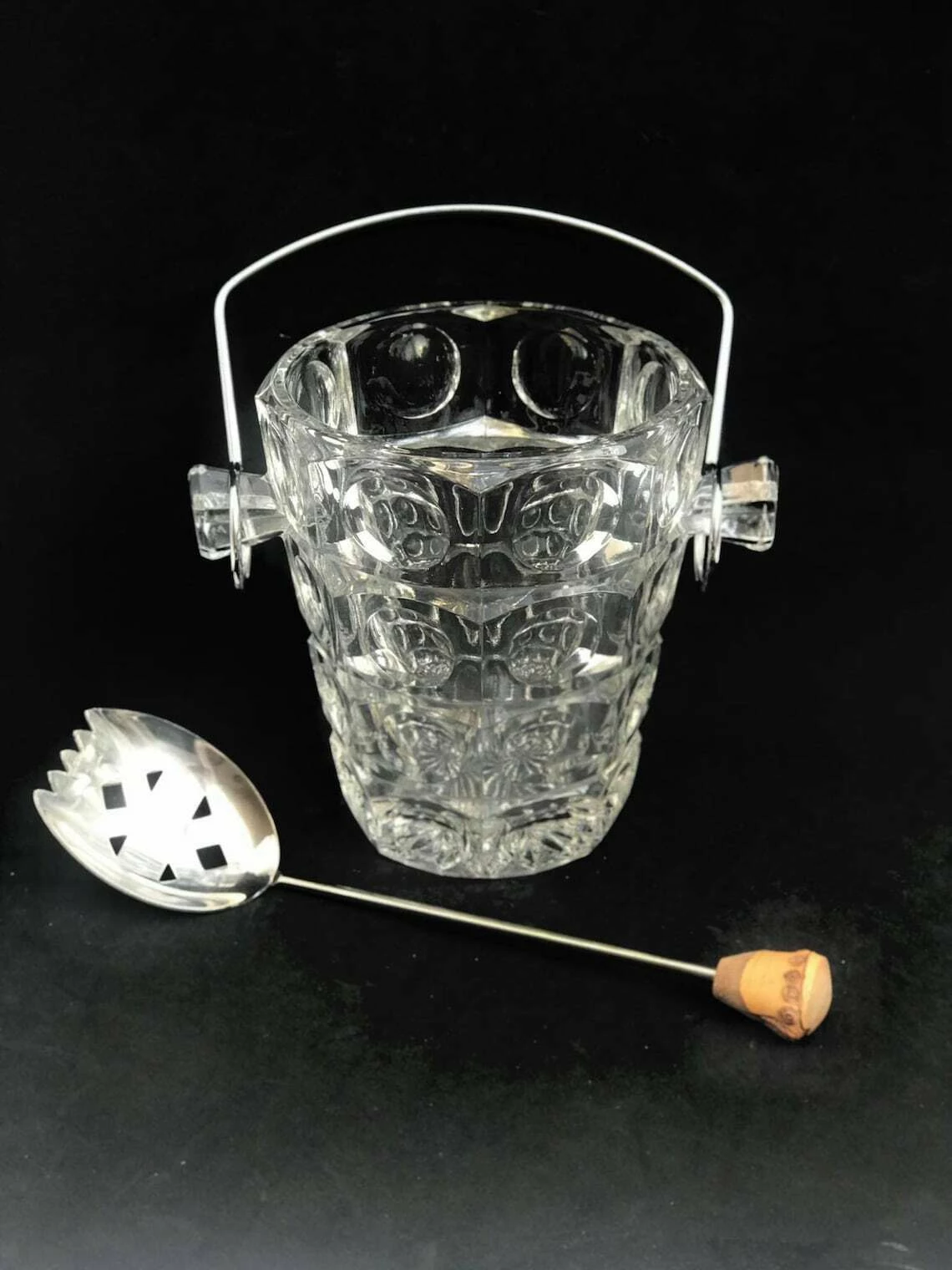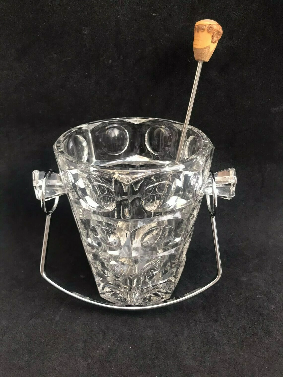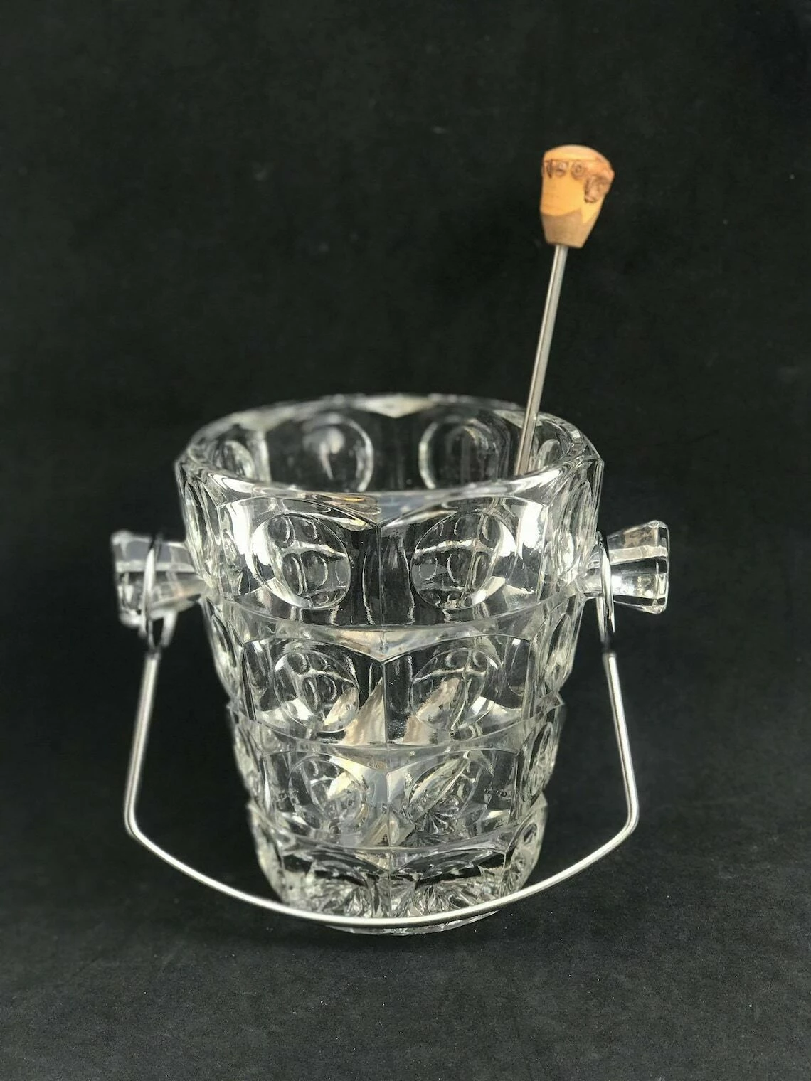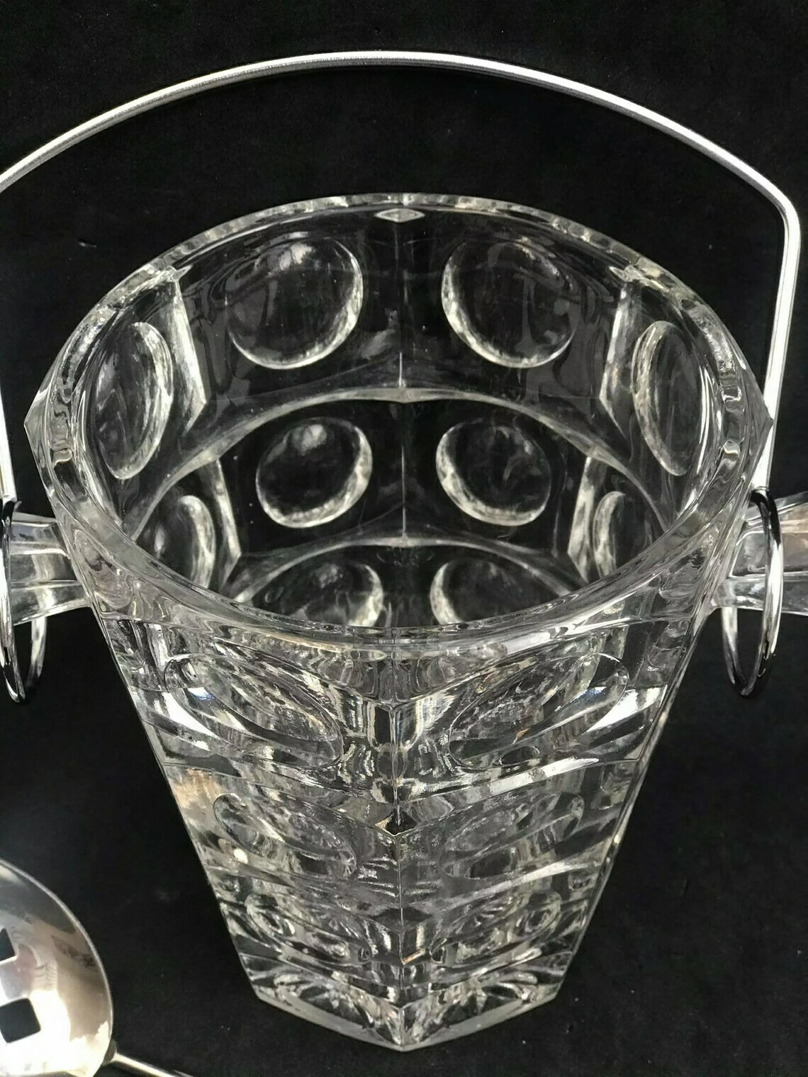 Heavy glass Ice Bucket, Heavy Glass Bucket heavy glass ice bucket and chromed metal handle.Very refined , 50s.