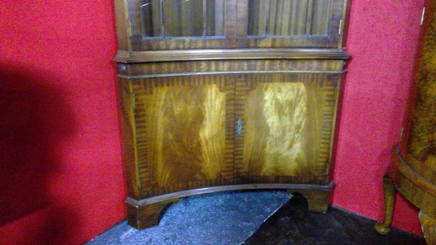Impressive Sheraton Style Astral Glazed Mahogany Concaved Shaped Corner Cupboard