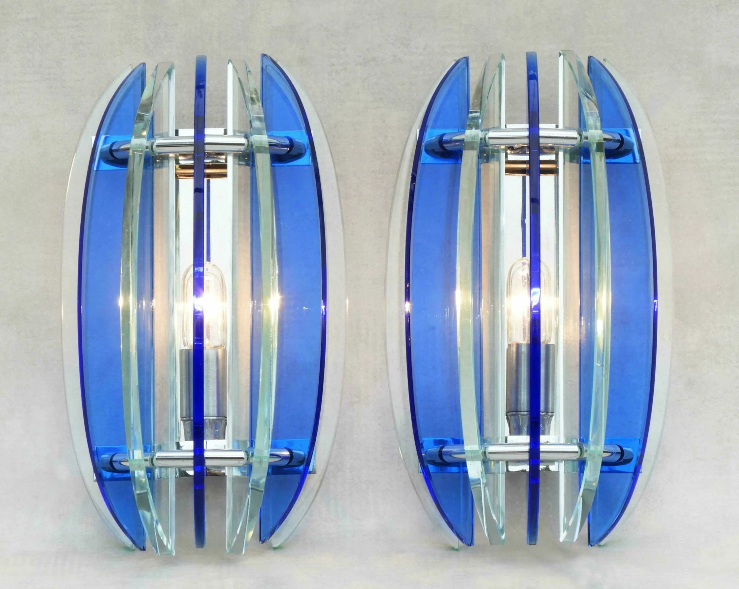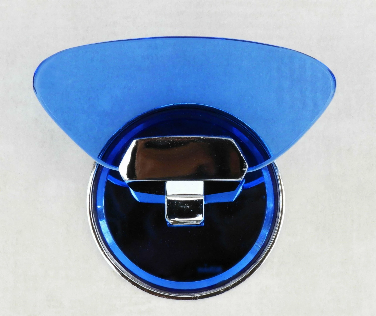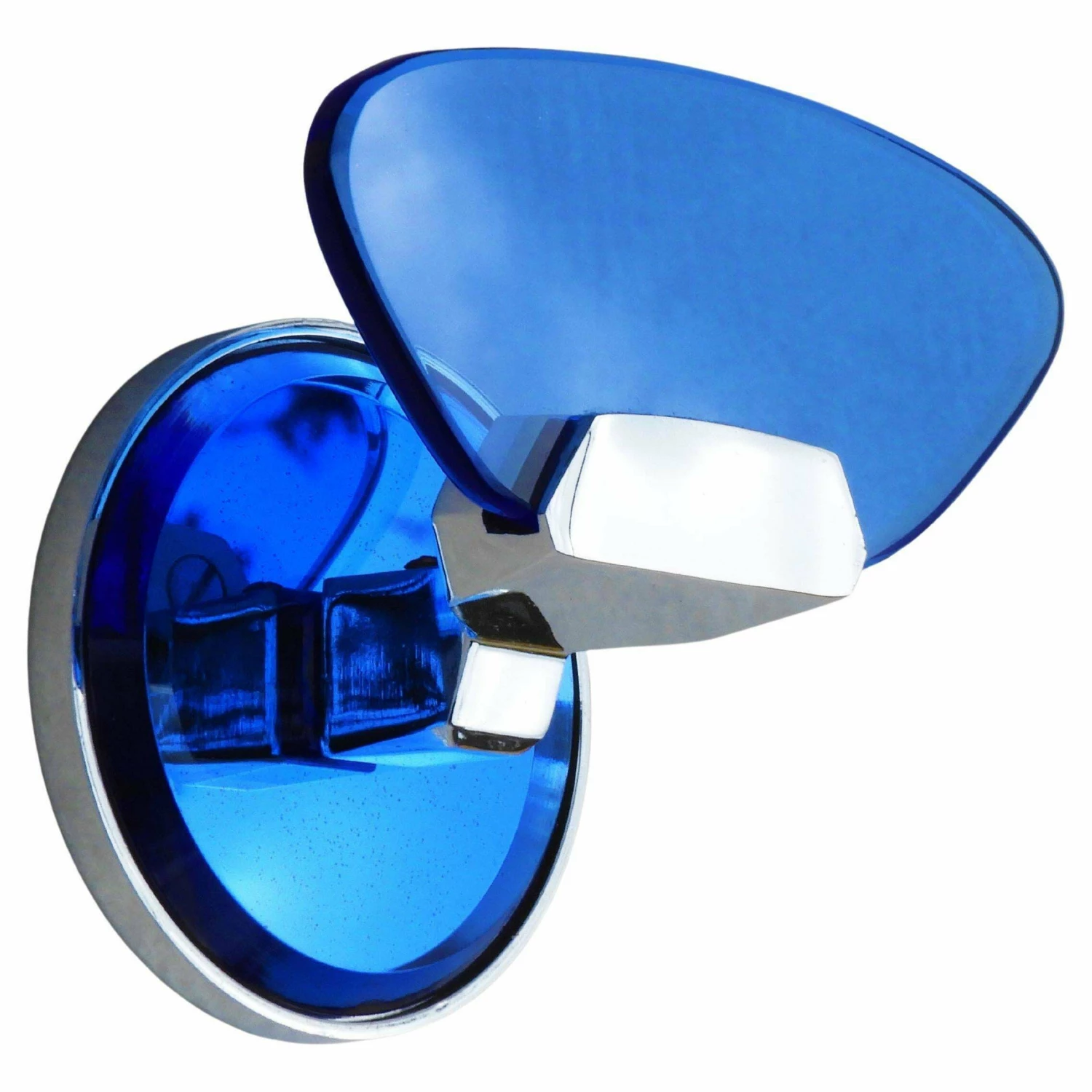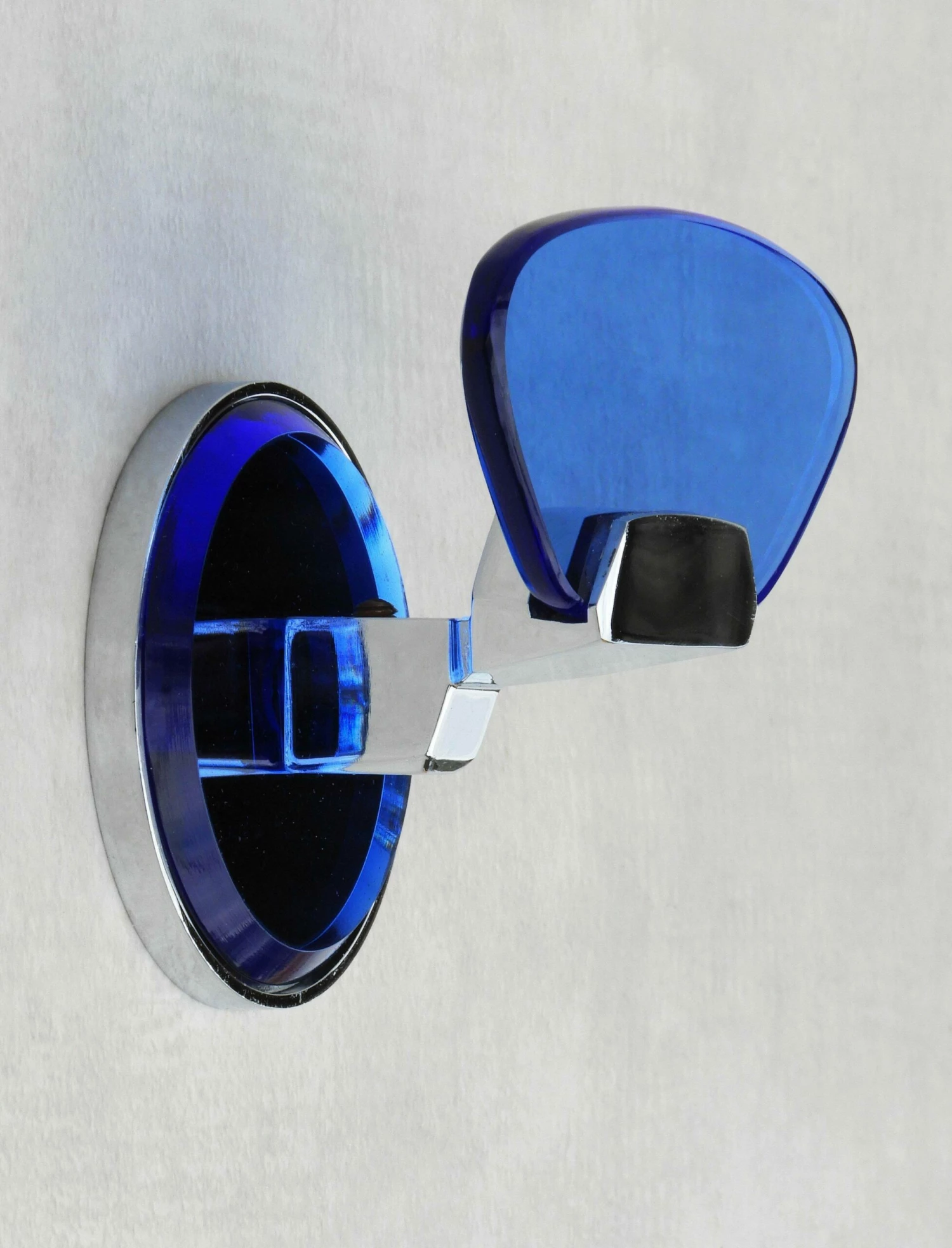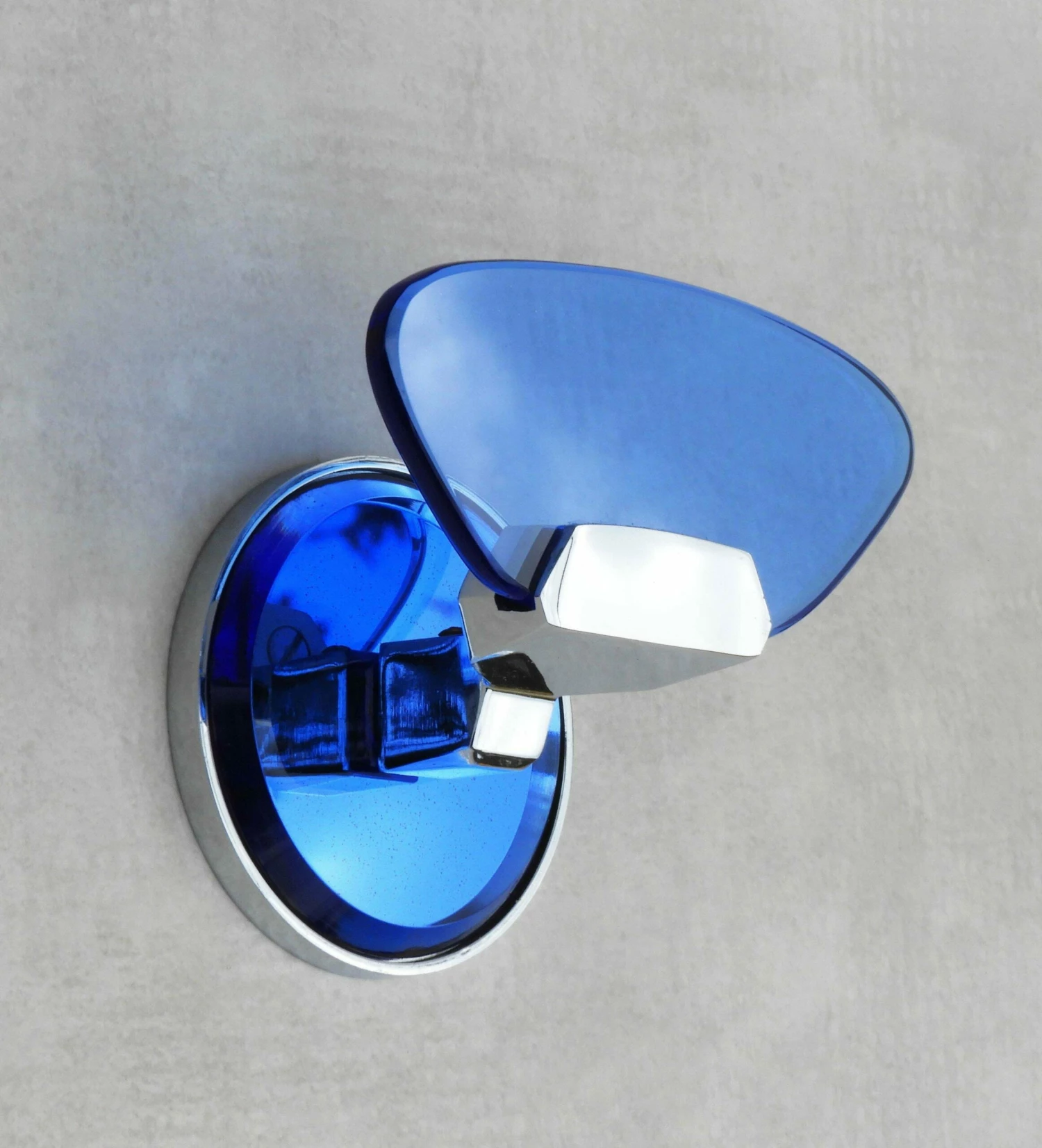 Italian design coat hooks from Veca C1970. Attractive blue glass on a chromed frame with a mirrored back plate. Part of a selection of accessories and wall lights available in the same style – please see our other listings.