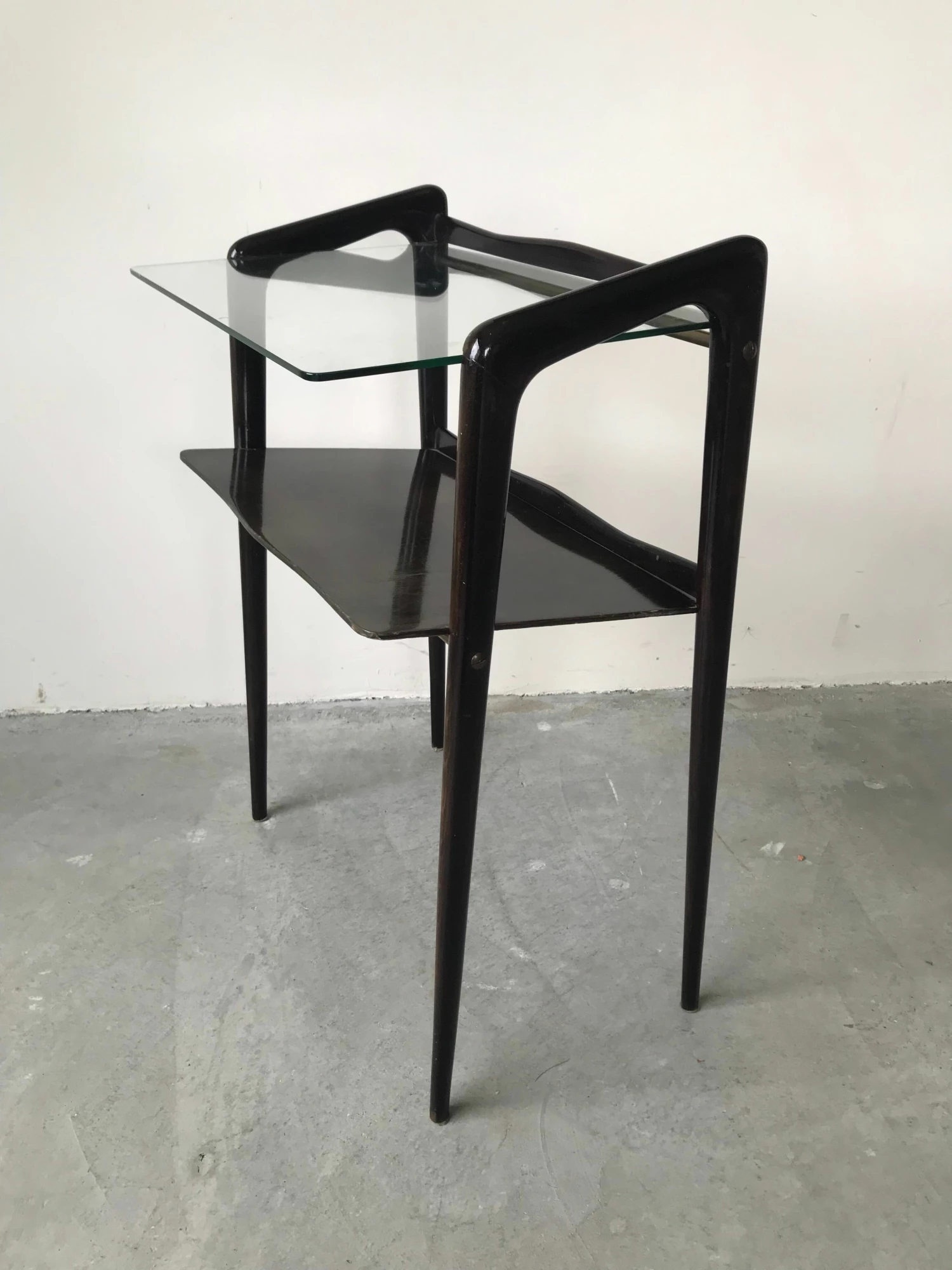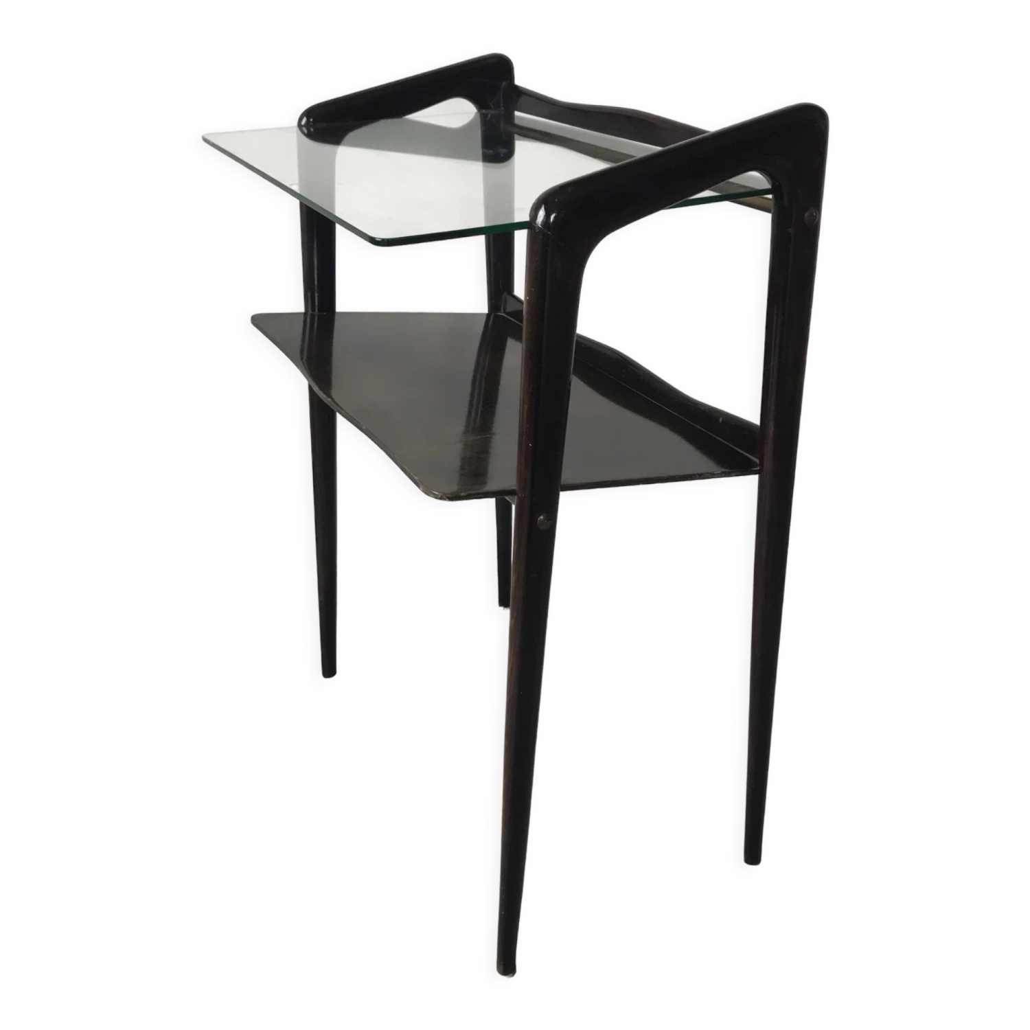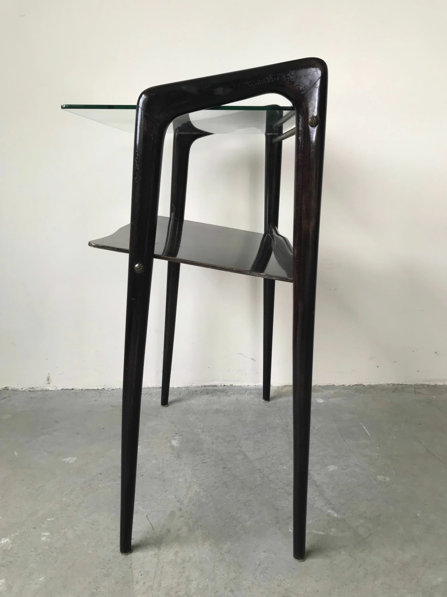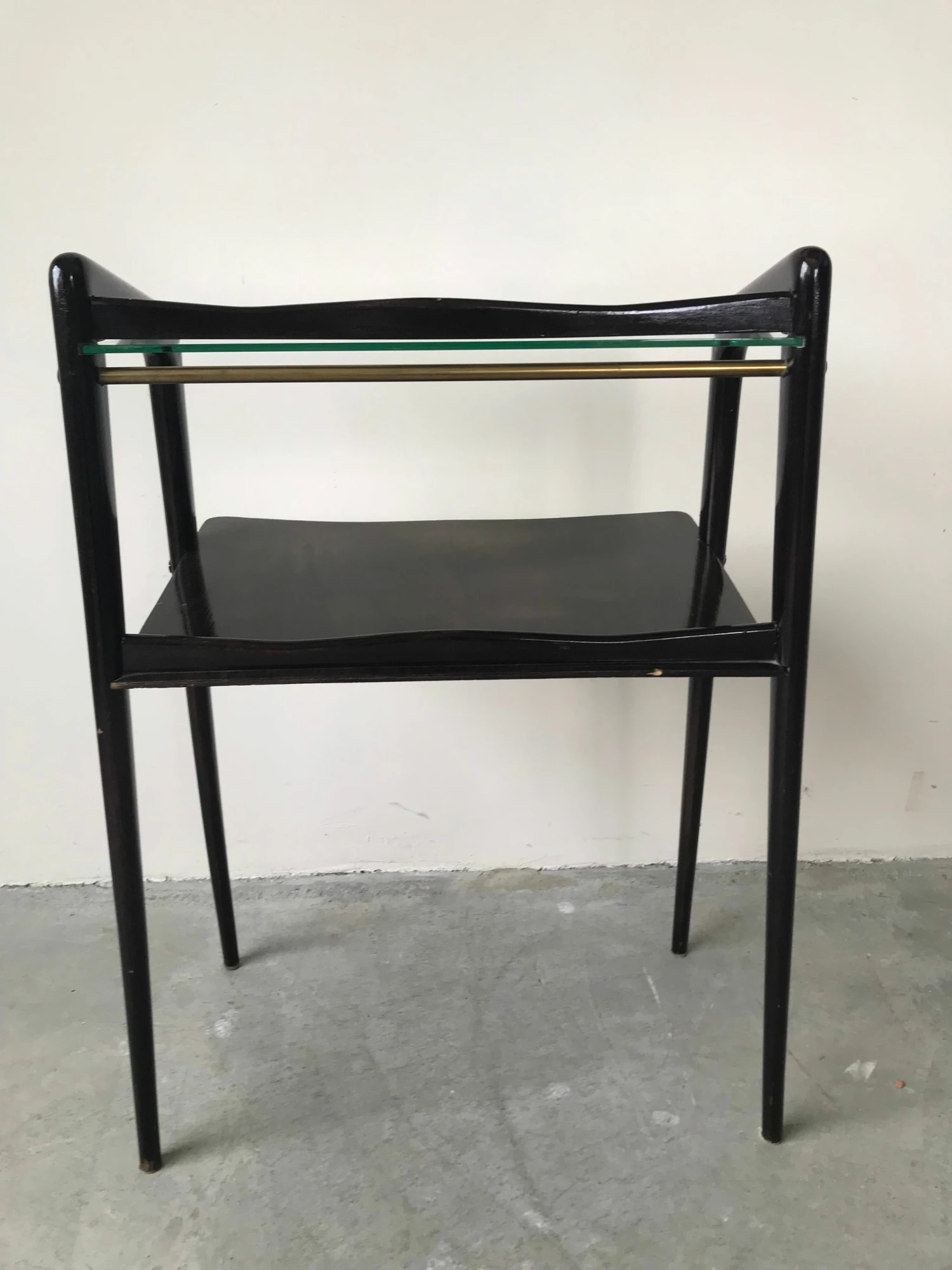 Small side table or magazine rack in black wood, brass and glass in the style of ico parisi in the 1950s. Slight signs of wear.