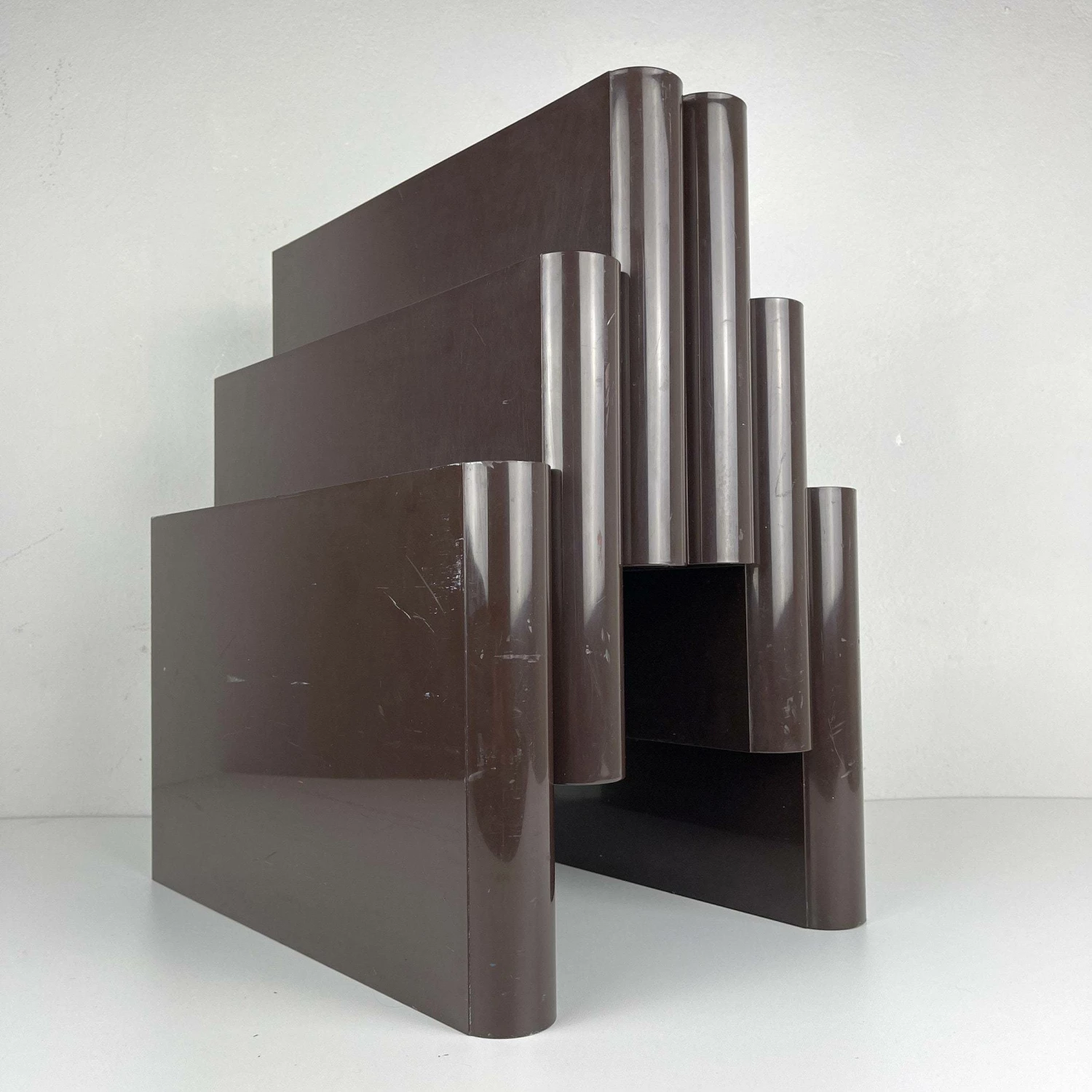 KARTELL brown magazine rack with 6 compartments by Giotto Stoppino for Kartell model 4675 Italy 1970s