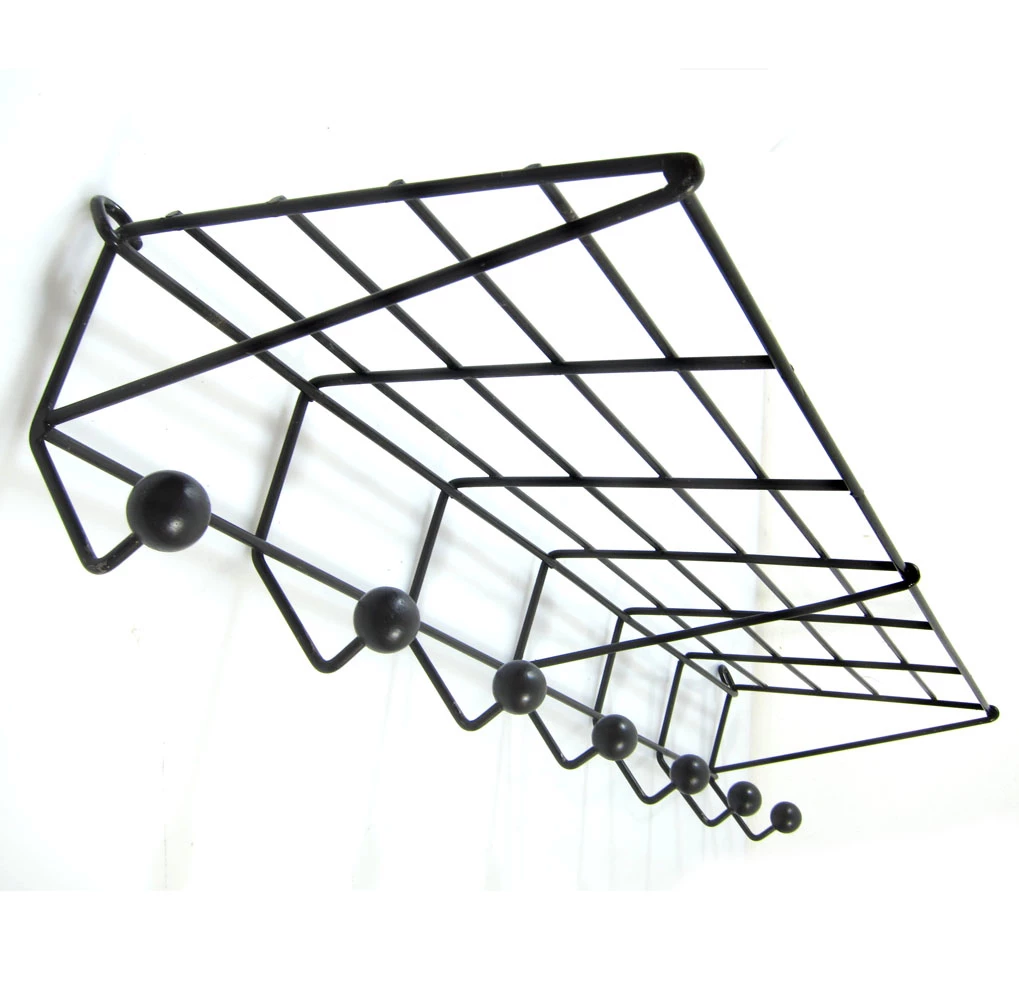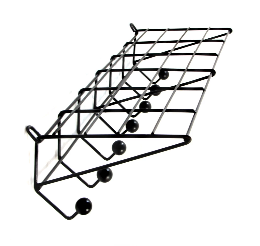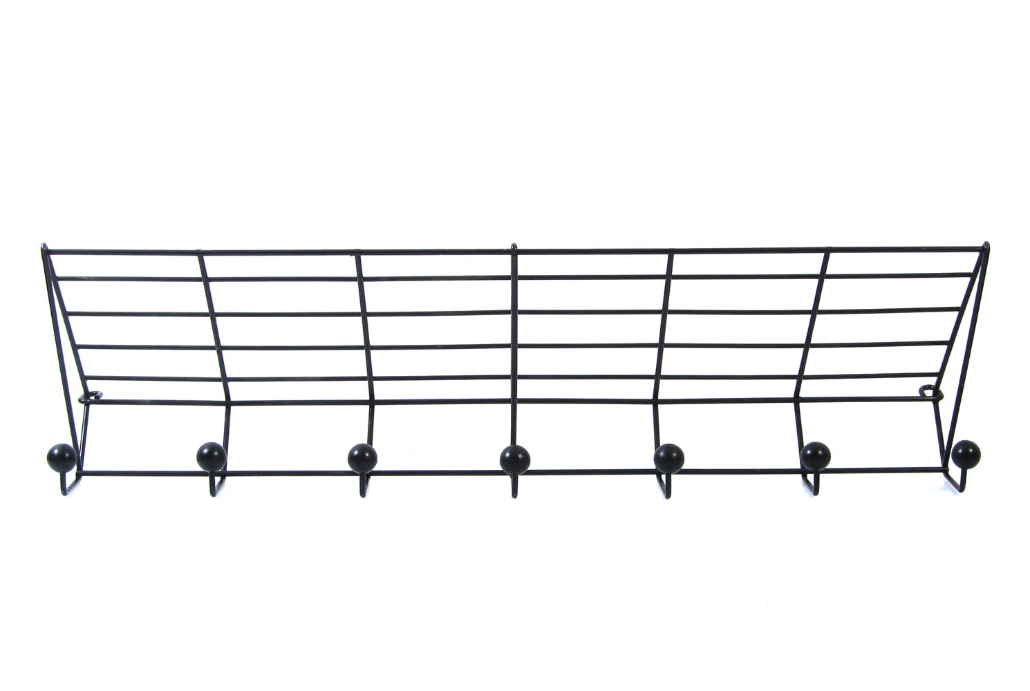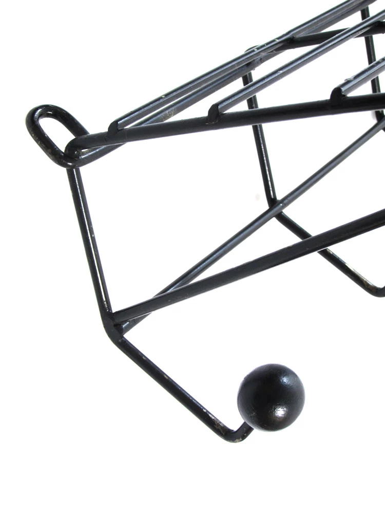Large black industrial coat rack model DH05 designed by Friso Kramer. Manufactured by ‘t Spectrum, Holland in 1956. Black enamelled metal wire frame with black painted wooden coat knobs.
