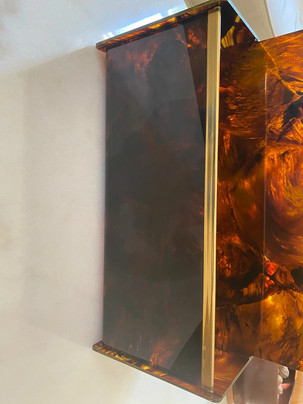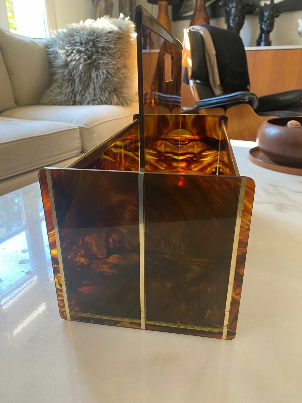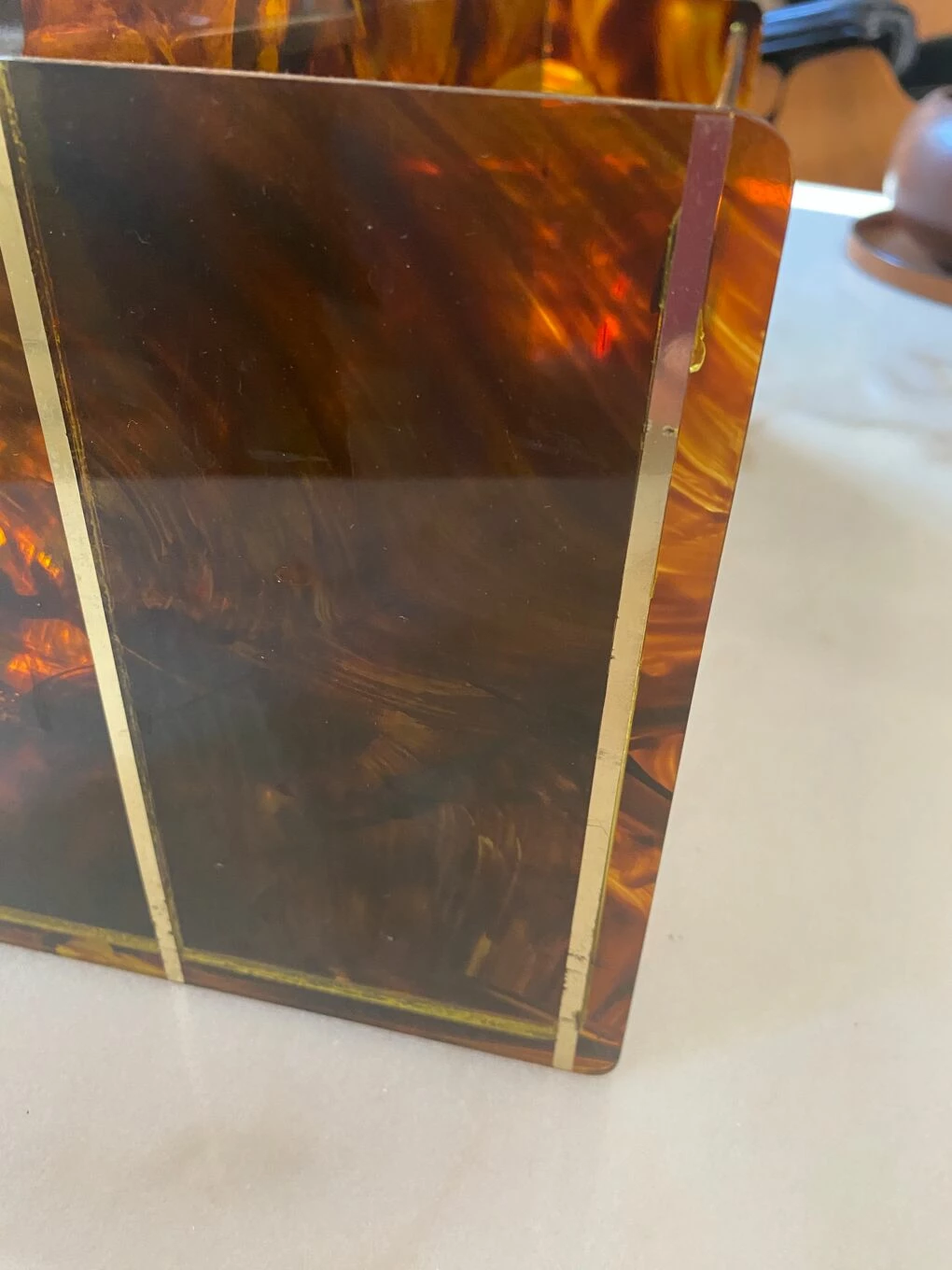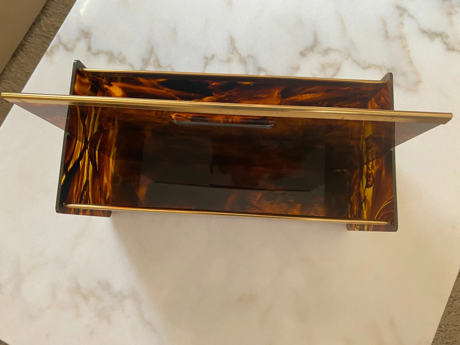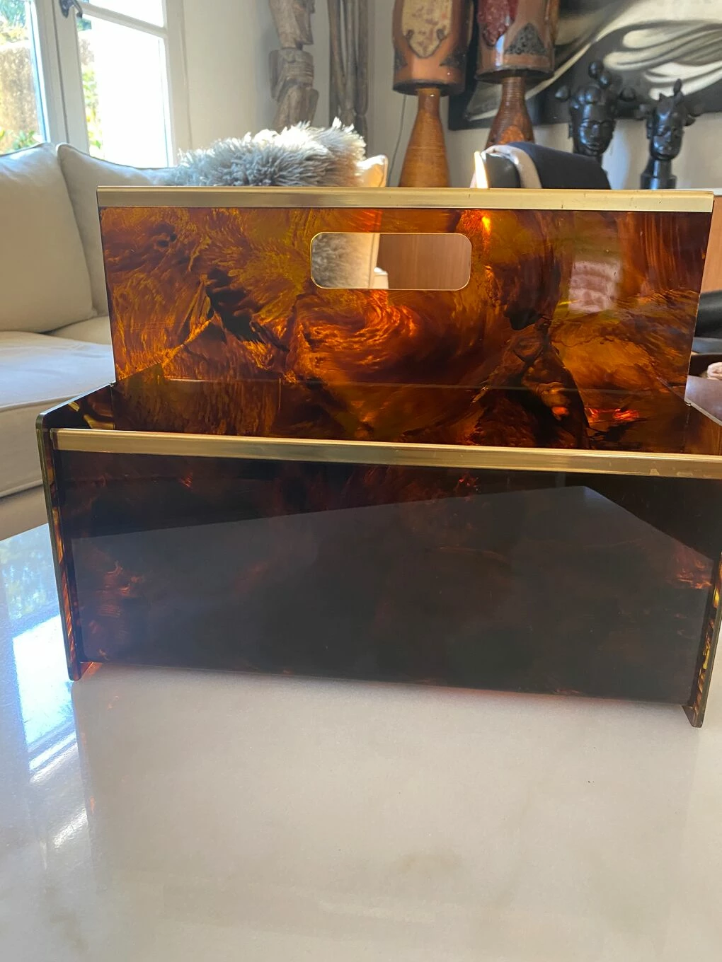 Maison Mercier Paris Magazine Rack In Lucite Tortoiseshell And Brass, 1970
