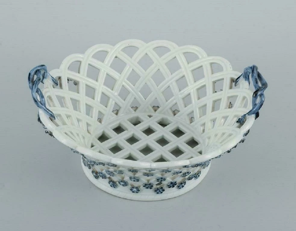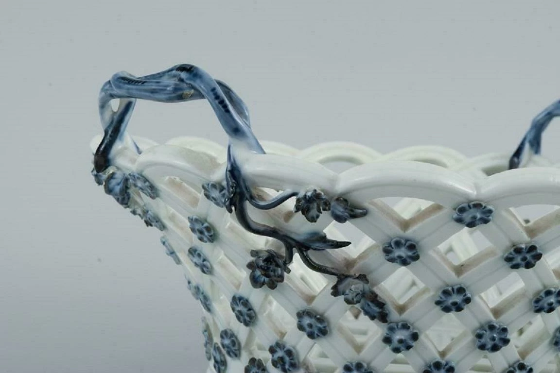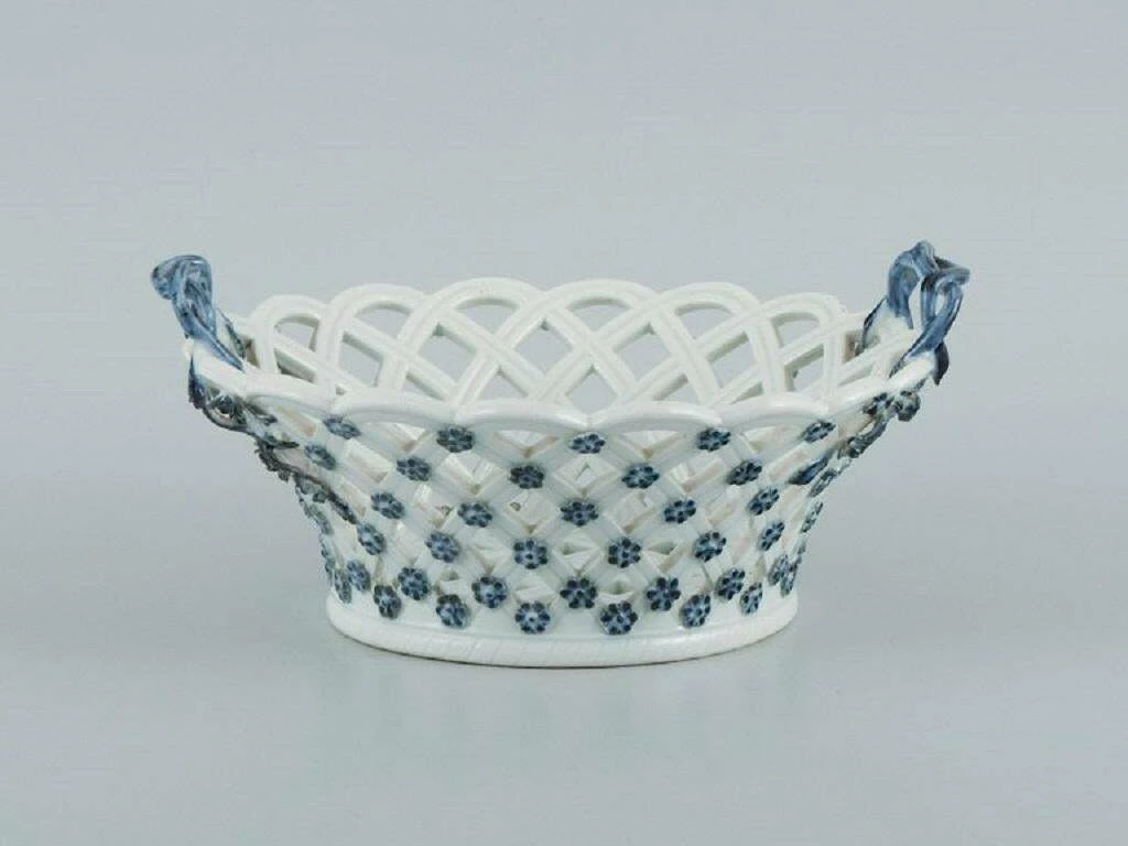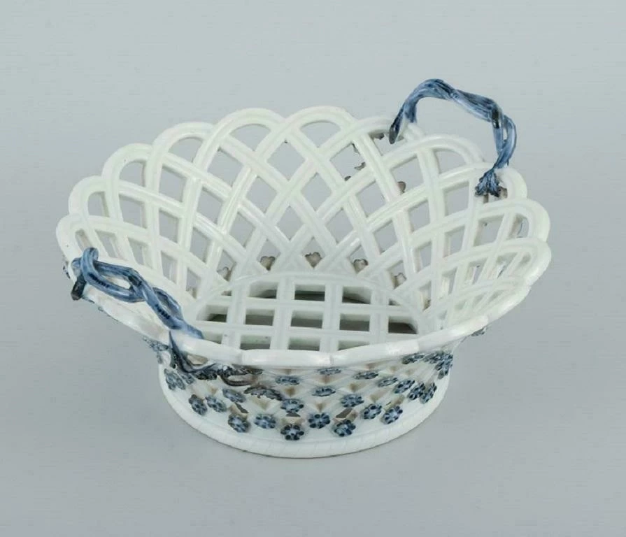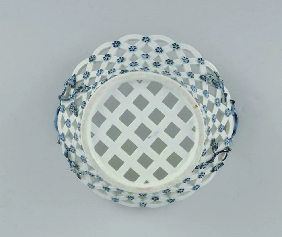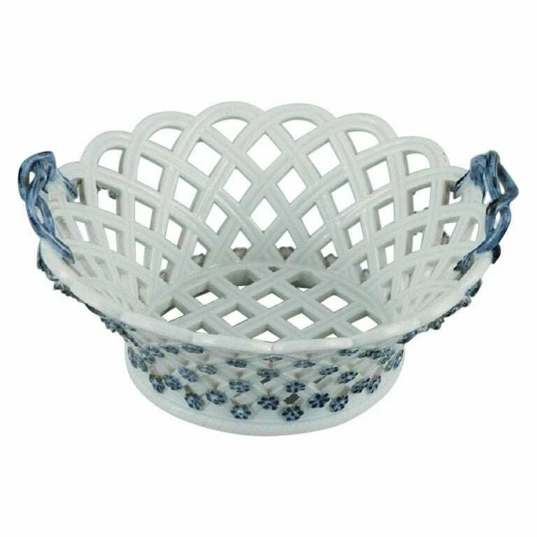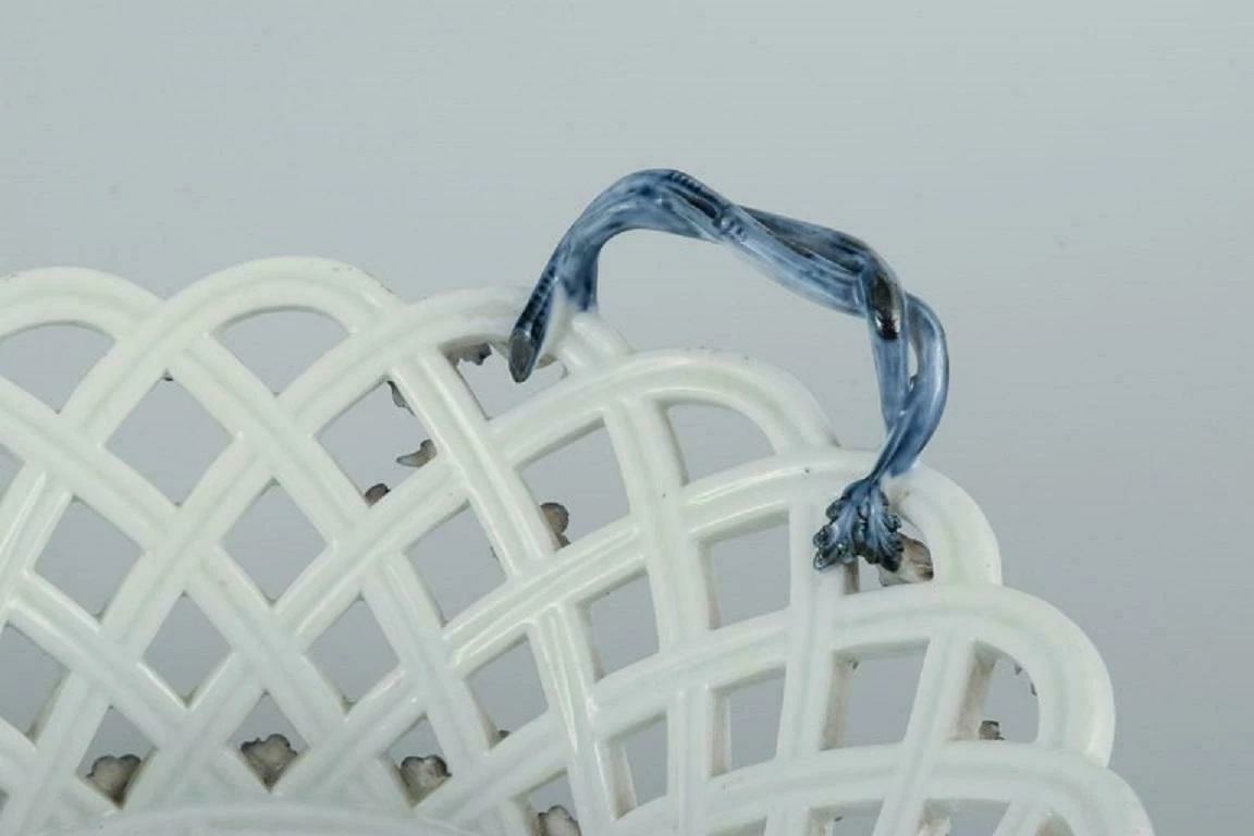 Rare and early Meissen bowl with pierced rim, handles in the form of branches, foliage and moulded flowers.