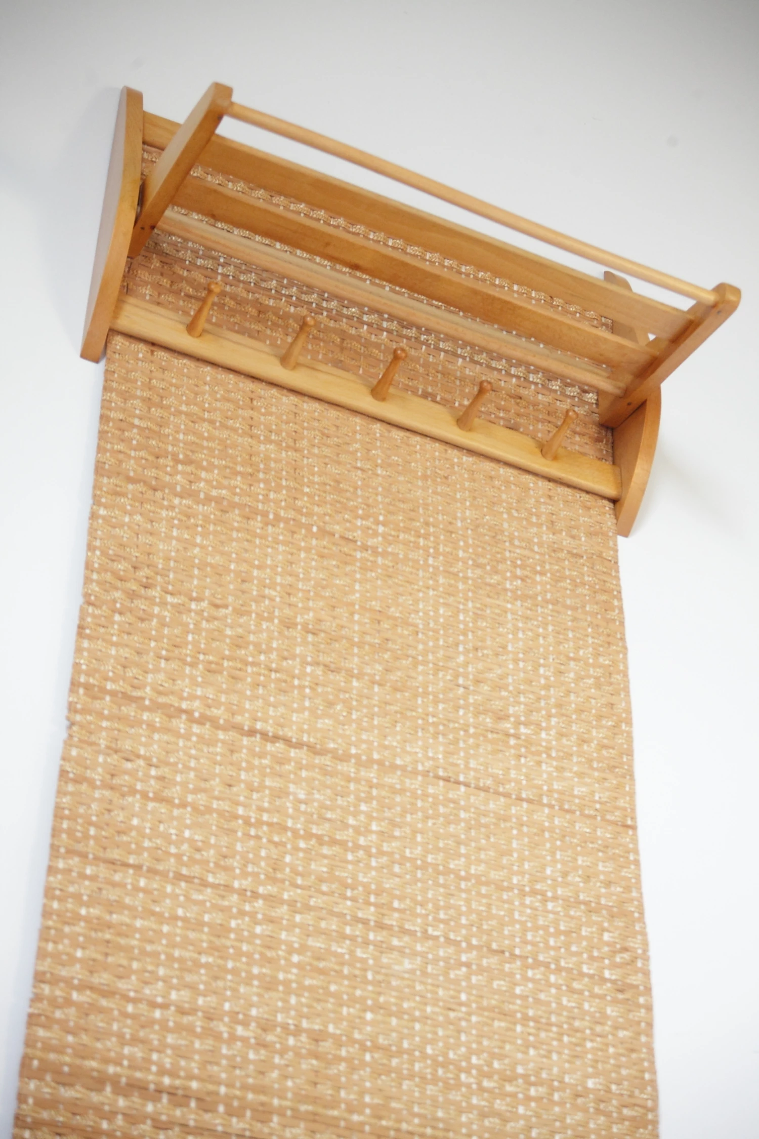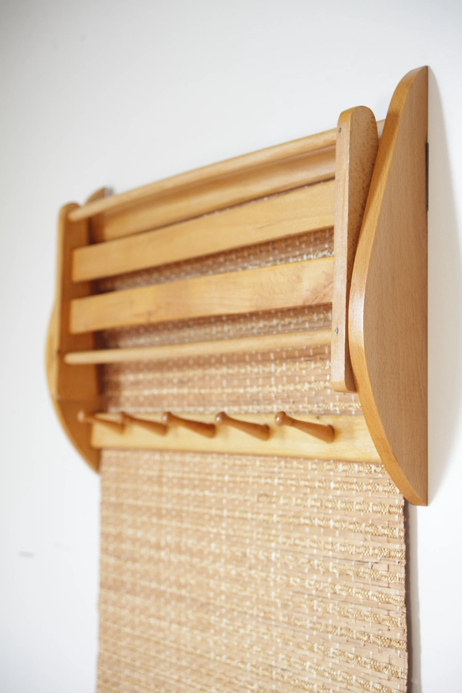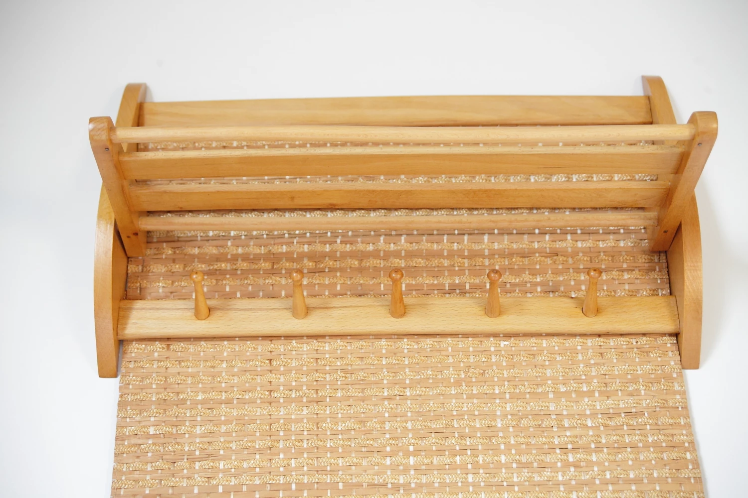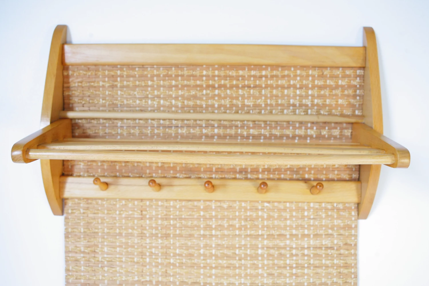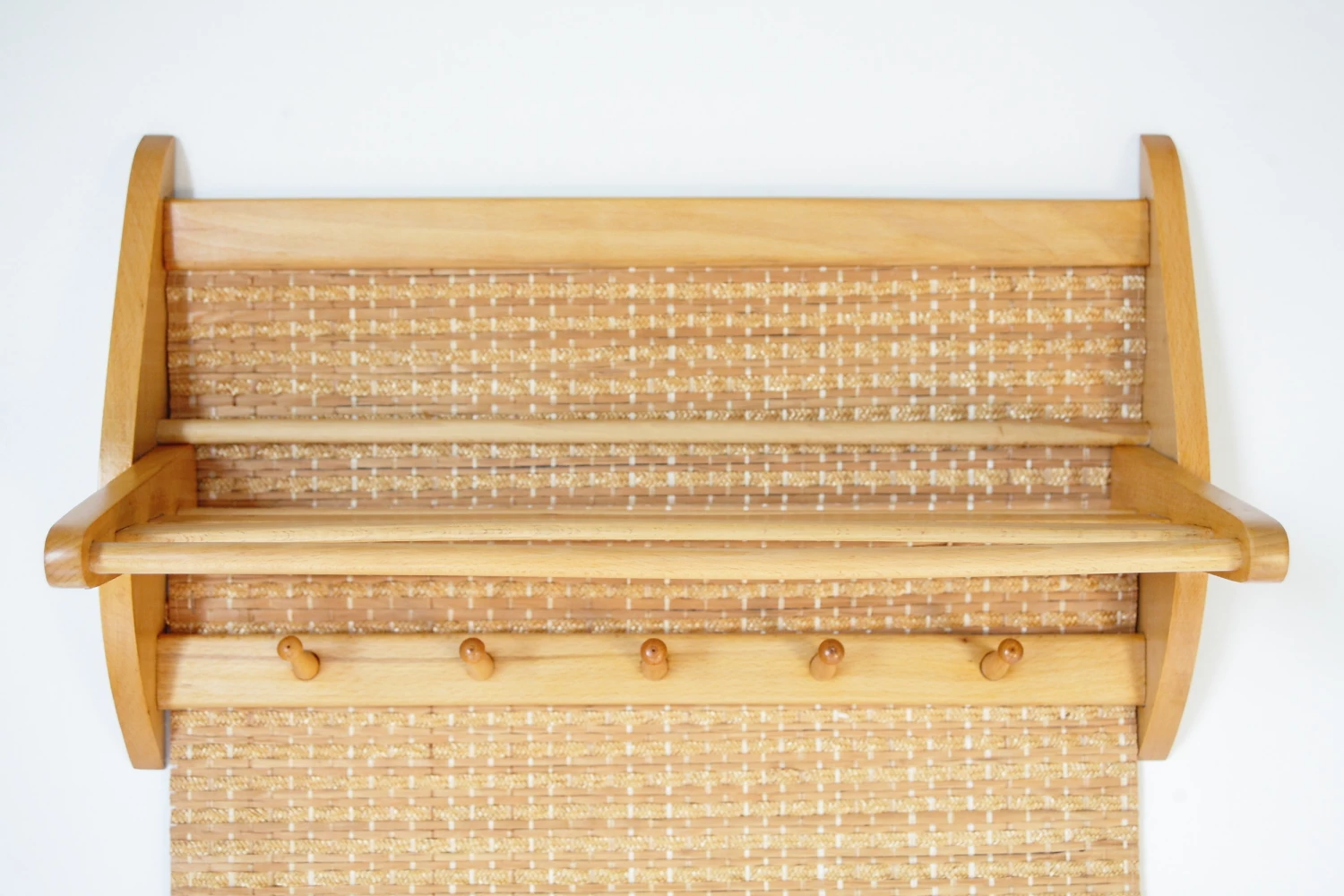 Mid Century Czechoslovakian Beech Wall Coat Rack With Raffia From Interier Praha, 1960s