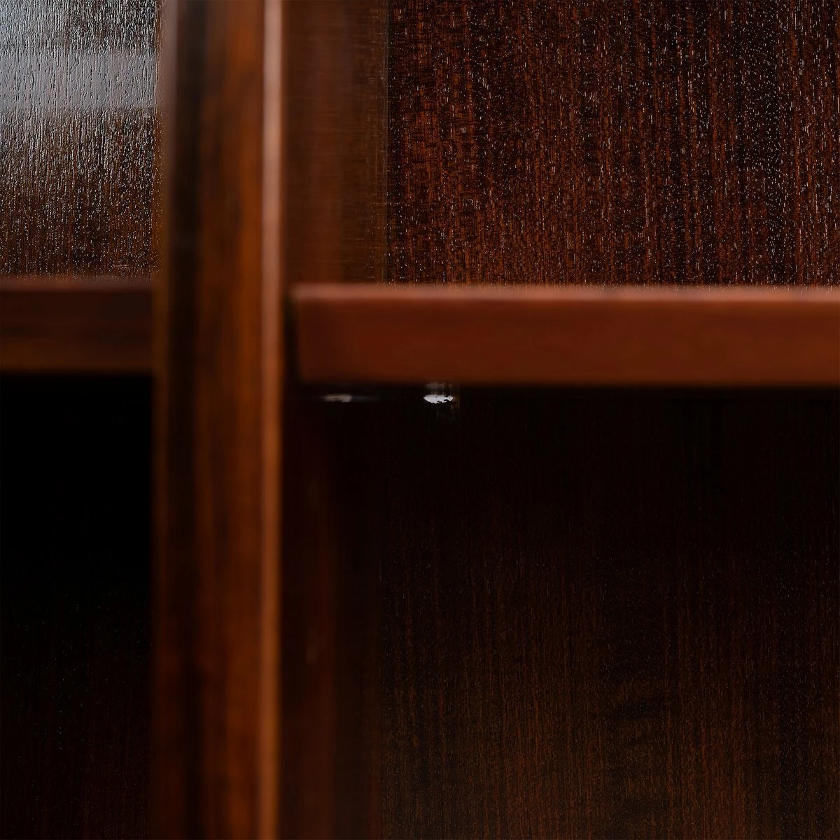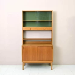 This bookcase is in very good vintage condition and has a total of 4 height-adjustable shelves. The previous owner made a hole in the bottom right of the rear wall probably for the cable of stereo equipment. But the shelf is actually almost completely in front of the hole. It’s also only visible when you lie down on the floor 😉