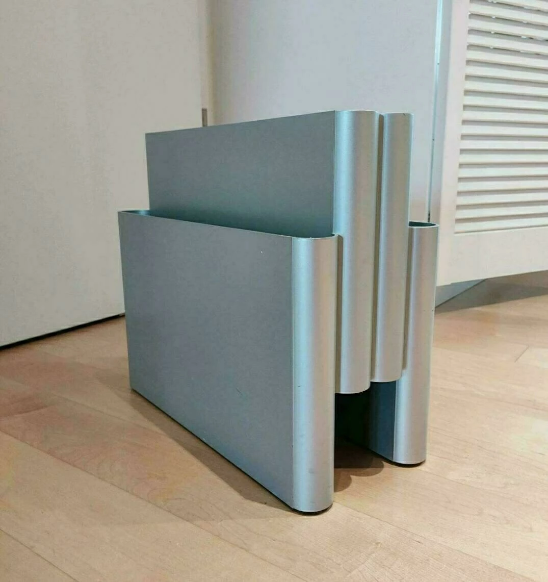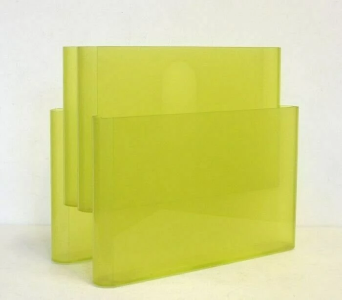 Minimalist magazine rack by Giotto Stoppino for Kartell. Italy, 1972. Made of plastic (ABS). This is the large edition with 4 compartments. This is the original from 1972 no. 4676