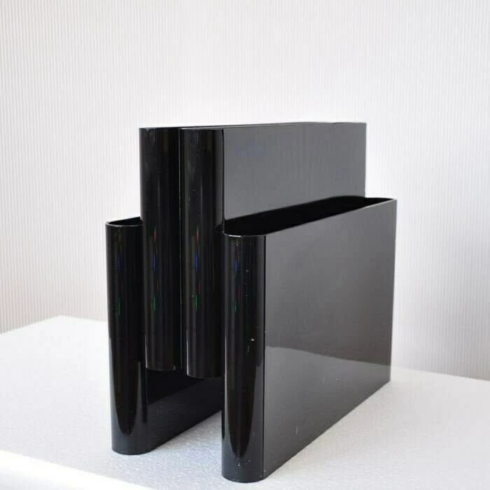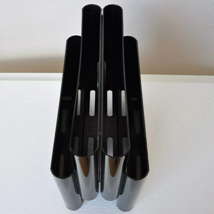 Mid-Century Modern Black Magazine Rack with 4 Compartments by Giotto Stoppino for Kartell, 1970s model 4676 made in italy