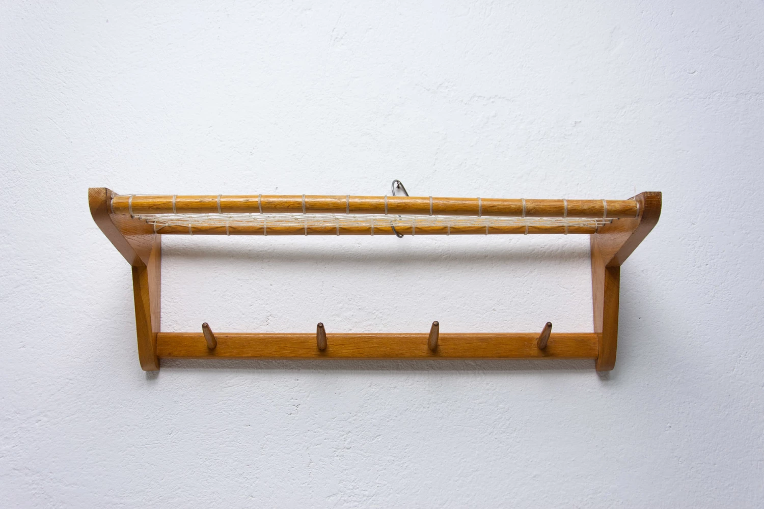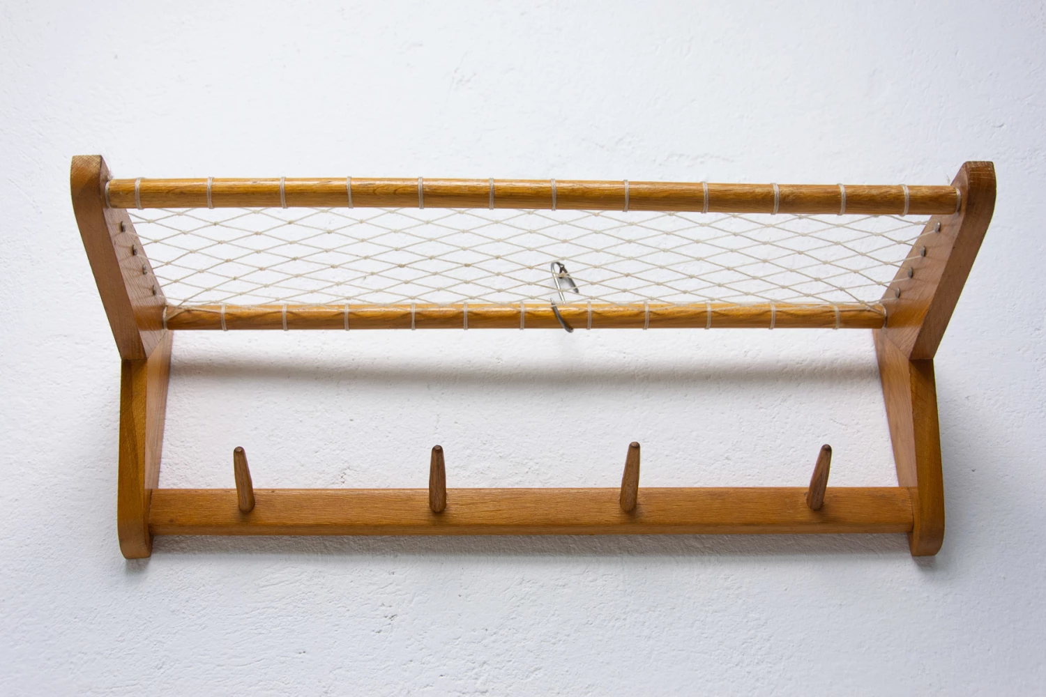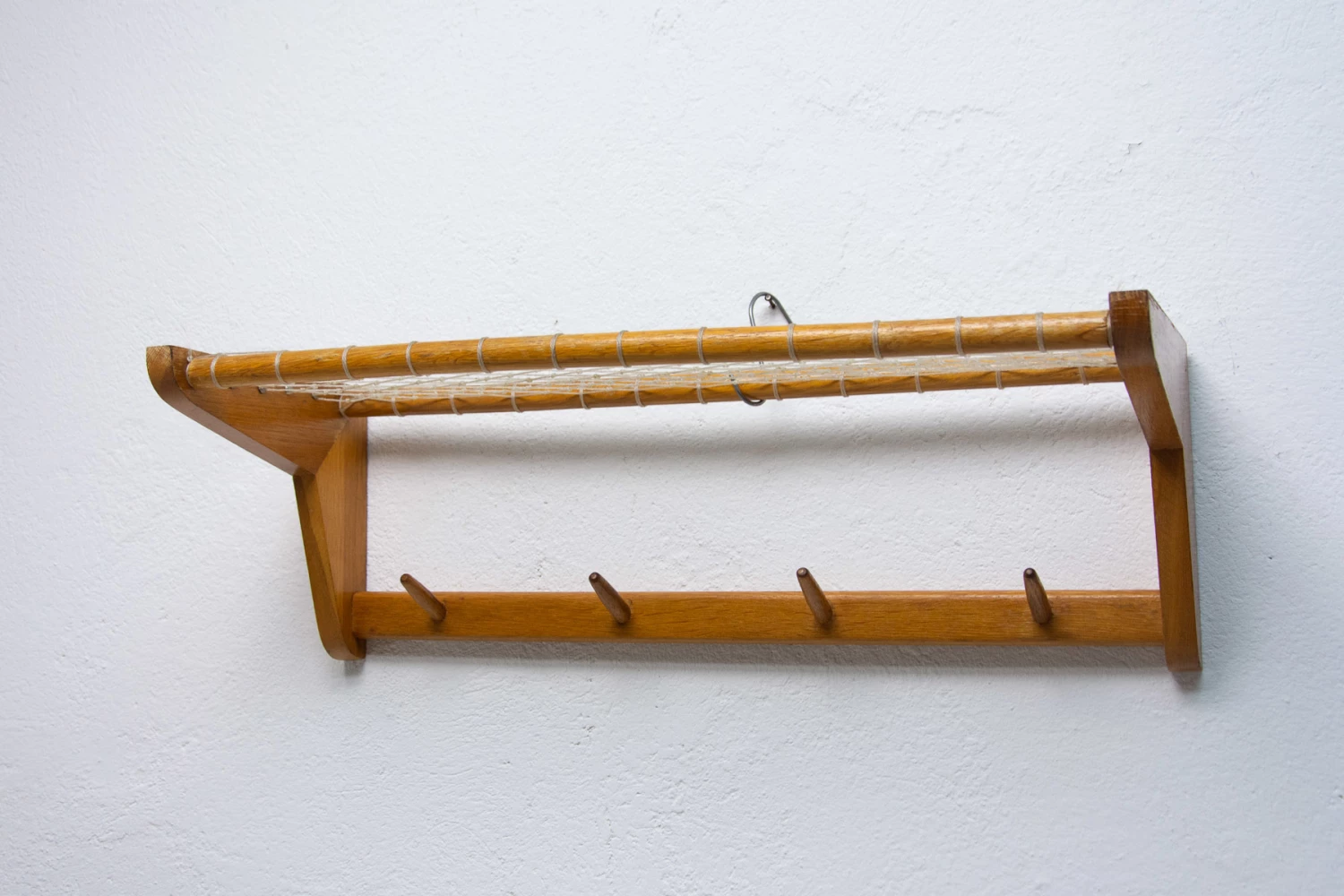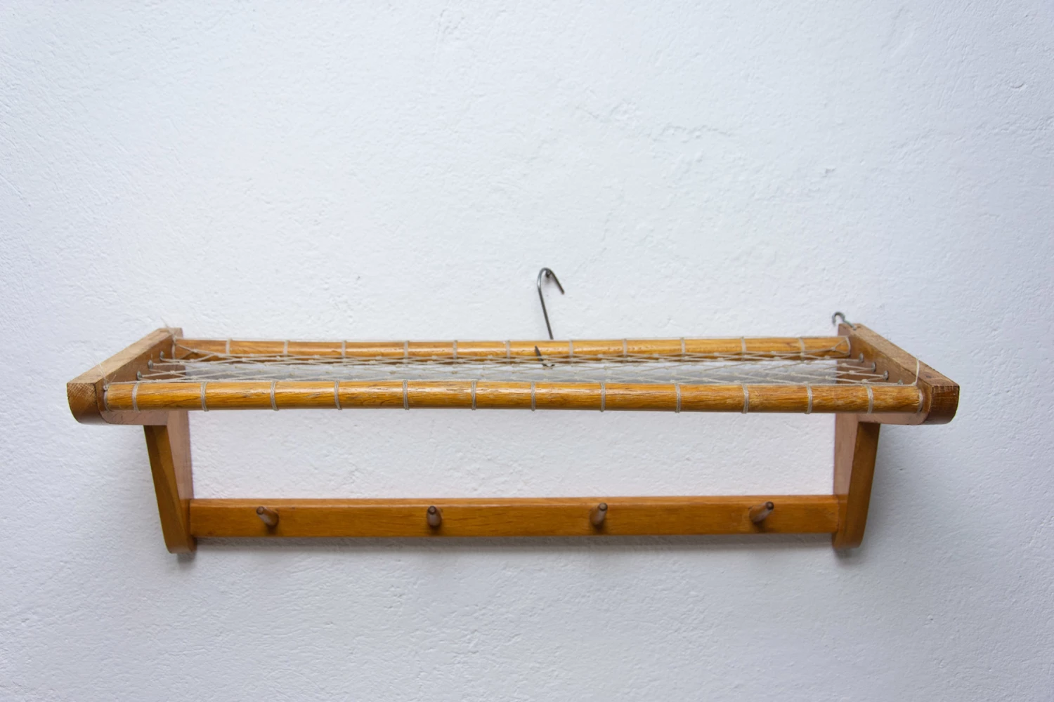 Vintage Wall shelf, made in the former Czechoslovakia in the 1960´s. It was produced by Krásná Jizba company. It’s made of beech wood and an intertwined upper part.