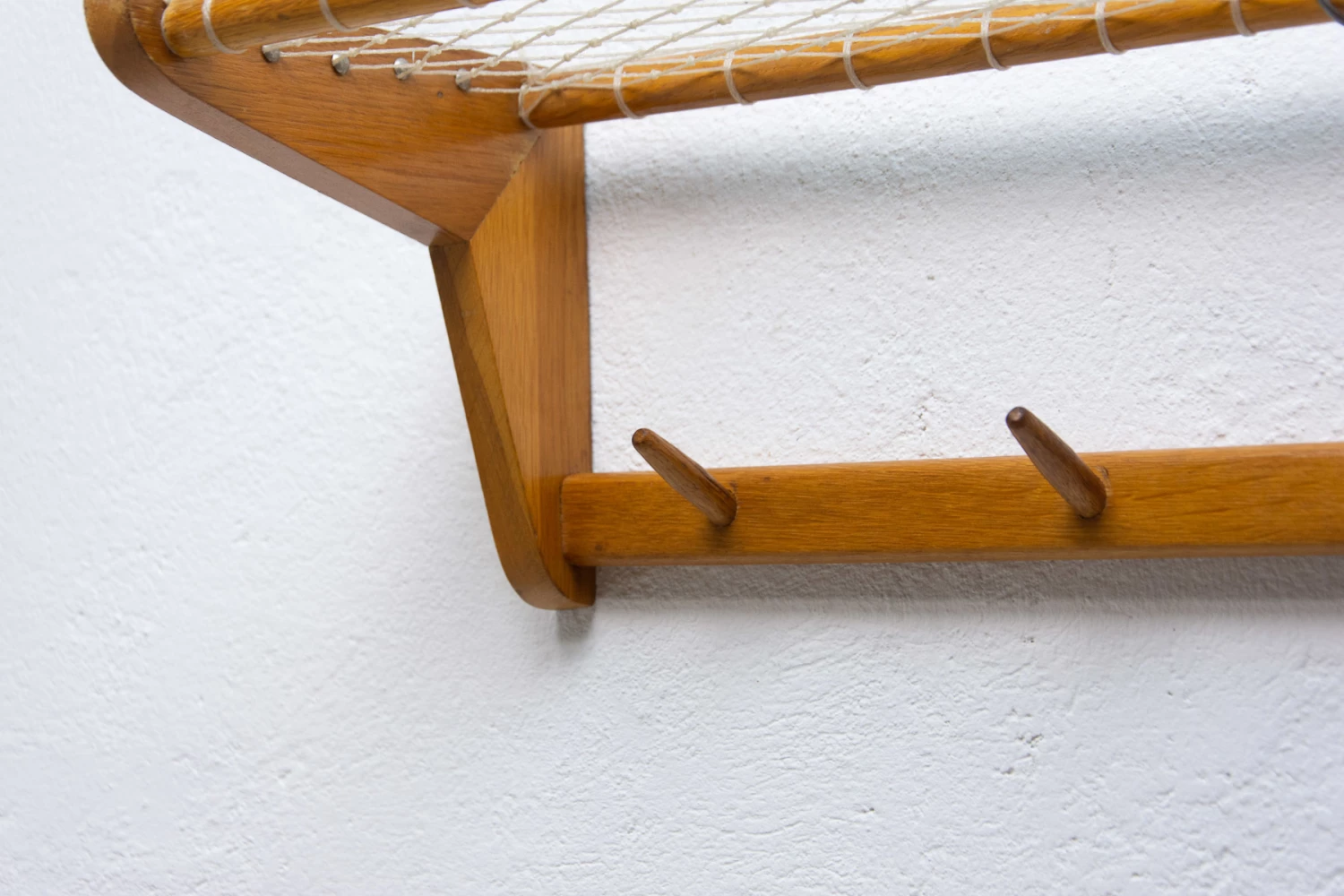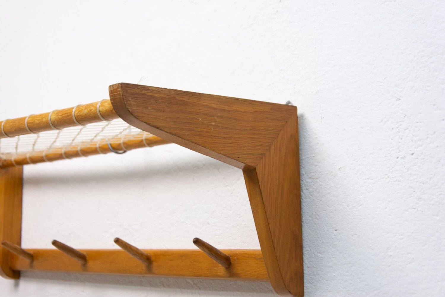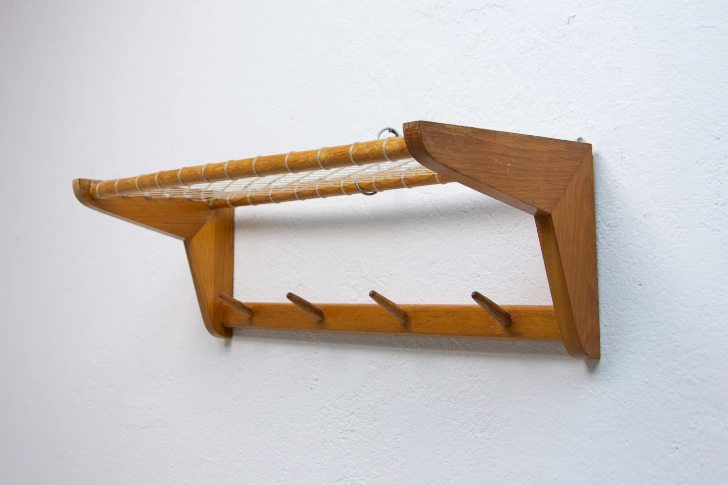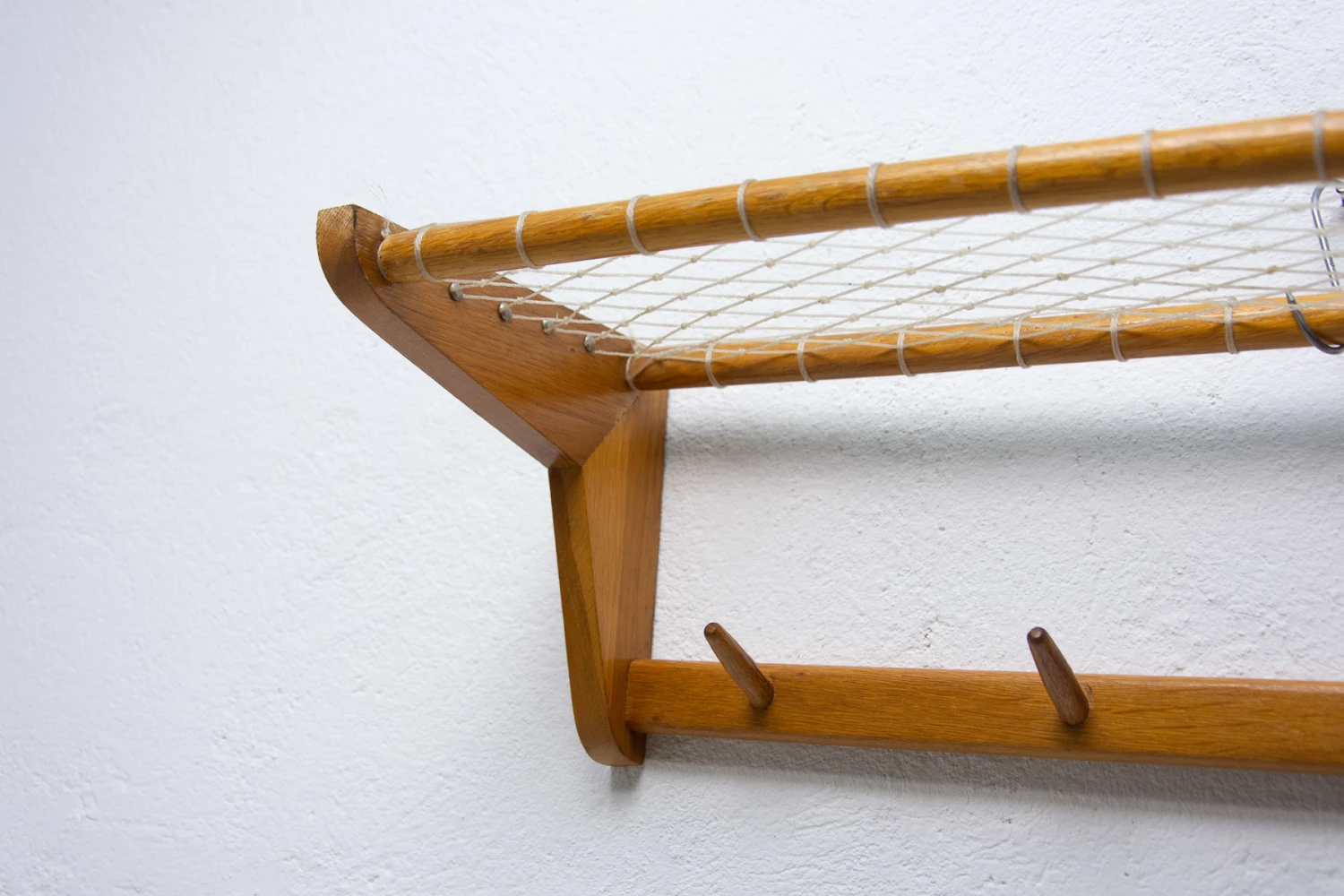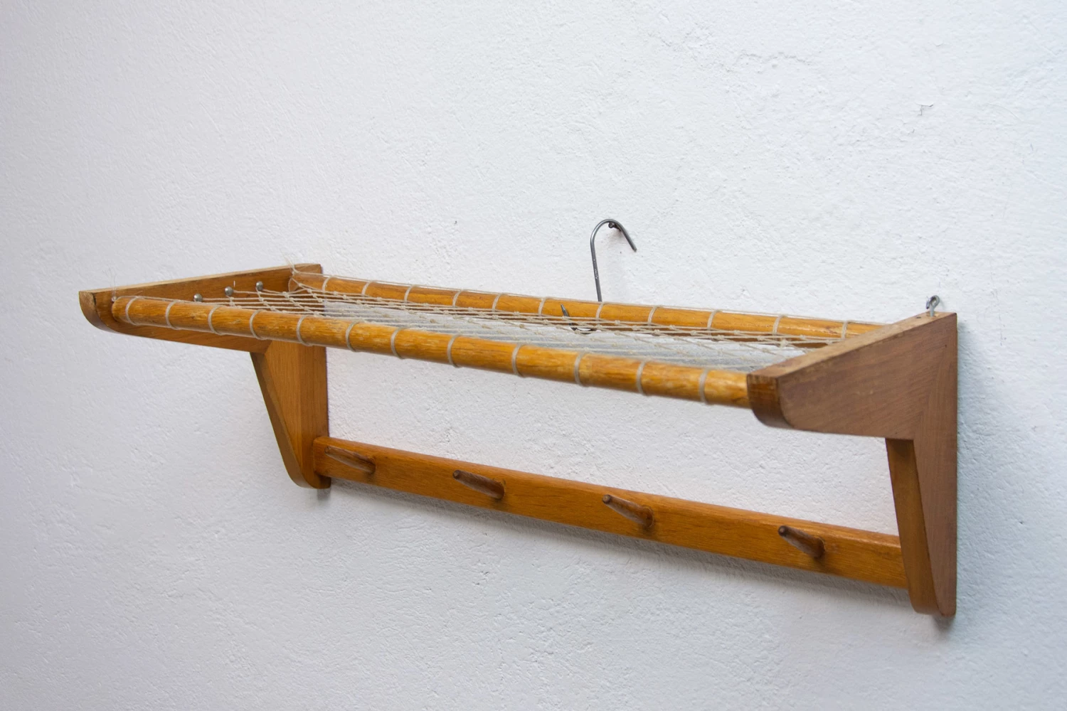 Vintage Wall shelf, made in the former Czechoslovakia in the 1960´s. It was produced by Krásná Jizba company. It’s made of beech wood and an intertwined upper part.