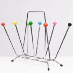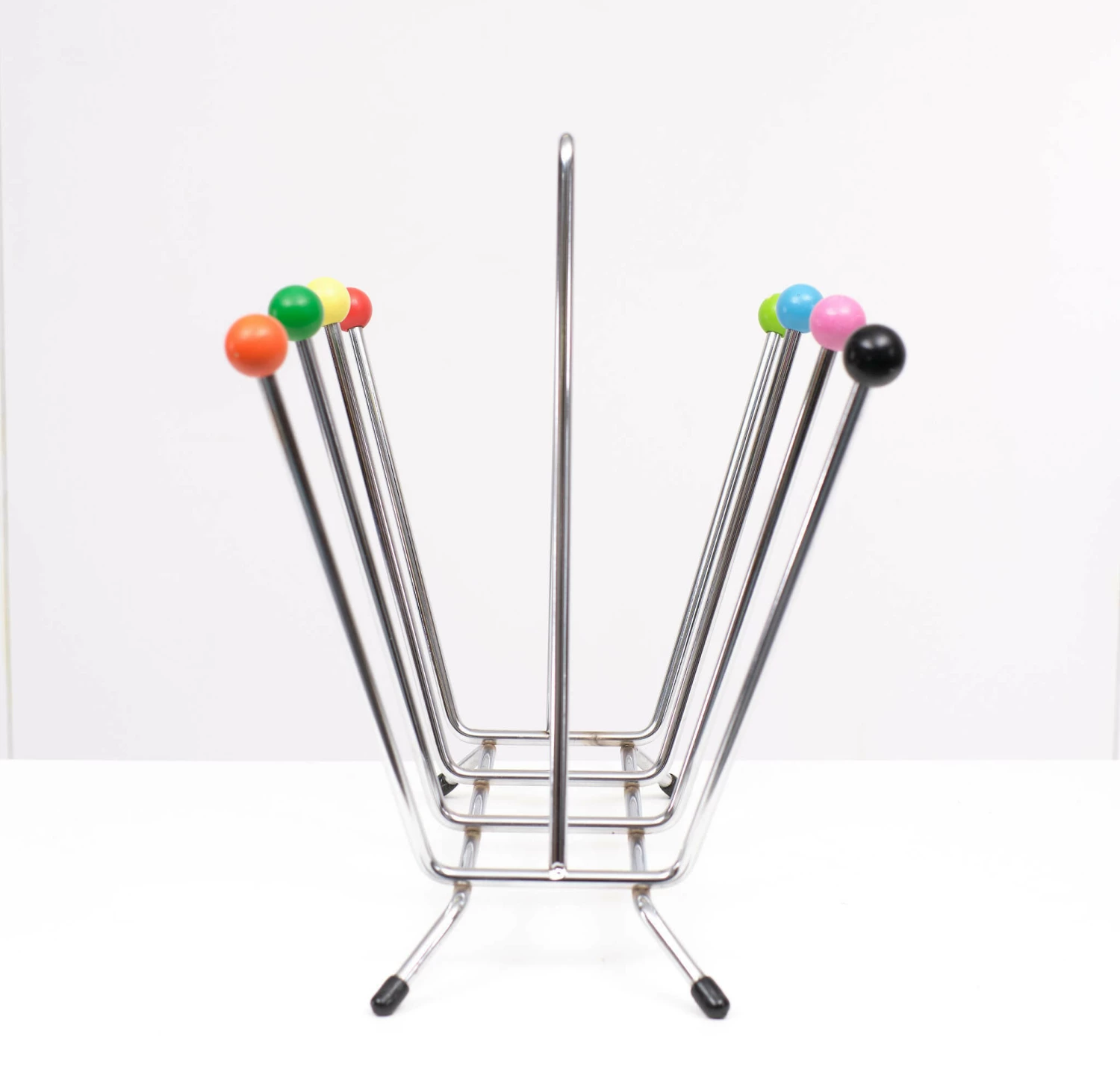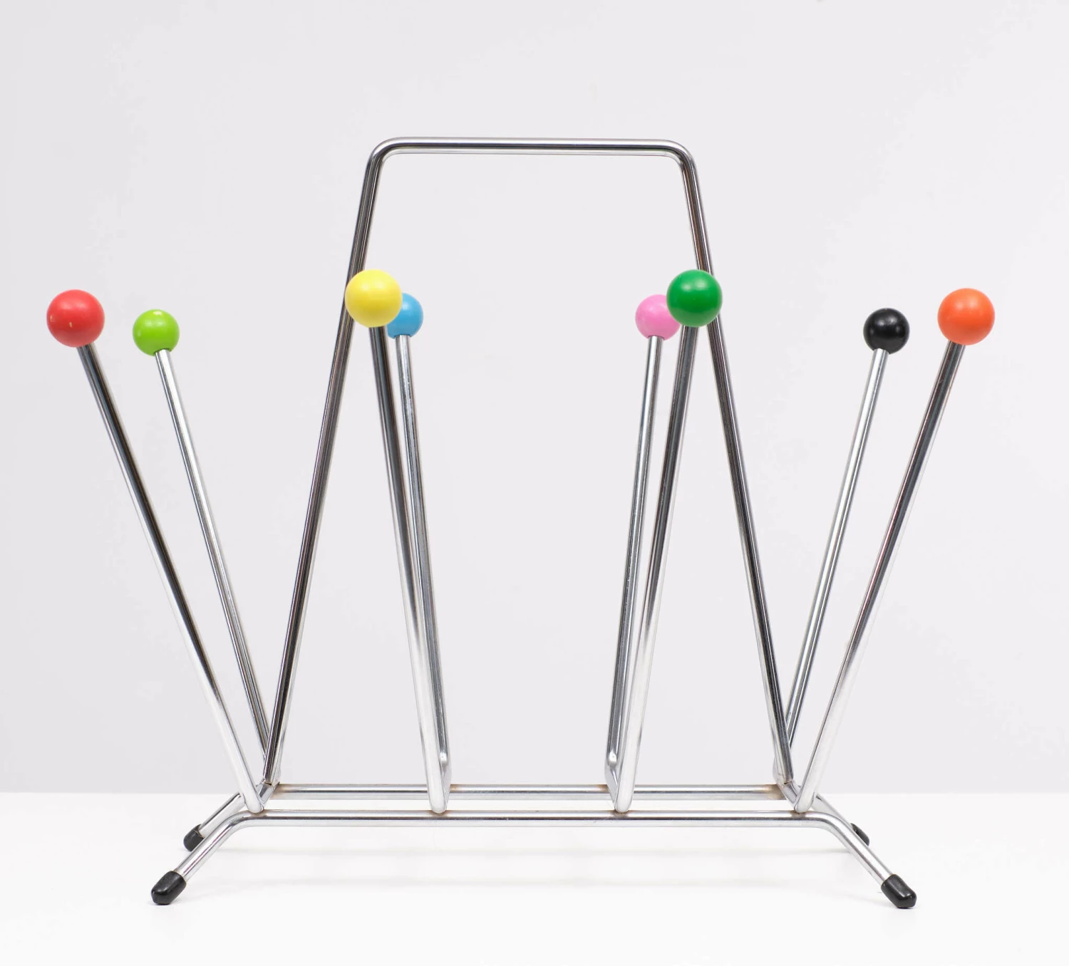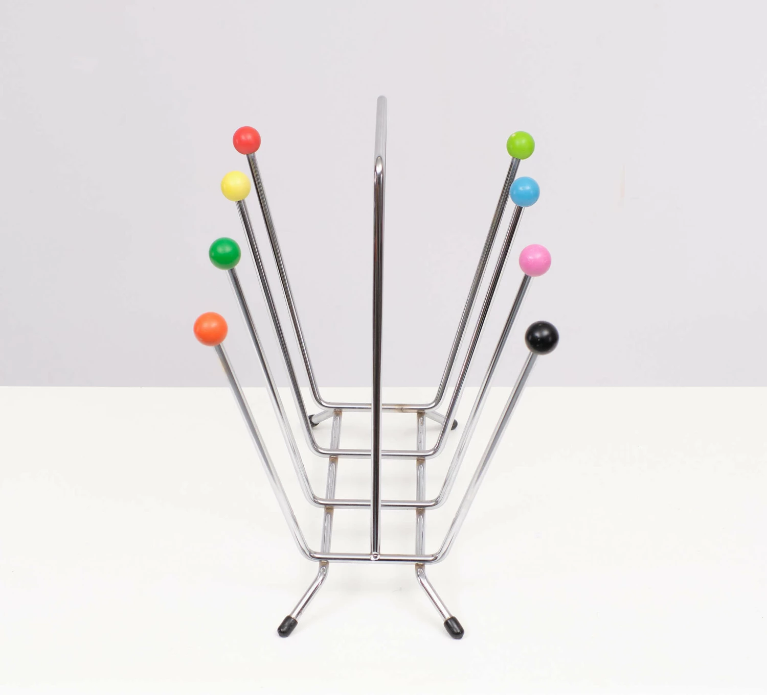 Vintage Space Age magazine rack Charles & Ray Eames, chrome Sputnik atomic newspaper rack, mid century design from the 1960s. Good condition.