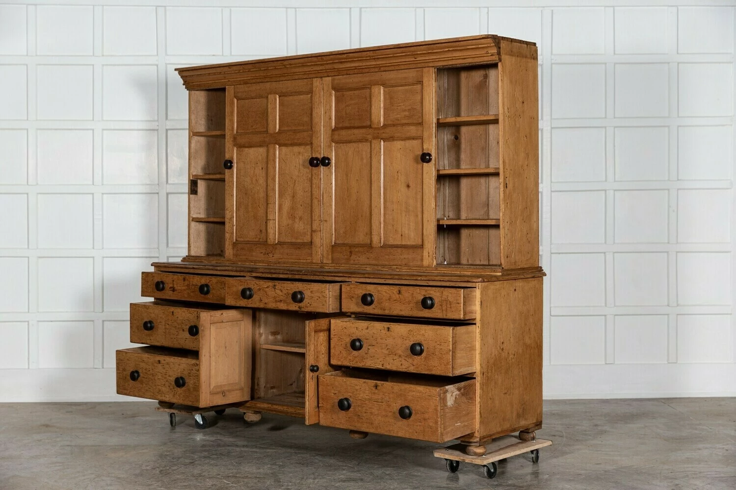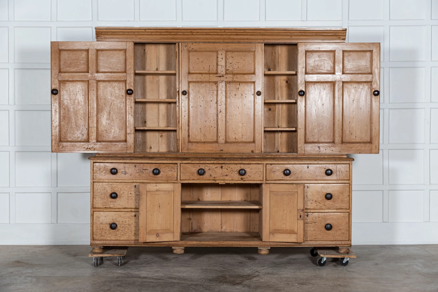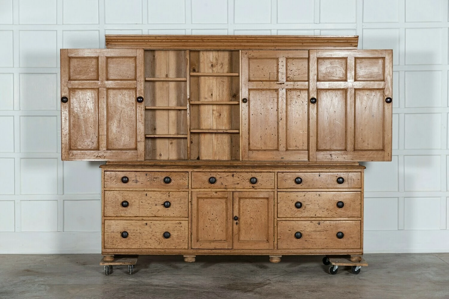 Monumental English Pine Housekeepers Cupboard.