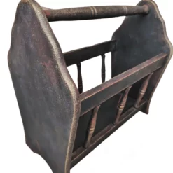 Hand painted pine magazine holder, rack.Painted with Annie Sloan chalk paint in athenian black colour with texture finish.Red and gold dry brushing over edges.Protected with Annie Sloan clear wax.