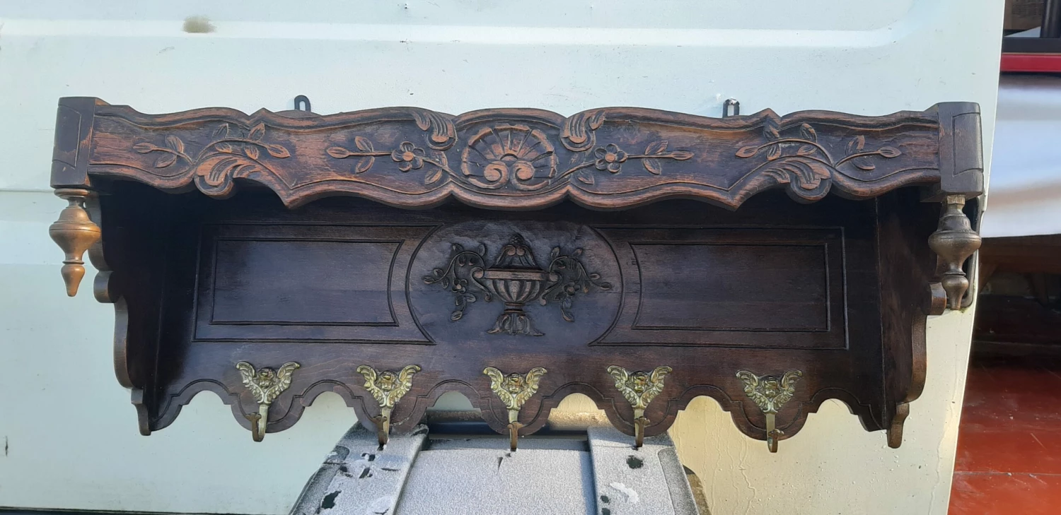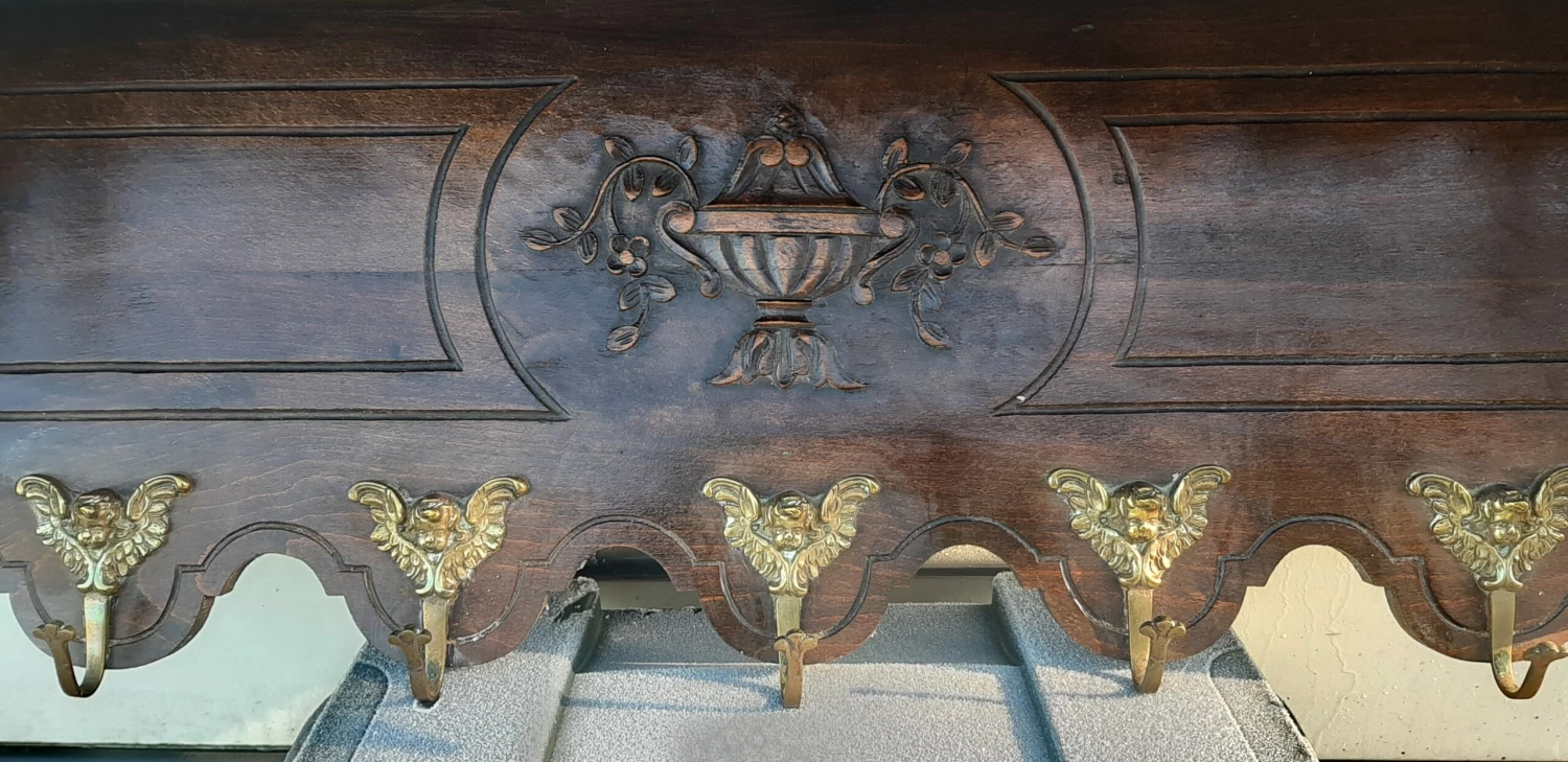 Provençal Coat Rack “Archelle” Hat Rack, 5 Bronze Coat Hooks, Height: 42 cm, length and width: 91 cm by 25 cm, weight: 6 kg, very good condition,