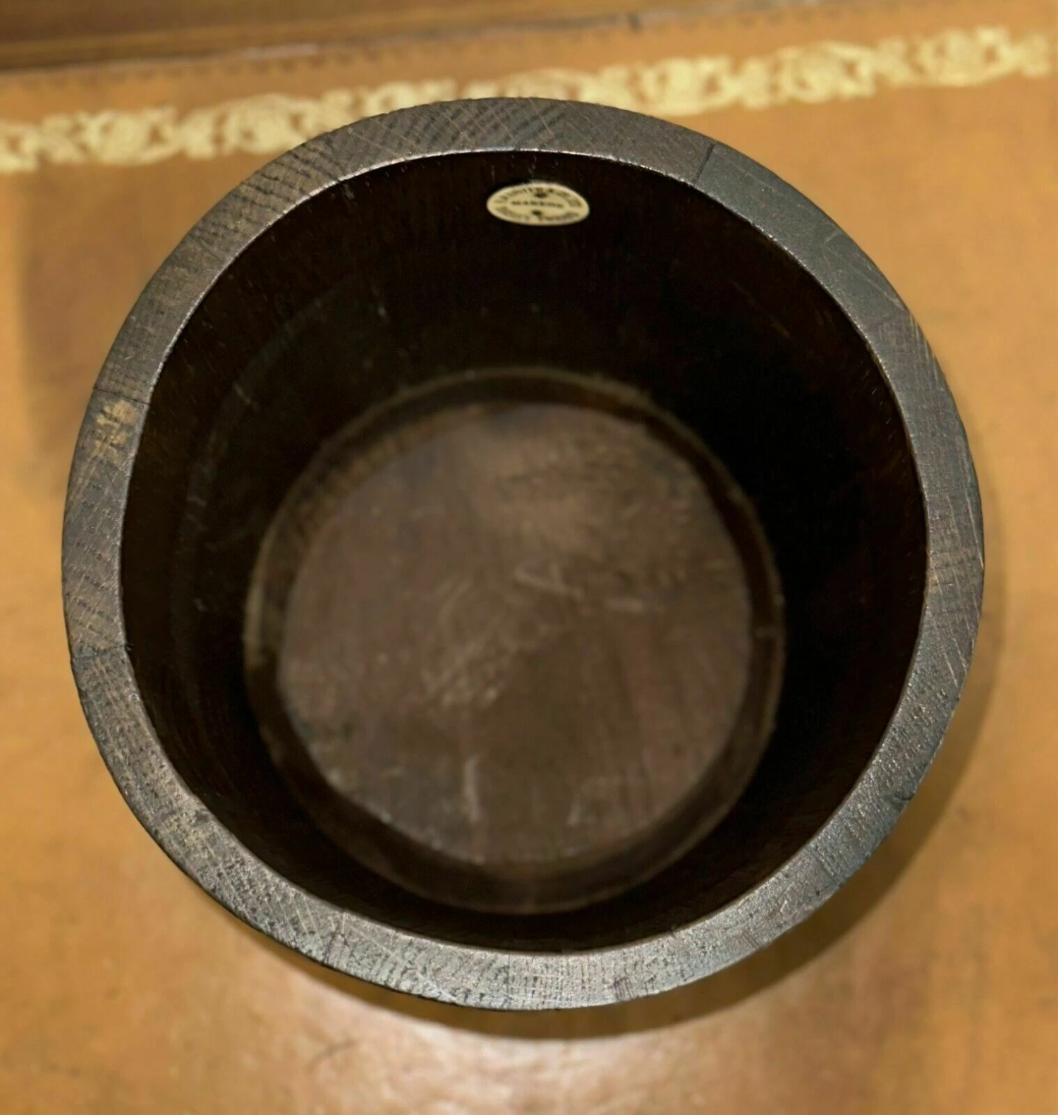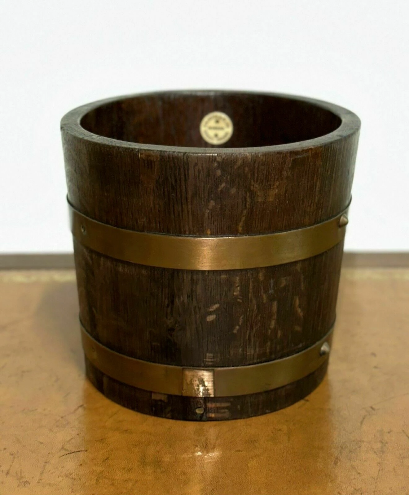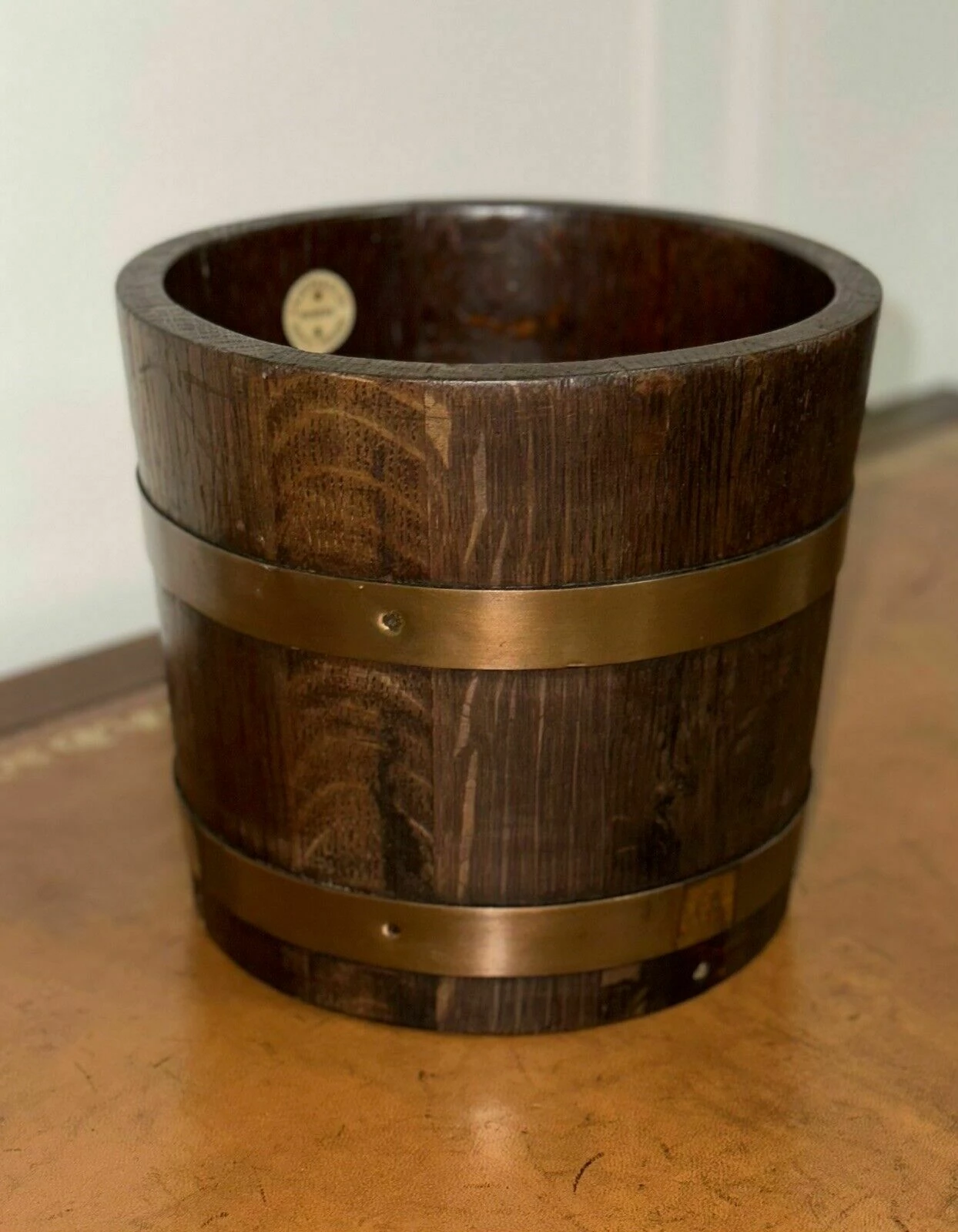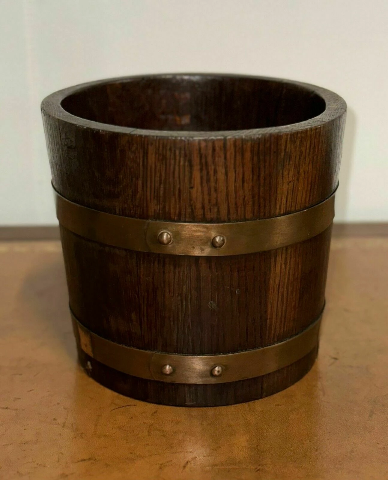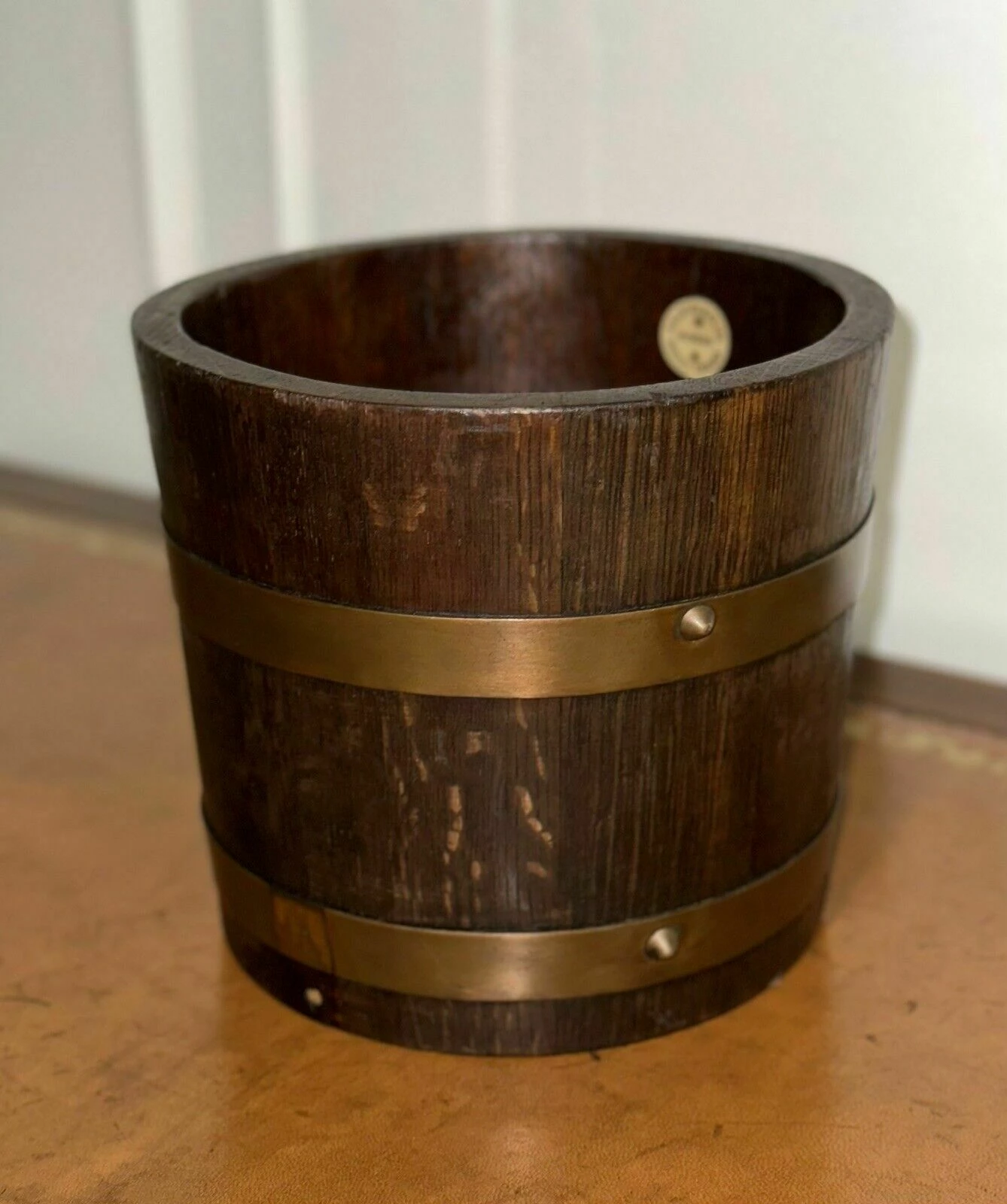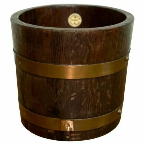 What sets this bucket apart from others is the brass braces that adorn it. These brass braces serve both functional and decorative purposes, as they reinforce and protect the wood while also adding an elegant touch to its design.