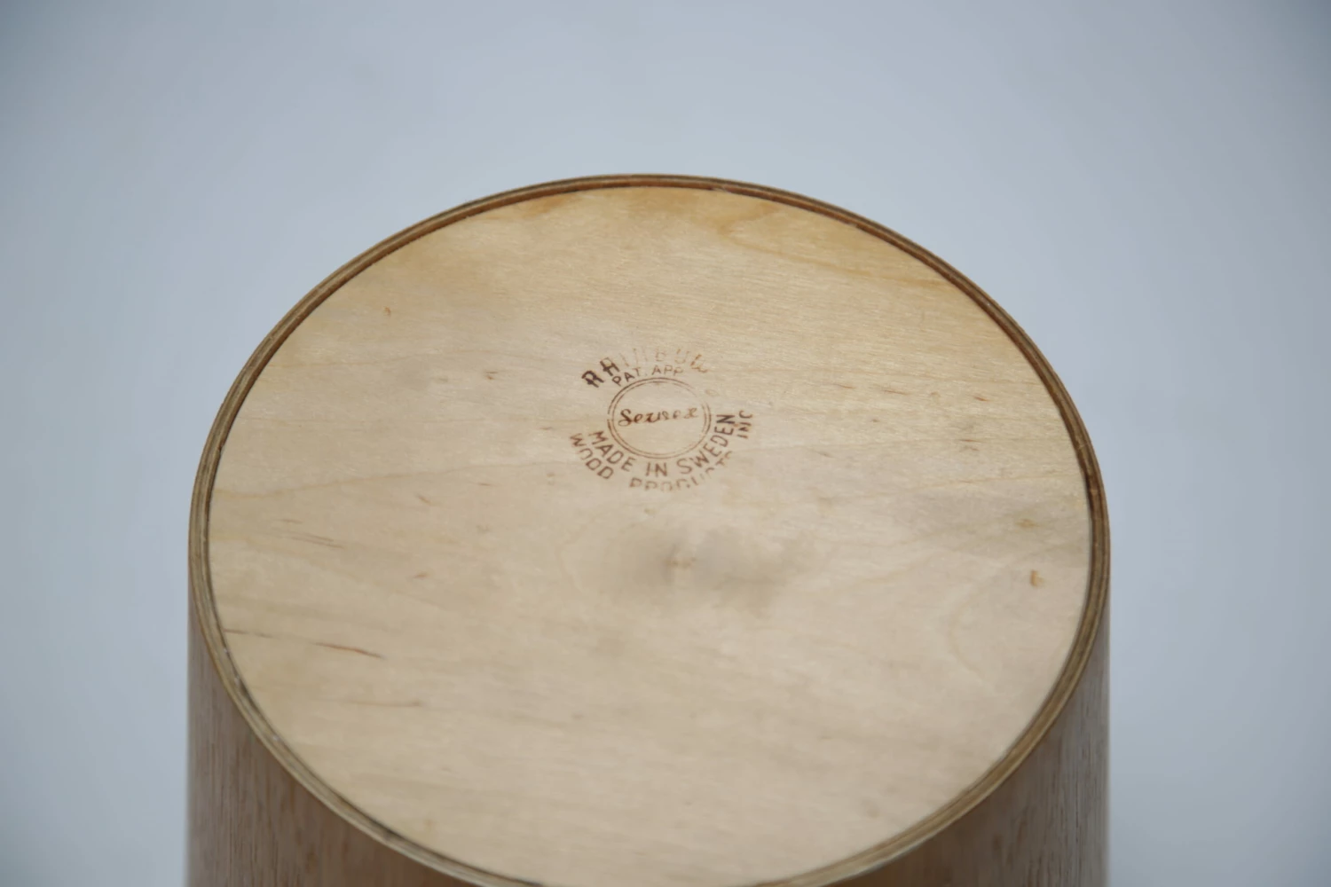 Introducing a true vintage treasure – the 1960s “Servex” teak waste paper bin, designed by the renowned Martin Aberg for Rainbow. This elegant and functional piece is fully stamped on the base, a testament to its authentic vintage origins.