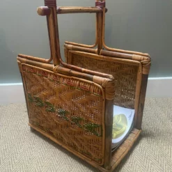 Lovely feature of woven rattan on all four corners plus woven red rattan on the top handle.
