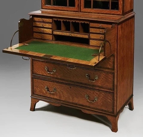 Excellent for such an early piece. Minor restorations, waxing. Writing surface has been replaced, nicely done.