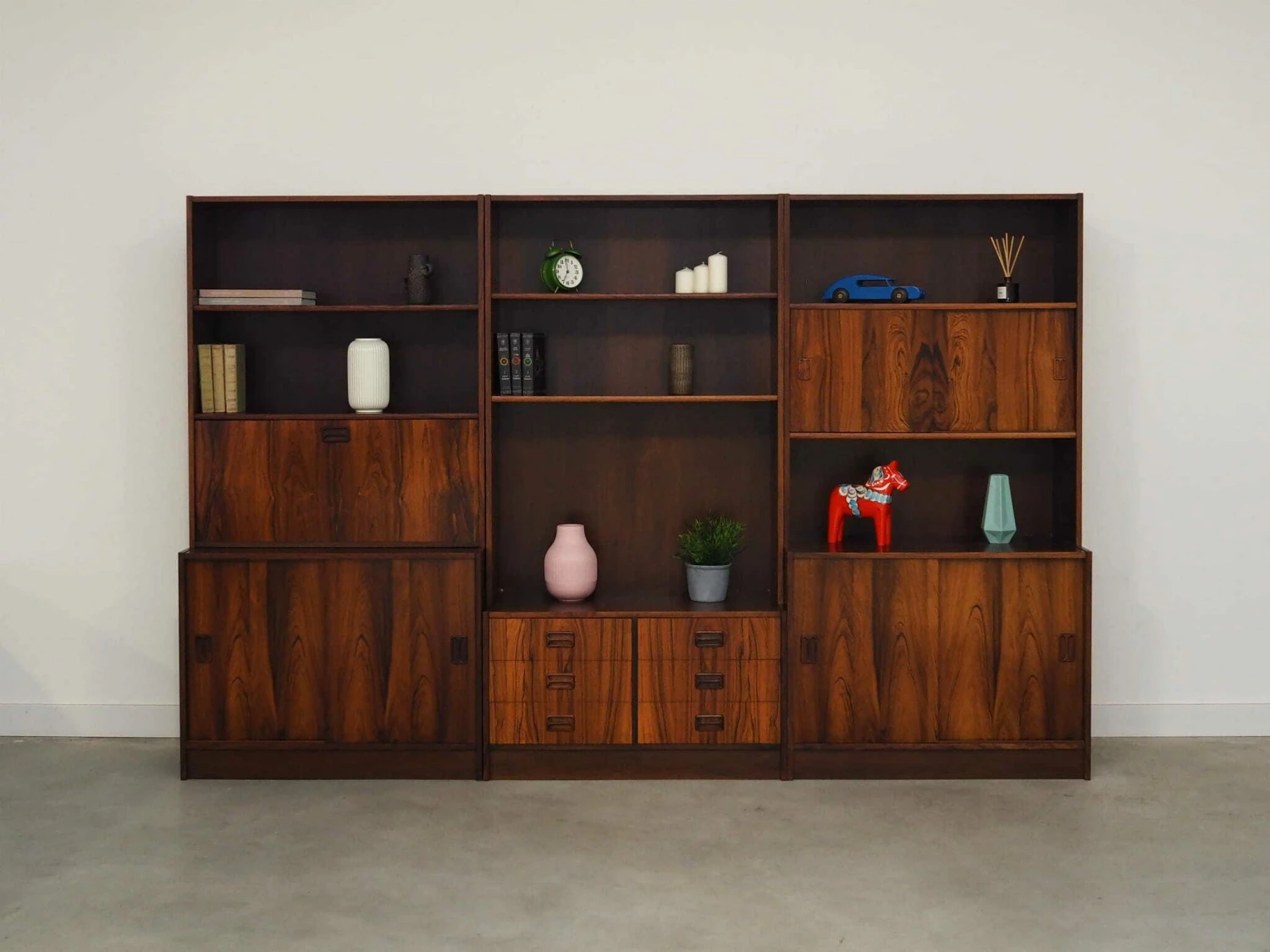 The set of bookcases was made in the 1970s, produced by the well-known Danish manufactory Thorsø Møbelfabrik.