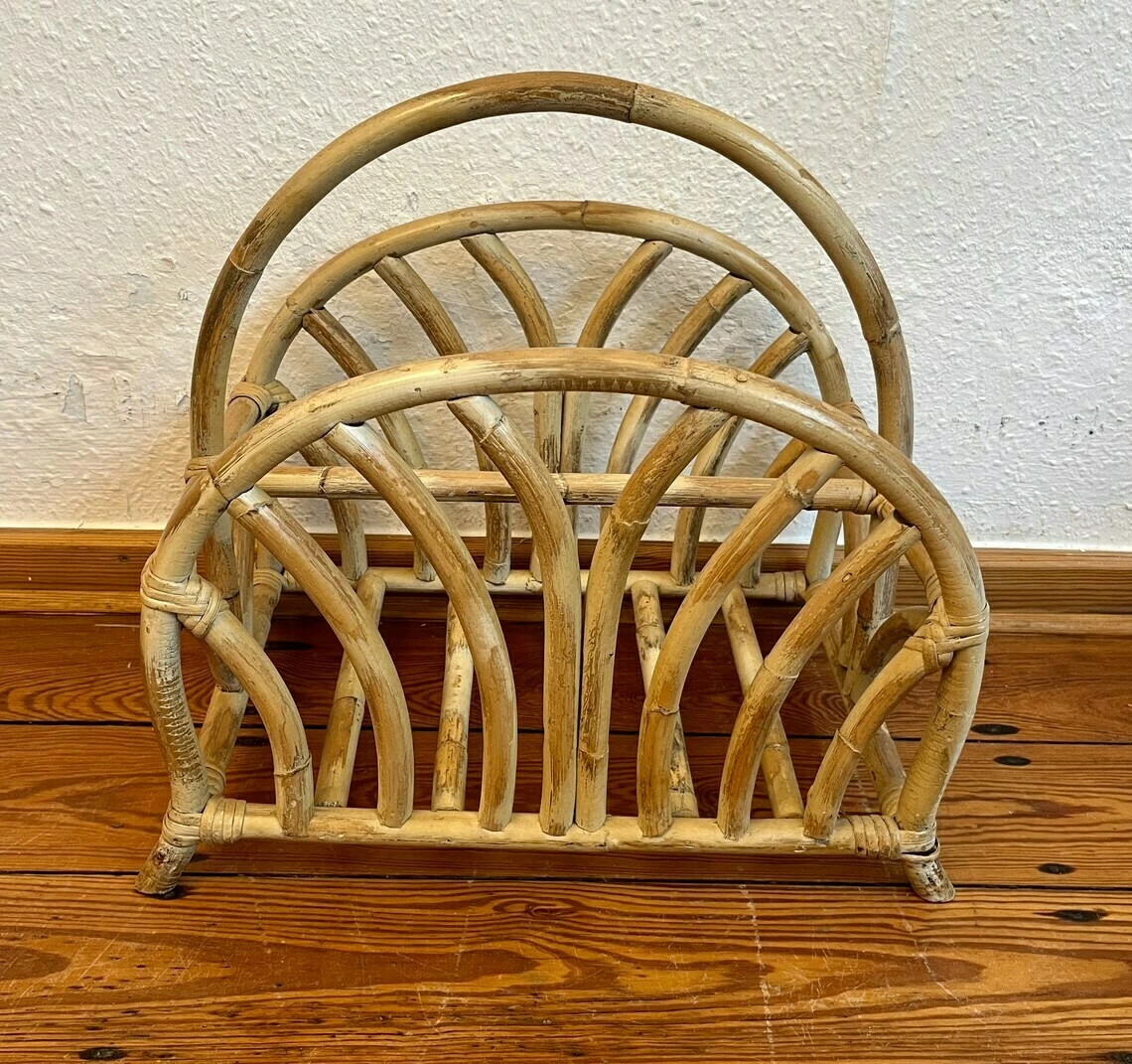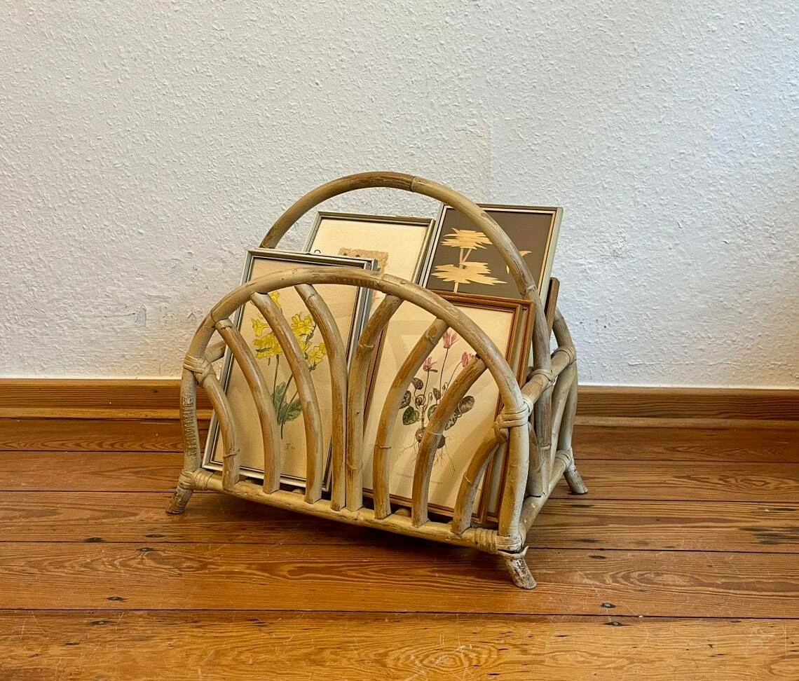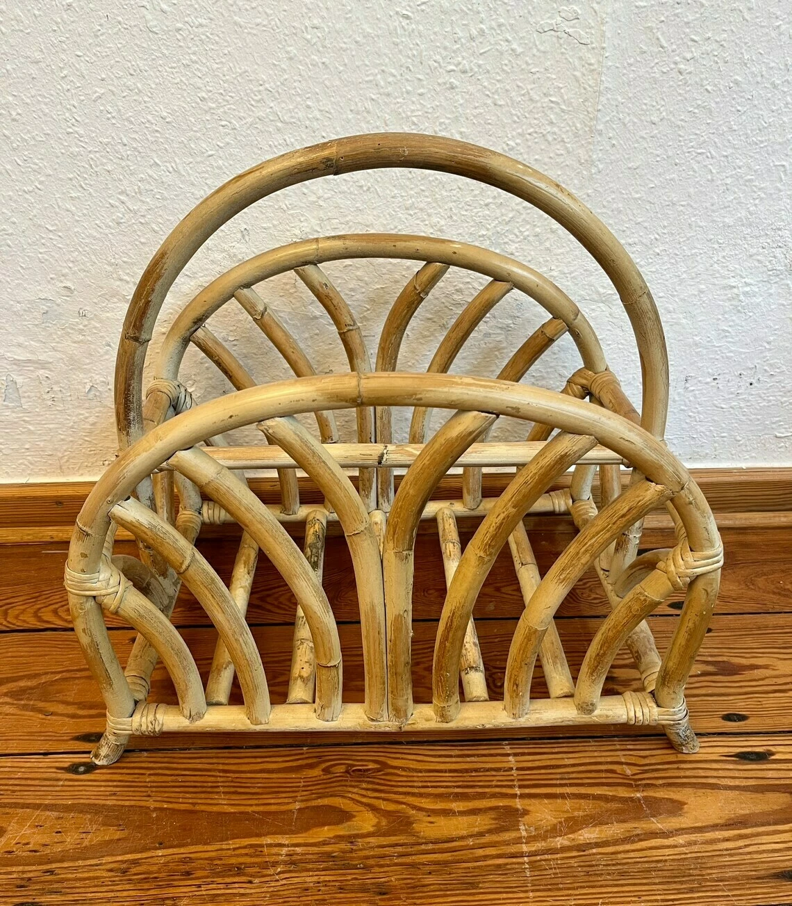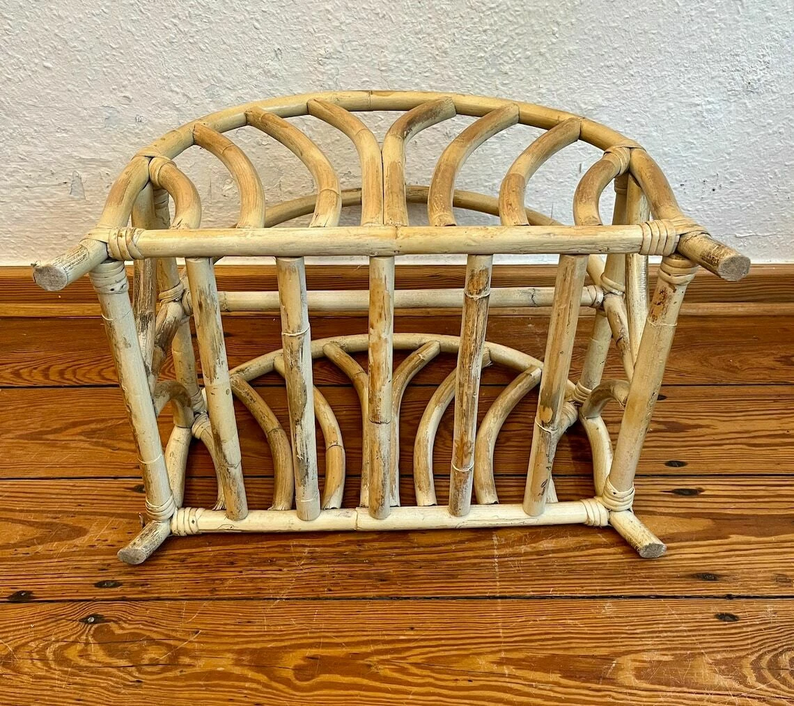 70s magazine rack made of bamboo. The magazine rack is handmade and is sold without decoration.