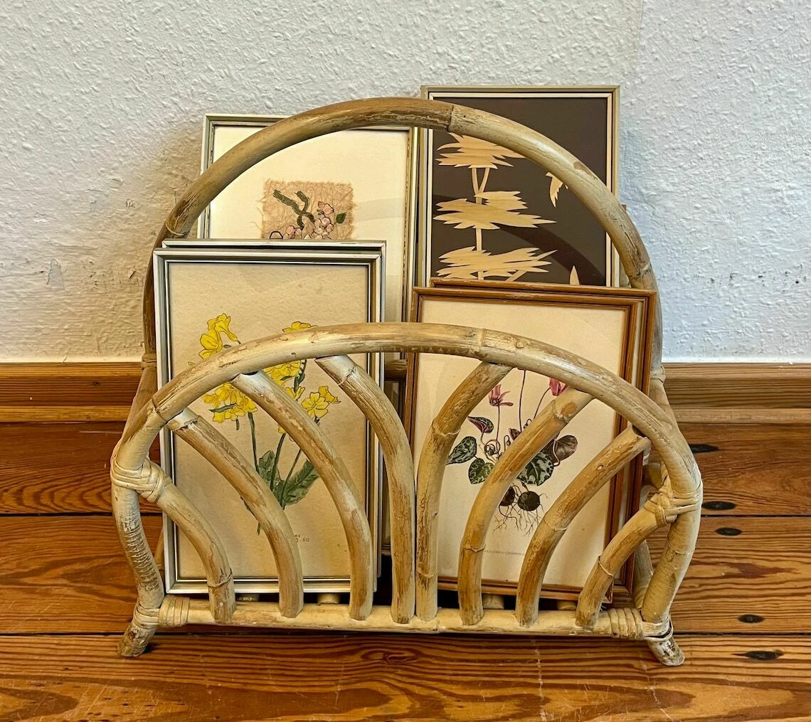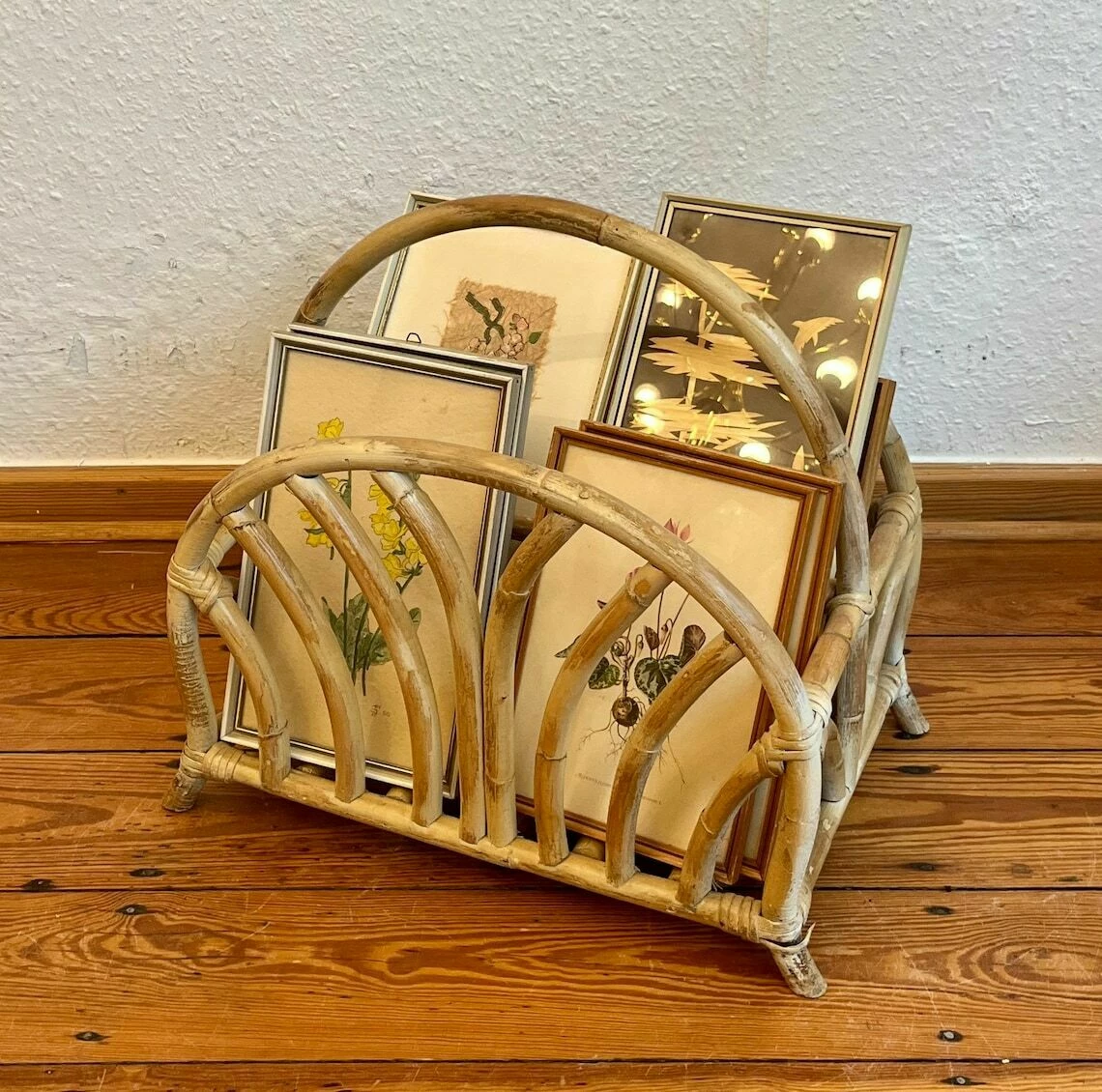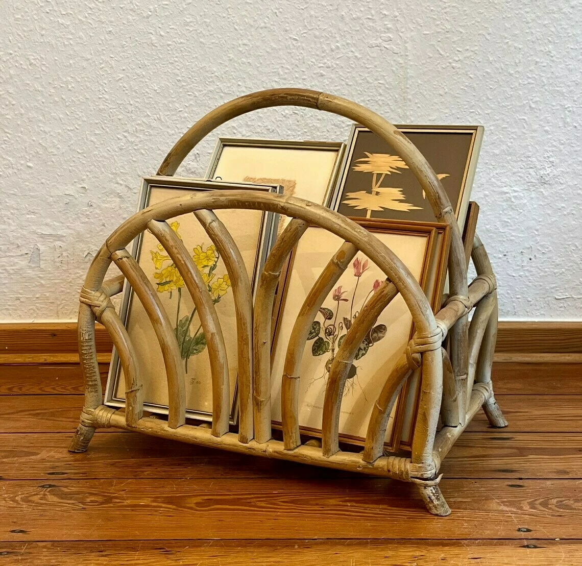 70s magazine rack made of bamboo. The magazine rack is handmade and is sold without decoration.