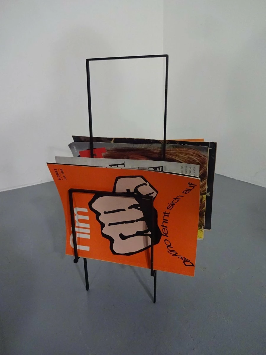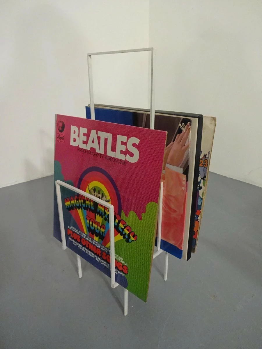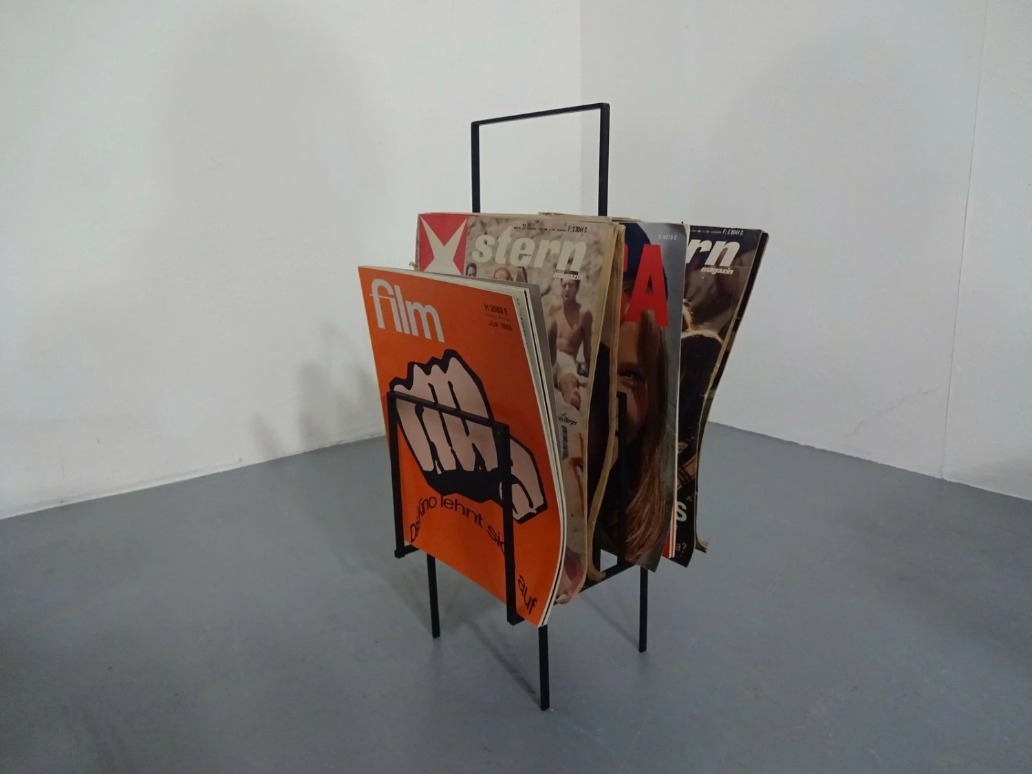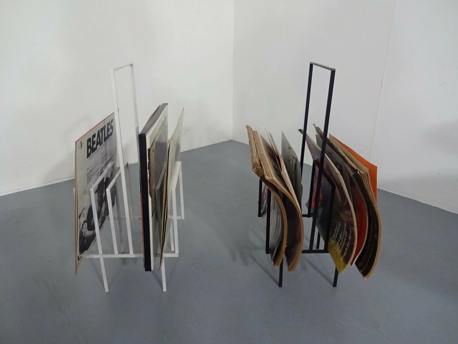 Purist newspaper stands or LP stands in lacquered steel. Available in black and white.