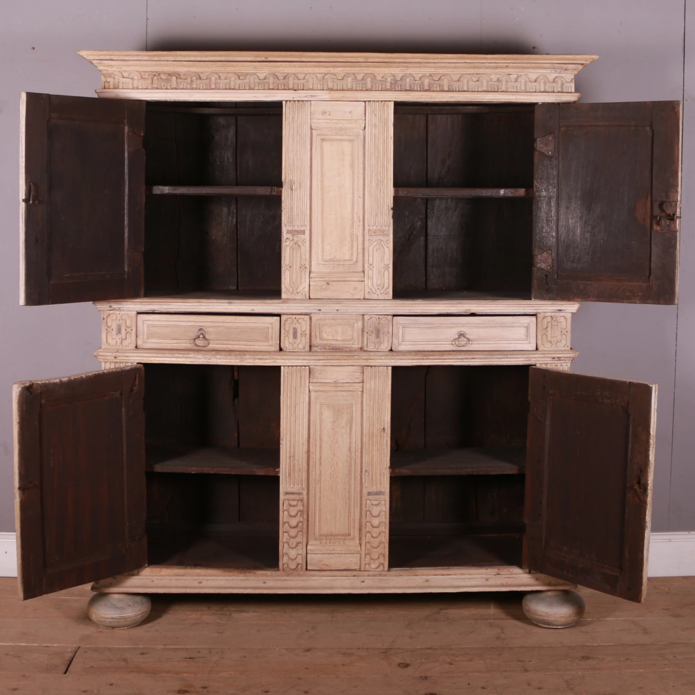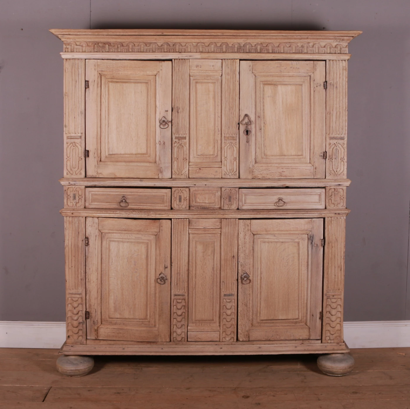 Wonderful late 17th C bleached oak Dutch linen cupboard. 1690.