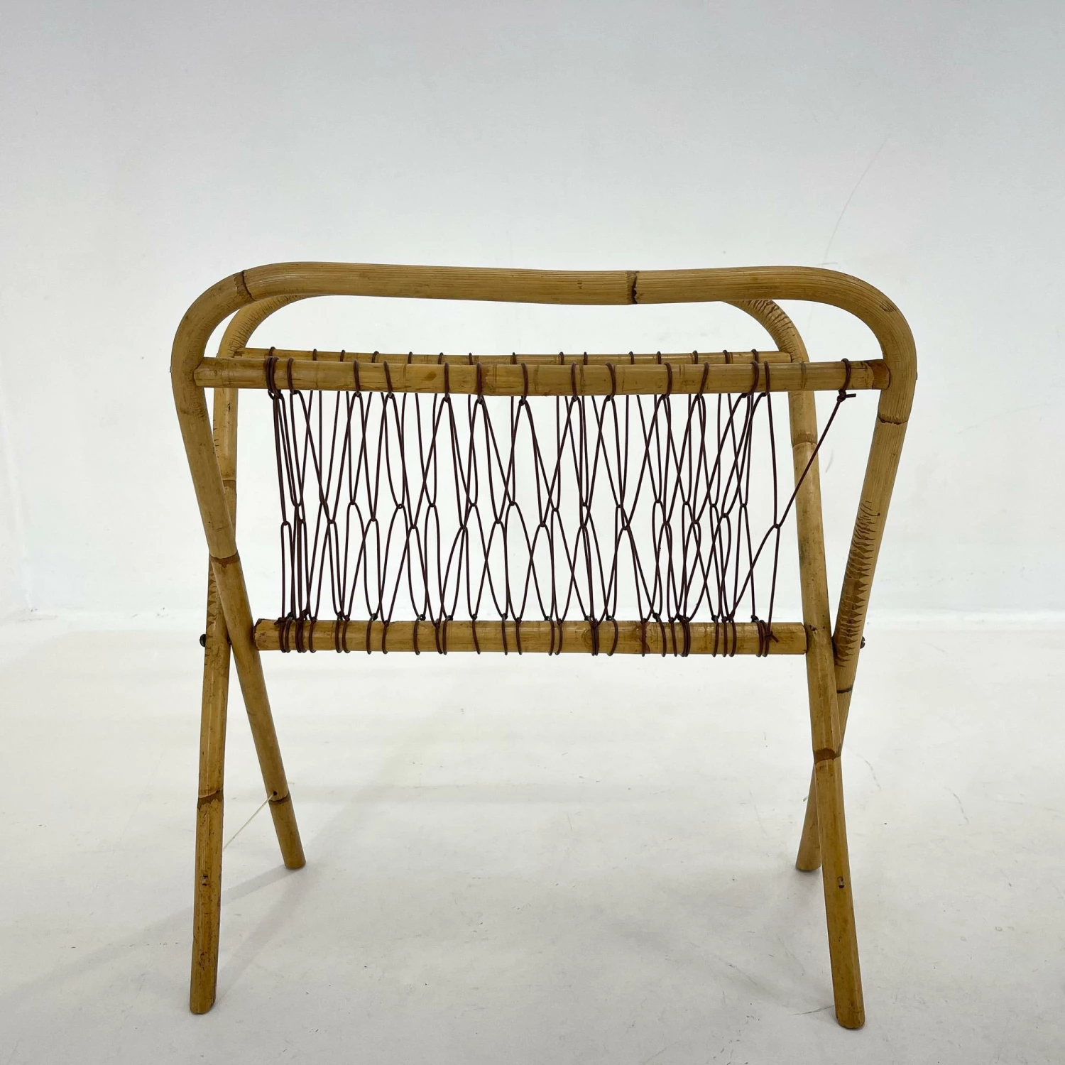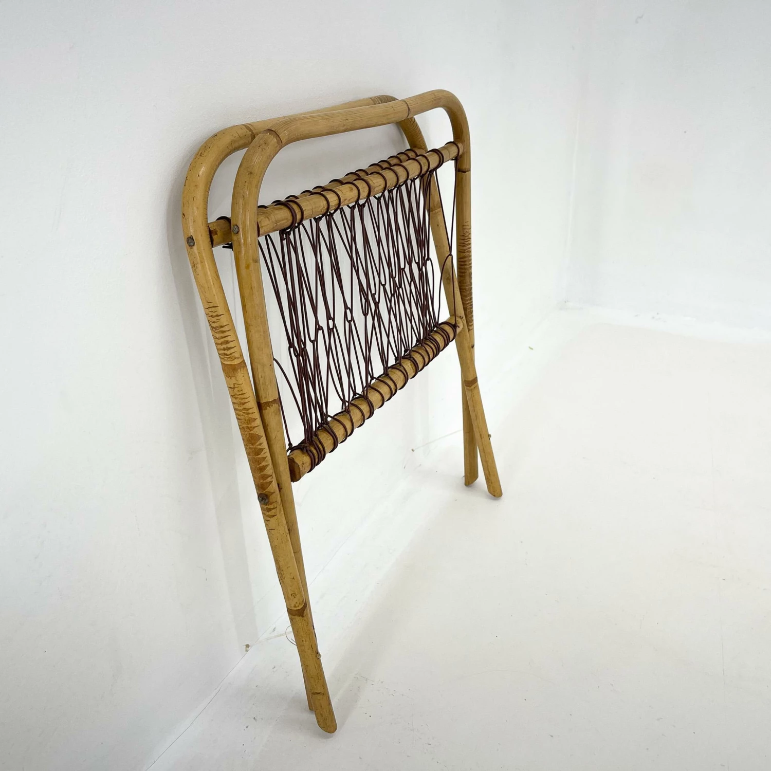 Antique folding bamboo magazine holder with plastic cord from the 1930’s.